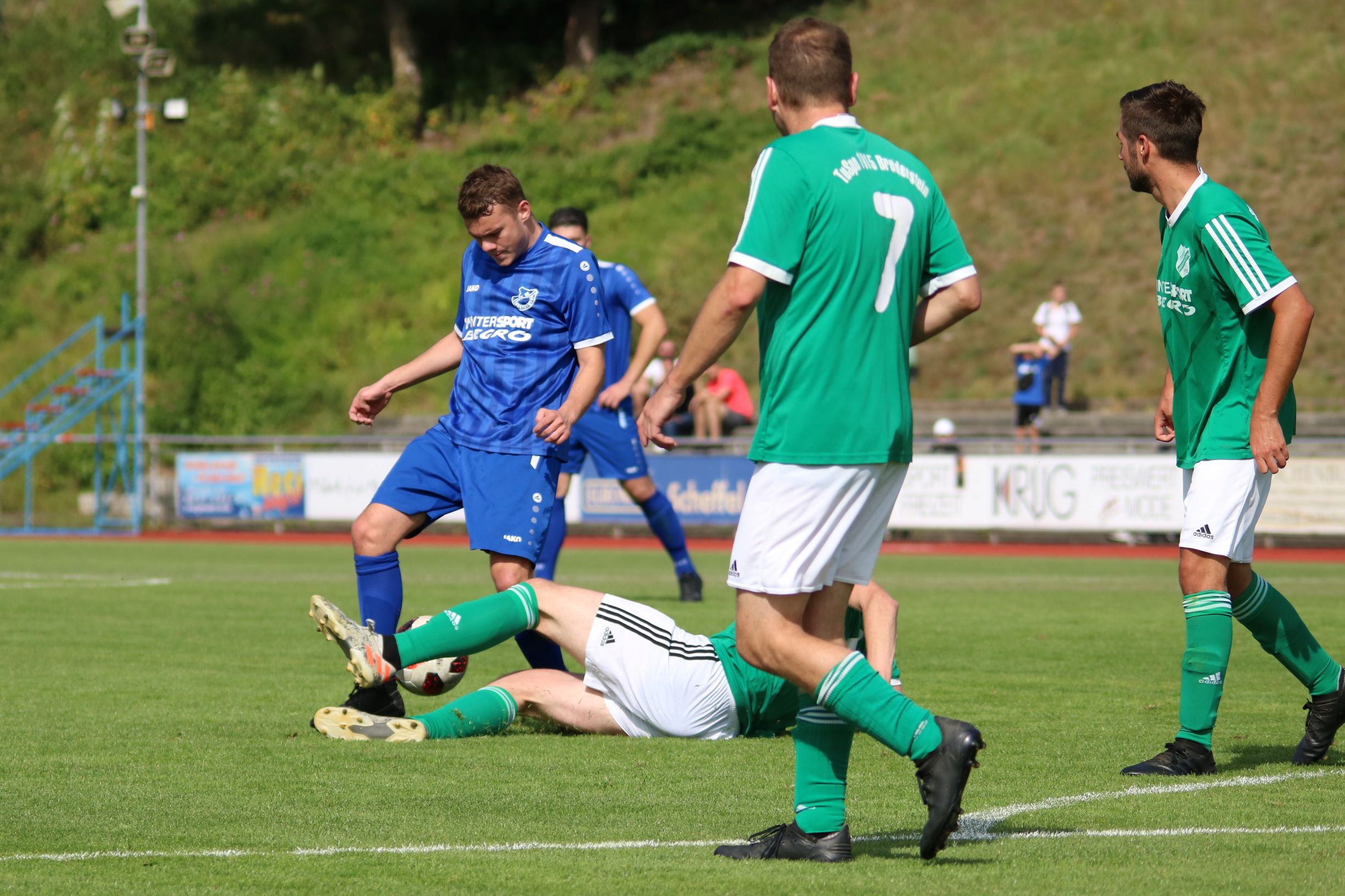 Das unsere 2. Mannschaft am Ende nur mit 1 Tor Vorsprung vom Feld ging, sollte den vielen vergebenen Chancen und einer leichtsinnigen Phase 15 Minuten vor Ende der Partie geschuldet sein. Über weite Strecken der Partie spielte unser Team den technisch besseren Fußball und verdiente sich so auch die Führung in Halbzeit 1. Marcel Eckhardt vollstreckte dabei einen perfekten Spielzug über die linke Angriffsseite gegen eine zu offene TuSpo-Abwehr im Konterspiel zur Führung für sein Team. Breidenstein versuchte offensiv zu agieren, musste aber immer wieder in den hinteren Reihen gefährliche Situationen der Gastgeber zulassen. So agierten FV-Kapitän Moritz Schmalz und Sturmkollege Nico Müller mit ihrer Schnelligkeit immer wieder in einer Art und Weise, die Breidenstein nicht in den Griff bekam. Auf der Gegenseite konnte Marco Sabau den TuSpo-Regisseur Felix Henkel weitestgehend aus dem Spiel nehmen, sodass Breidenstein offensiv nicht wirklich große Gefahr ausstrahlen konnte. Als mit Beginn der 2. Halbzeit Breidenbach durch Moritz Schmalz zum 2:0 erhöhte und Marcel Eckhardt in der 64. Minute mit dem 3:0 nachlegte, schien die Partie bereits gelaufen zu sein. Breidenstein zeigte jedoch eine gute Moral und spielte auch in der Folgezeit mutig nach vorne. Dabei sollten sich die Grün-Weißen dann in der 74. Minute mit dem Treffer zum 3:1 auch zu Recht belohnen. Und plötzlich sollte die Partie nochmal unerwartet spannend werden, als nur 1 Minute später TuSpo-Torjäger Daniel Gruber plötzlich frei vorm FV-Tor zur Stelle war und zum 3:2 verkürzte. Jetzt war Breidenstein im Aufwind, Breidenbach behielt jedoch die Ruhe und spielte seine fußballerischen Fähigkeiten besser aus. In der Folge dauerte bis zur 80. Minute, bis Luis Müller mit seinem Treffer zum 4:2 die insgesamt verdiente 2-Toreführung für den FV 09 wieder herstellte. Den Schlusspunkt mit dem 4:3-Endstand erzielte in der 92. Minute dann noch Breidensteins Kapitän Moritz Henkel per Foulelfmeter. Danach war direkt Schluss und Breidenbach konnte mit dem Sieg seinen Platz in der Spitzengruppe der A-Liga Biedenkopf für den Moment sichern.