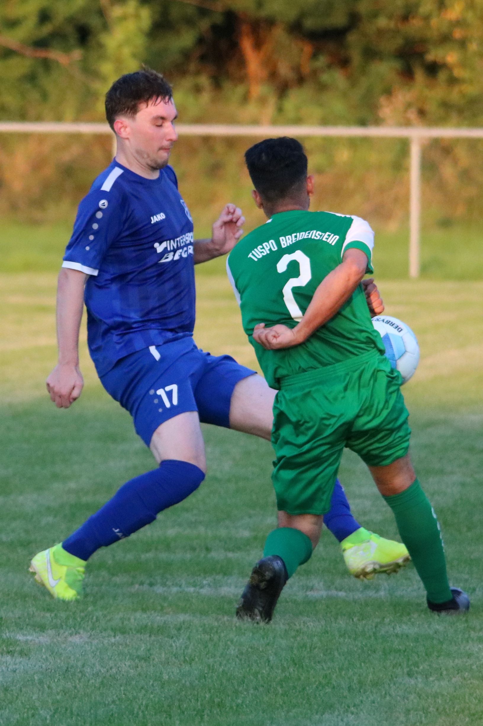 Mit mehreren guten bis sehr guten Torgelegenheiten hätte unsere Elf schon in Halbzeit 1 in Führung gehen können. Jedoch scheiterten sie immer wieder an der vielbeinigen Tuspo-Abwehr oder am Heimkeeper Samuel Weigel. Auf der Gegenseite setzte Tuspo-Stürmer Daniel Gruber immer wieder Nadelstiche und kam im Konterspiel seiner Mannschaft mehrfach zu guten Abschlüssen. Philip Grebe im FV-Tor reagierte jeweils sehr gut und hielt so seinen Kasten sauber. Ändern sollte sich das in der 55. Minute, als Gruber mit einem Rechtsschuss seine Elf in Führung brachte. Breidenbach reagierte sofort und forcierte seine Angriffsbemühungen. Marcel Beinborn nutzte in der 58. Minute seine Chance im Nachschuss an einen von Tuspo-Torwart Weigel nach vorne abgewehrten Weitschuss und staubte so zum verdienten 1:1 ab. Breidenstein beschränkte sich weitestgehend auf sein Konterspiel und schaffte es auch immer wieder, seine gefährlichen Spitzen Gruber und Klöckner in Szene zu setzen. Breidenbach hingegen agierte oftmals zu umständlich und tat sich auf dem schwer zu bespielenden Rasenplatz sichtlich schwer. Dieser lag den Gastgebern deutlich besser und mit viel Kampf und Einsatz versuchten diese, die Partie über die 90 Minuten zu bringen. Besagte 90. Spielminute sollte dann die Entscheidung bringen. Der Tuspo nutzte dabei einen der vielen unnötigen Abspielfehler im FV-Aufbauspiel und konterte die Gästeelf aus. Aus stark abseitsverdächtiger Position war es dann Felix Henkel, der den entscheidenden Schlusspunkt in einer Partie setzte, die unserem Team bei dem betriebenen Aufwand mindestens 1 Punkt hätte bringen müssen. Ist leider nichts draus geworden und so wird unsere Elf am kommenden Freitag im Heimspiel gegen den SSV Endbach/Günterod neu angreifen und versuchen, den 2. Saisonsieg einzufahren.