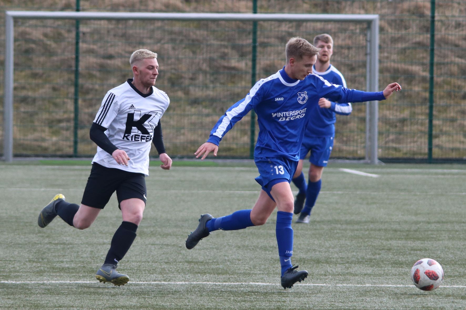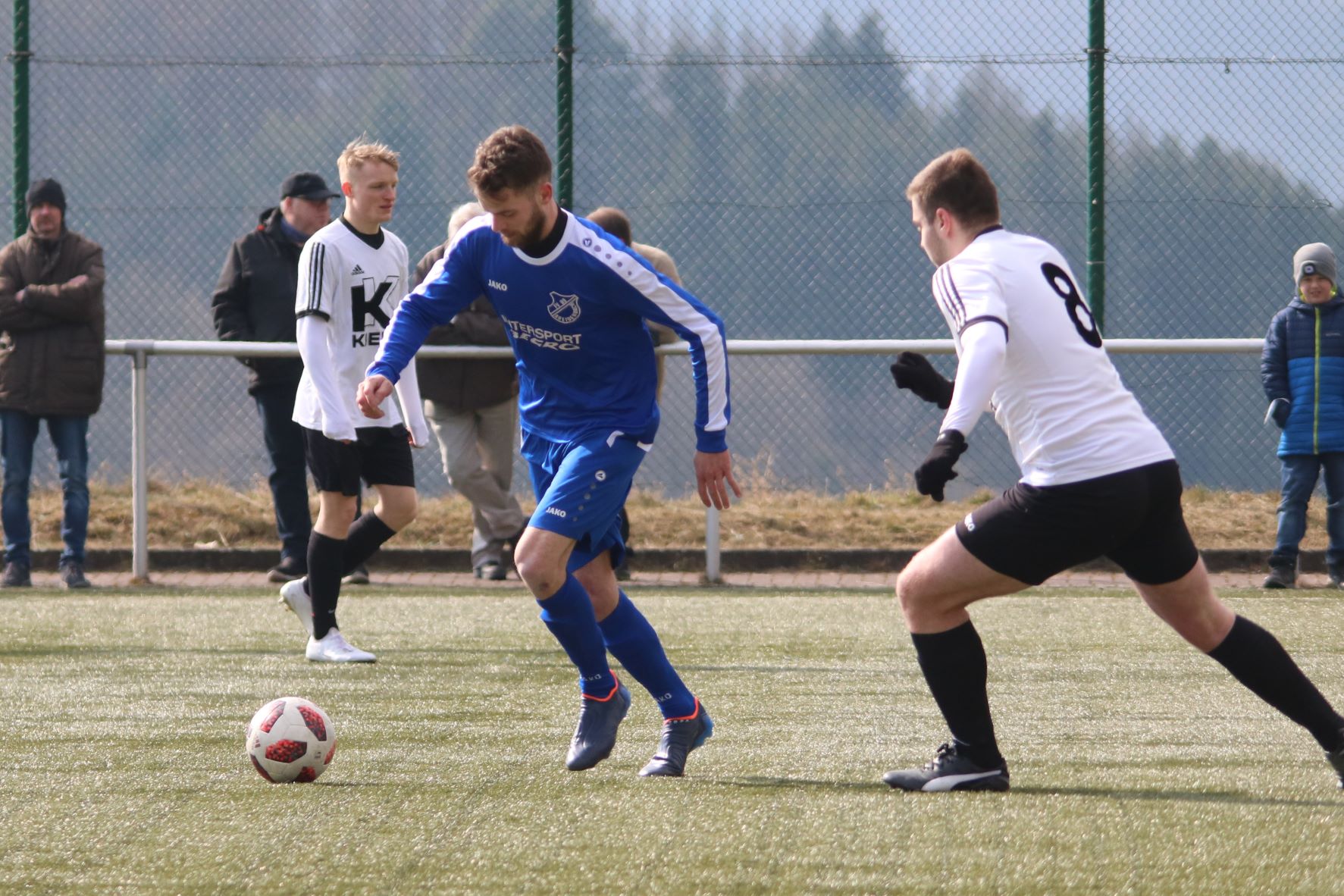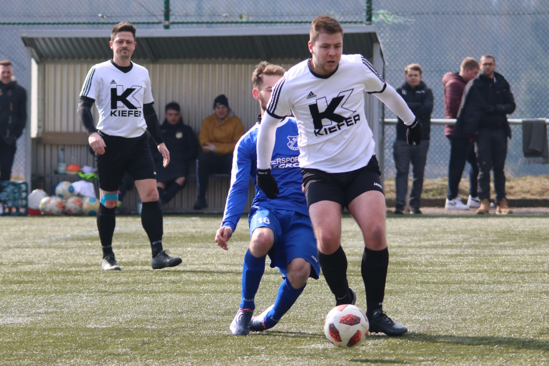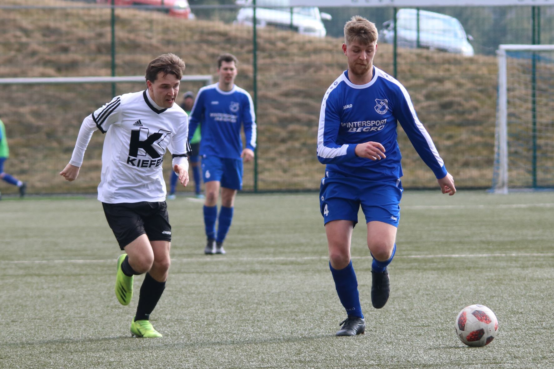(FS / 06.03.2022) Den roten Faden der Hinrunde konnte die FV-Reserve auch am ersten Spieltag im Jahr 2022 nicht abschneiden. Gegen die Gäste der SG Dautphetal reichte es nach einer ausgeglichenen 1. Halbzeit mit dem Führungstreffer von Moritz Schmalz per Abstauber in der 32. Minute nicht, um am Ende des Tages zählbares im Gunterstal zu behalten. Dautphetal zeigte sich vom Breidenbacher Führungstreffer unbeeindruckt und schaffte, wenn auch etwas glücklich aus dem Gewühl heraus aus kurzer Distanz in der 39. Minute durch Kovacevic den 1:1-Ausgleich. Nach dem Seitenwechsel neutralisierten sich beide Teams zunächst. Als Markus Tiemann dann in der 66. Minute gegen eine zu offene FV-Hintermannschaft zum 1:2 einschoss, war die Partie praktisch auf den Kopf gestellt. Breidenbach versuchte danach nochmal alles, fand aber keine spielerischen Lösungen, um zu wirklich guten Torchancen zu kommen. Die Spielgemeinschaft nutzte ihre Kontergelegenheiten perfekt und markierte in der 84. Minute durch Florian Schmidt zum 1:3 und in der 90. Spielminute durch Markus Tiemann mit seinem 2. Treffer zum 1:4 seine Möglichkeiten perfekt. Im Fazit bleibt für den FV 09 die Erkenntnis, dass außer viel Aufwand heute nichts herausgekommen ist. Dautphetal verdiente sich am Ende den Sieg, der vielleicht um 1 Tor zu hoch ausgefallen ist.