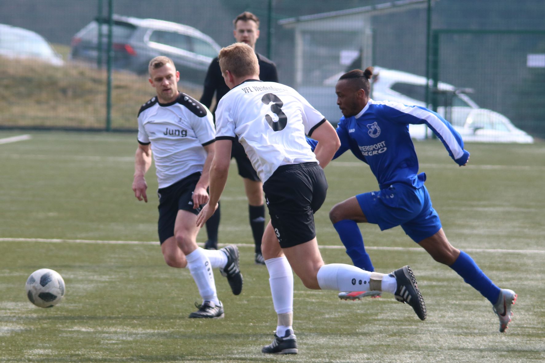 (FS/20.03.2022) Die Verbandsligareserve des FV 09  Breidenbach schafft es nicht, Konstanz in die laufende Saison zu bekommen. Nachdem am vergangenen Mittwoch mit dem 6:2-Auswärtssieg in Wallau die Euphorie noch groß war, waren die Fortsetzung am heutigen Sonntag im Heimspiel gegen den VfL Weidenhausen fest eingeplant. Und so begann die Partie auch verheißungsvoll für die Gastgeber. Gerade mal 4 Minuten waren gespielt, als Luca Koch die erste Chance im Spiel nutzte und bei seinem Tor von dem schwachen Abwehrversuch von Gästetorwart Birkenbusch profitierte. Die ersten 25 Minuten sollten sich als beste Phase im FV-Spiel zeigen und schon früh hätte das Reitz/Pfeiffer-Team mit besten Einschußmöglichkeiten die Treffer 2 + 3 erzielen können. Pech hatte Luis Müller bei seinem Freistoß in der 20. Minute, den Gästetorwart Birkenbusch gerade noch so an den Pfosten und von dort zur Ecke lenken konnte. Danach kam Weidenhausen besser ins Spiel und profitierte von den Gastgeschenken, die der FV verteilte. Praktisch aus dem Nichts markierte Weidenhausens Distel nach einem leichten Ballverlust im FV-Mittelfeld und dem anschließenden Konter in der 30. Minute das 1:1. Als sich beide Teams schon so langsam auf die Pause eingestellt hatten, sollte dann Konter Nr. 2 völlig überraschend die Gästeführung ergeben. Wieder war ein geschenkter Ballverlust im Aufbauspiel und ein schlechtes Abwehrverhalten die Basis für die Gäste, um durch Jan Niklas Becker in der 41. Minute mit 2:1 in Führung zu gehen.