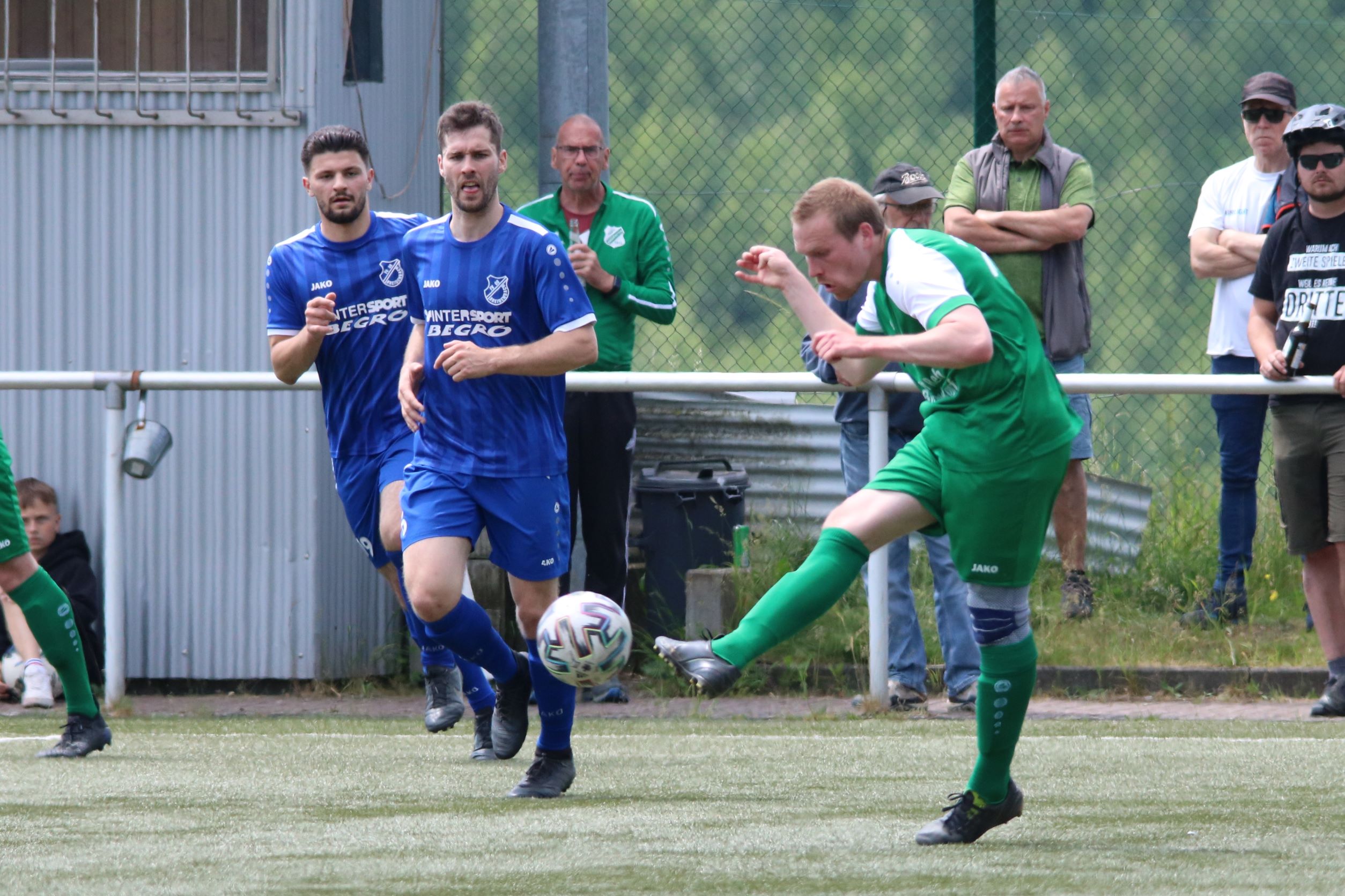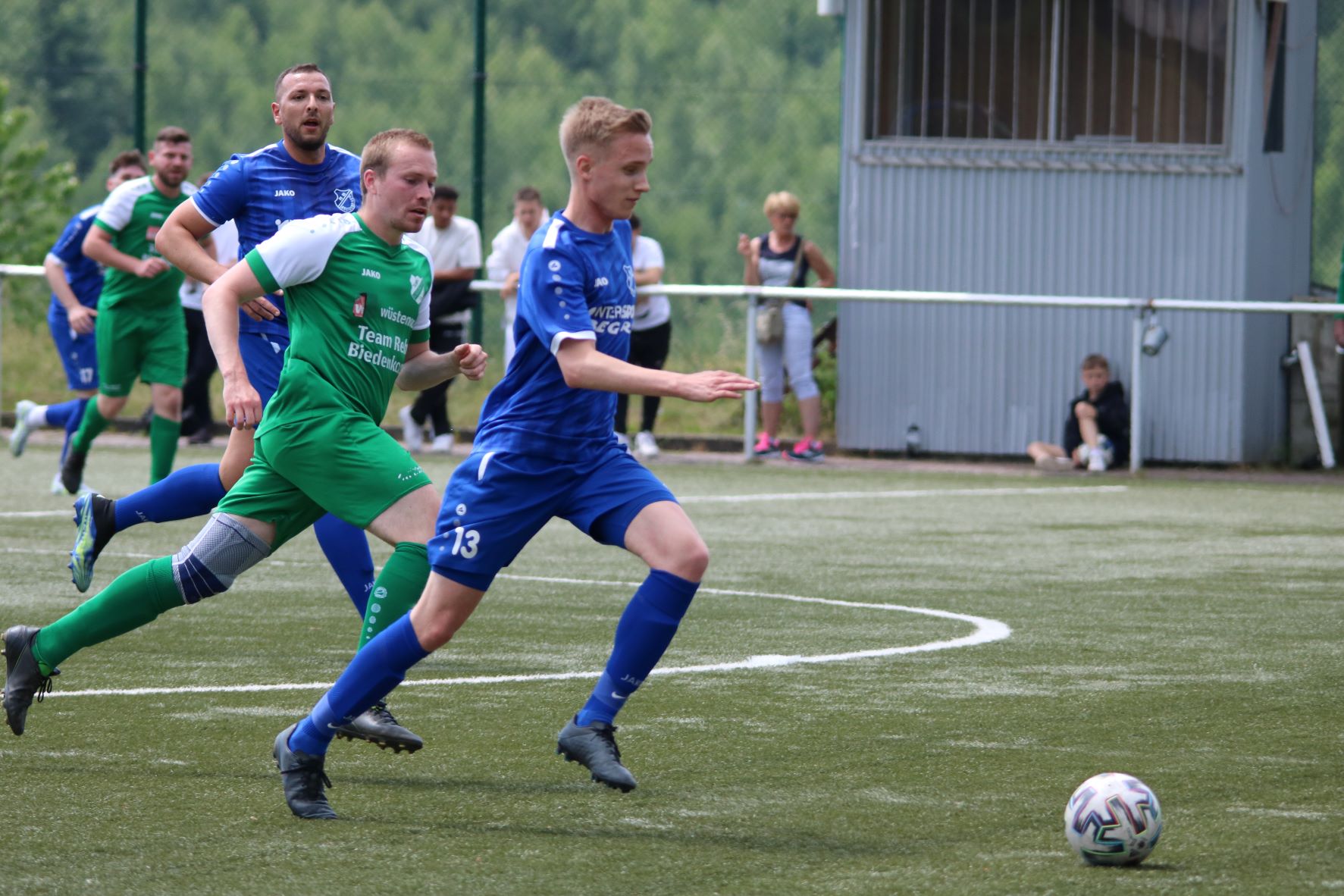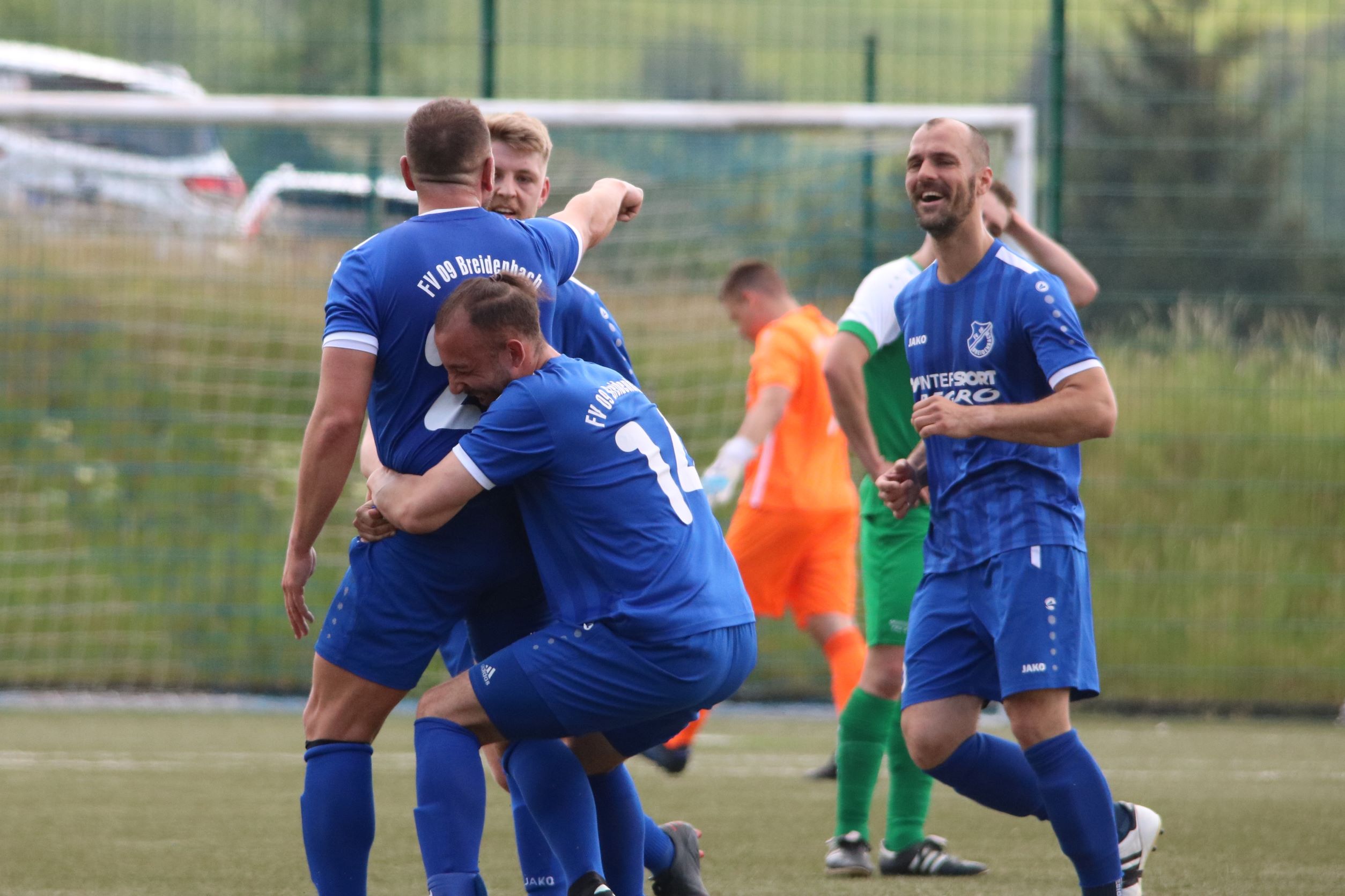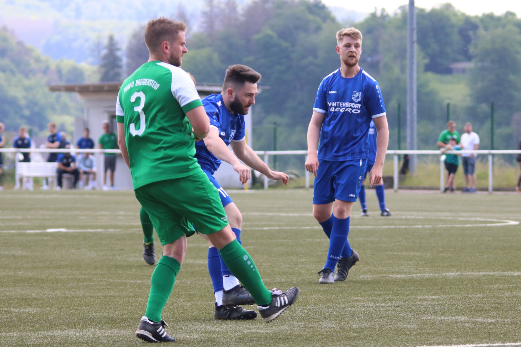(FS/22.05.2022) Die FV-Reserve konnte am frühen Sonntagnachmittag im Heimspiel gegen den Ortsnachbarn TuSpo Breidenstein mit einem 4:2-Sieg eine geglückte Revanche für die knappe 1:2 Hinspielniederlage nehmen. Matchwinner der Begegnung war zweifelsfrei Breidenbachs Offensivakteur Ibrahim Kale, der zunächst noch FV-Geschäftsführer Luis Müller in der 27. Minute den Vortritt lassen musste. Müller erlebte sein Highlight im Spiel, als er aus guten 20 Metern das Spielgerät mit einem fulminanten Schuss in den Torwinkel des Gästegehäuses die FV-Führung herstellte. Dann sollte Kale jedoch seinen ersten Auftritt haben, als er in der 33. Minute das Leder aus 35 Metern unter die Querlatte des Gästetores zimmerte und Gästekeeper Markus Schiller keine Abwehrchance ließ. Breidenbach spielte fortan mit mehr Selbstvertrauen wie die Gäste und kontrollierte die Begegnung.
