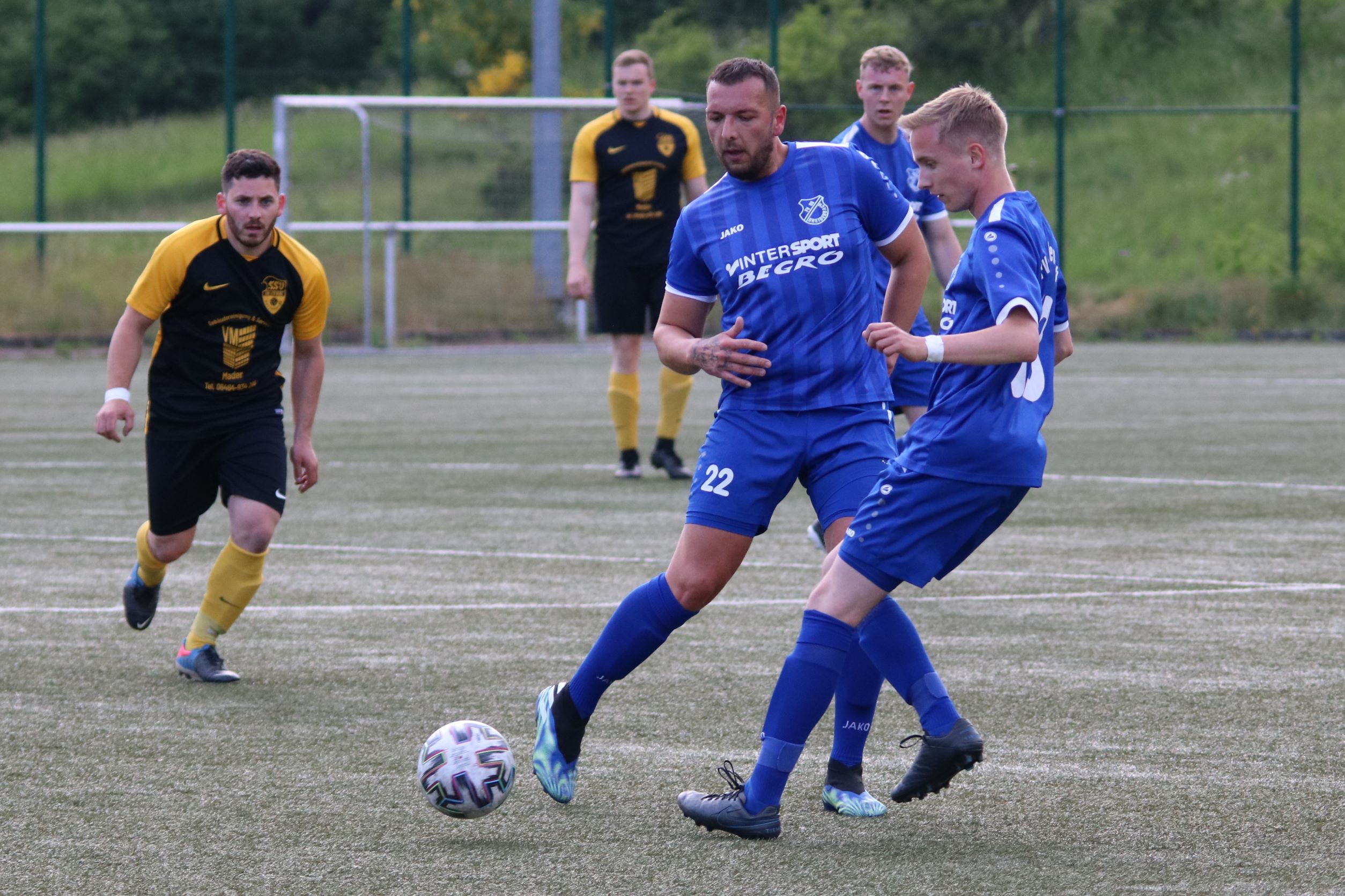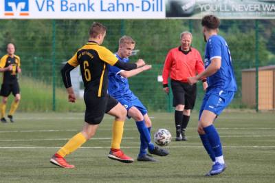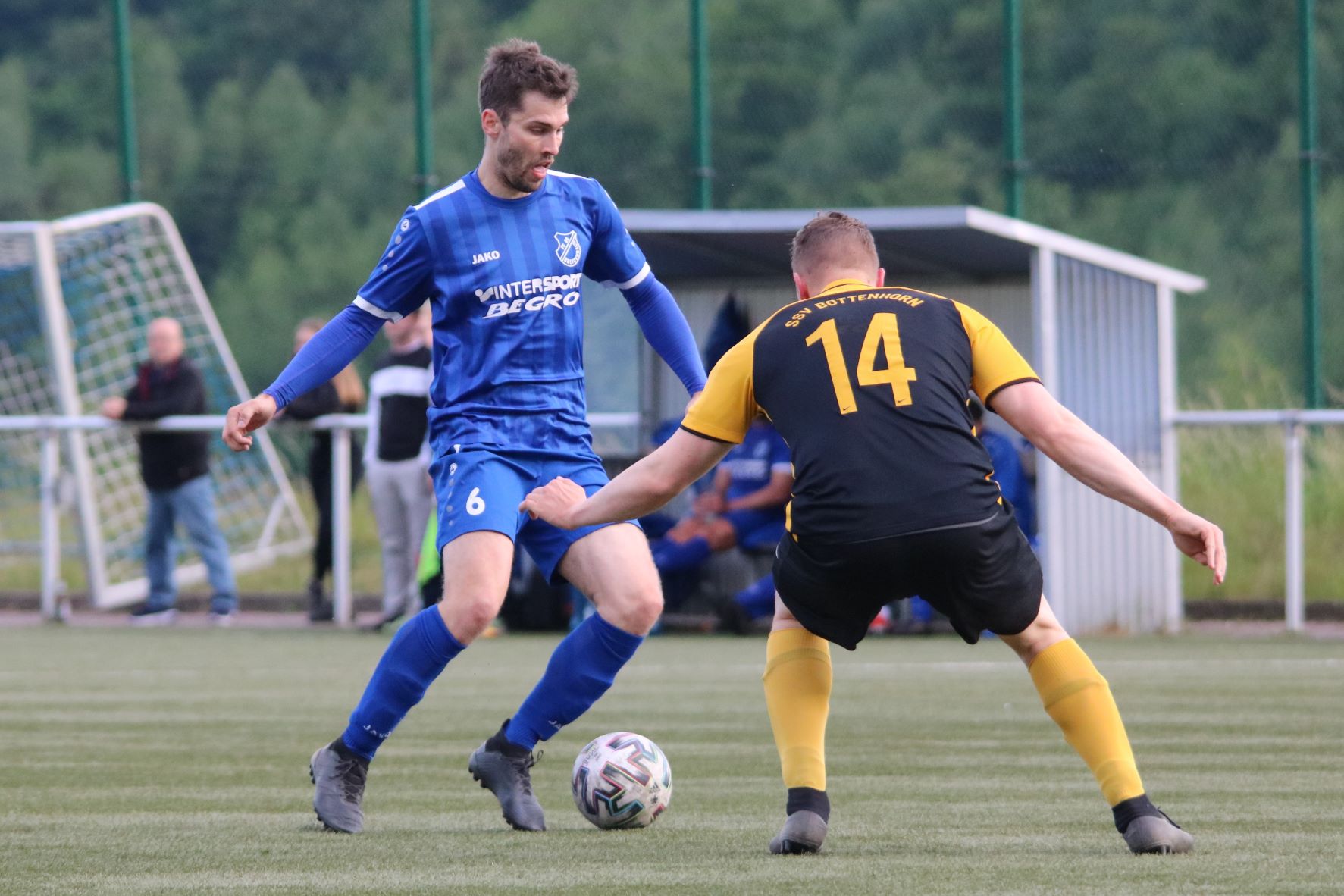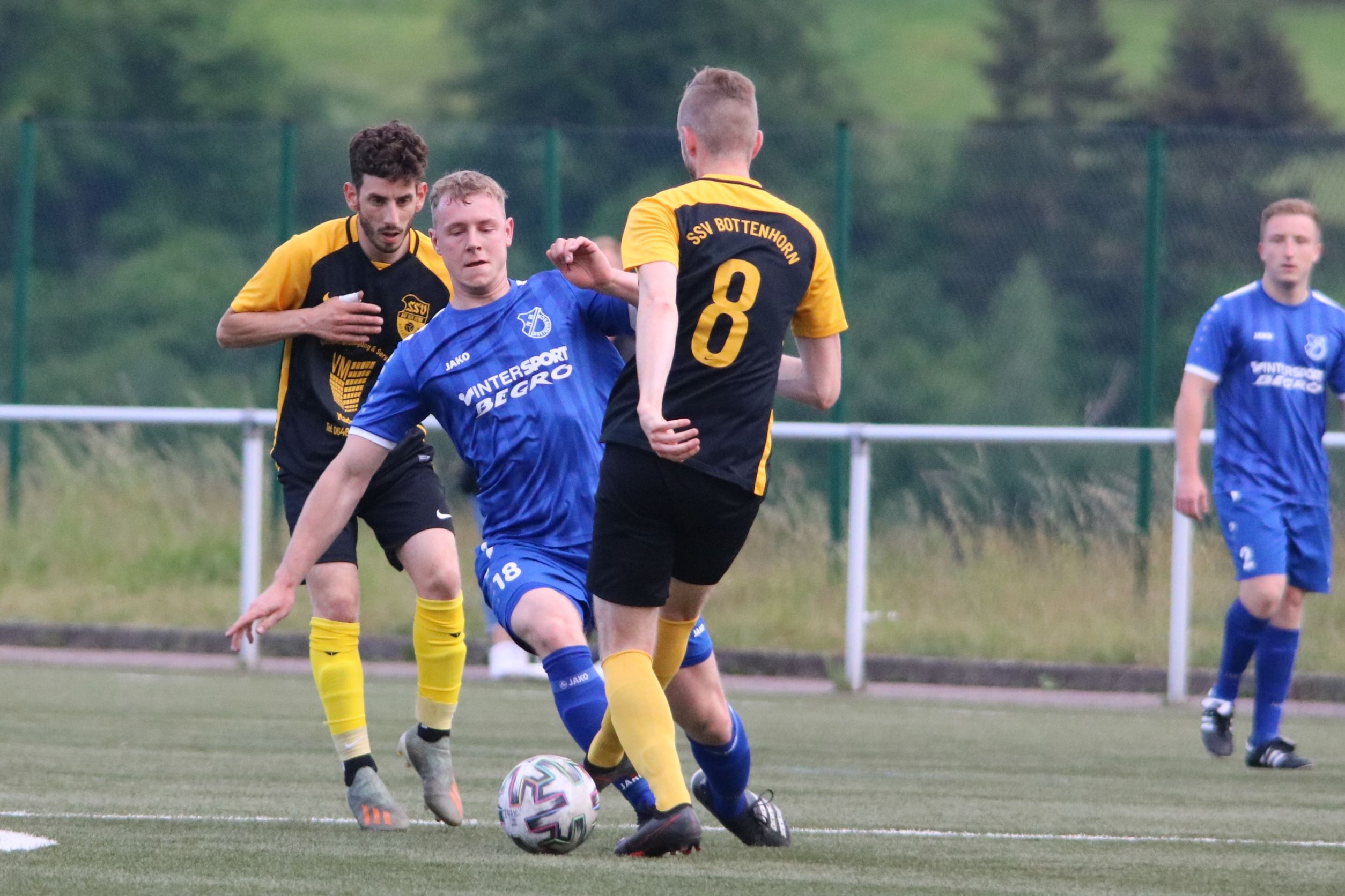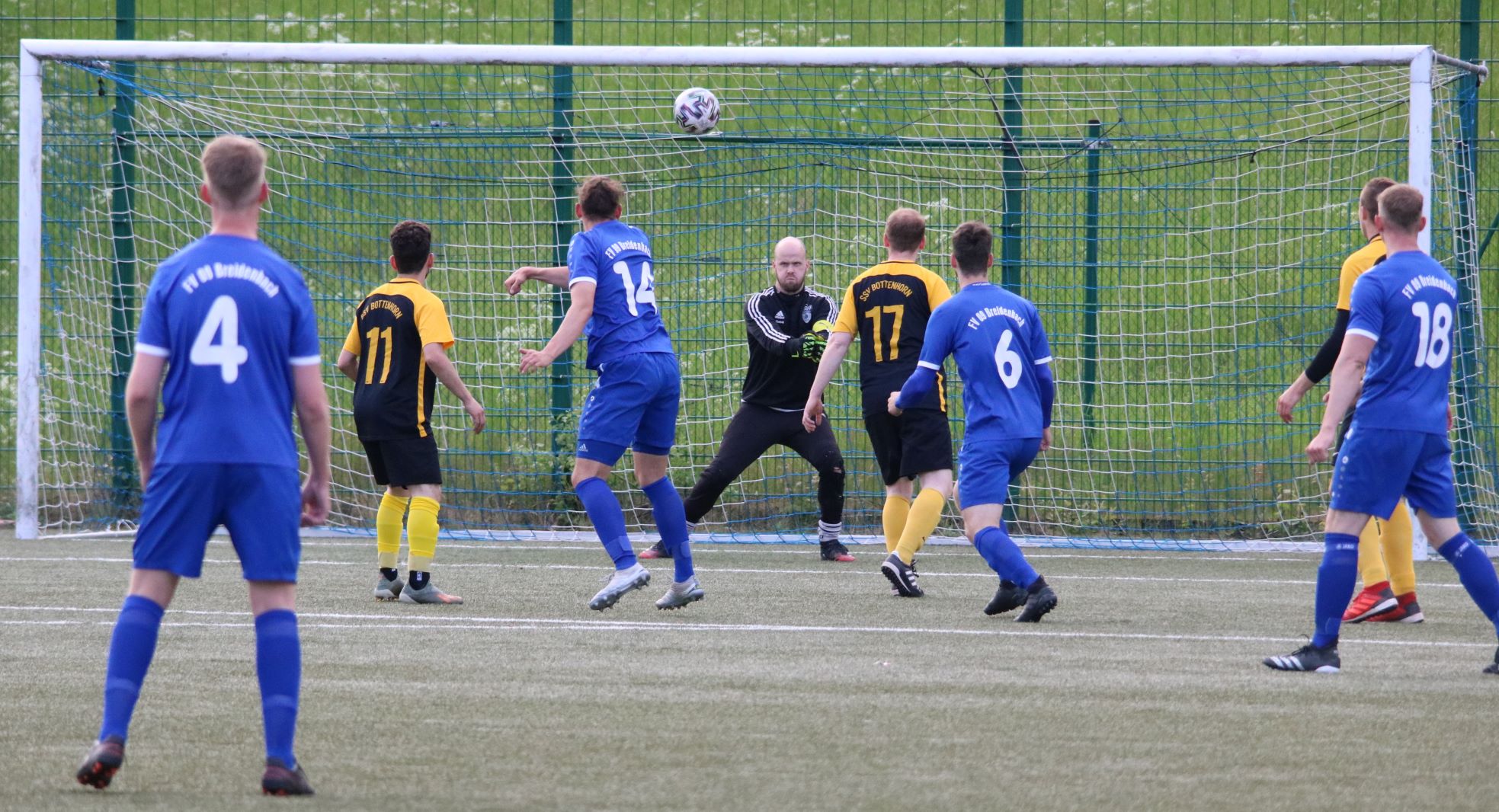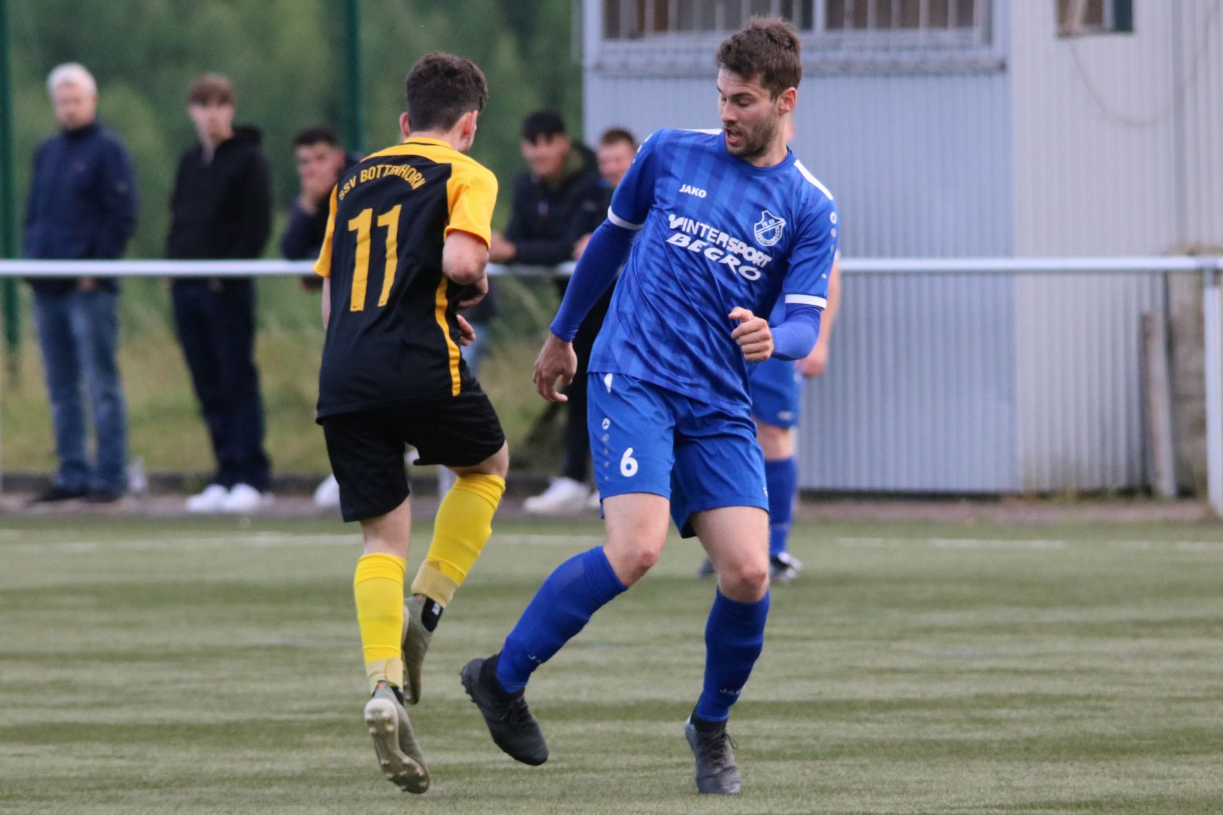 (FS/24.05.2022) Die 2. Mannschaft des FV 09 konnte am Dienstagabend den Schwung des Sonntagsieges gegen TuSpo Breidenstein nicht komplett mitnehmen in die Partie gegen den alten Rivalen SSV Bottenhorn. Am Ende stand es leistungsgerecht 1:1 Unentschieden. Beide Mannschaften agierten praktisch über 90 Minuten auf Augenhöhe und verdienten sich dann den 1 Punkt. Breidenbach zeigte über weite Strecken die technisch etwas bessere Spielweise, die Bottenhorn mit einer guten kämpferischen Leistung wett machen konnte. Als Breidenbach nach einem leichten Fehler im Mittelfeld den Konterangriff der Gäste nicht wirklich gut verteidigen konnte, war es der in der kommenden Saison für den FV 09 stürmende Luca Vogel im SSV-Dress, der in der 29. Minute seine Torjägerqualitäten präsentierte und zum 0:1 einschoss. Breidenbach spielte ruhig weiter, schaffte es ebenso wie die Gäste jedoch nicht, ernsthafte Gefahr vor dem Gästetor zu erzeugen. Als in Halbzeit 2 Breidenbach den Druck etwas erhöhen konnte, war es Steven Simmons in der 63. Minute, der aus kurzer Distanz zum 1:1 Ausgleichen konnte. In der Folgezeit übernahm Breidenbach das Kommando auf dem Feld, Bottenhorn konnte jedoch mehrfach mit guten Konteraktionen seine Gefährlichkeit zeigen. Luca Vogel scheiterte dabei nochmals Mitte der 2. Halbzeit in aussichtsreicher Position. Auf der Gegenseite hatte der eingewechselte Moritz Schmalz einige guten Szenen, in denen er zum Abschluss kam, jedoch nichts Zählbares erreichen konnte. Schlussendlich blieb es beim leistungsgerechten 1:1, dass beiden Teams beim Blick auf die Tabelle nicht wirklich weiterhilft.