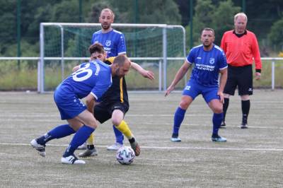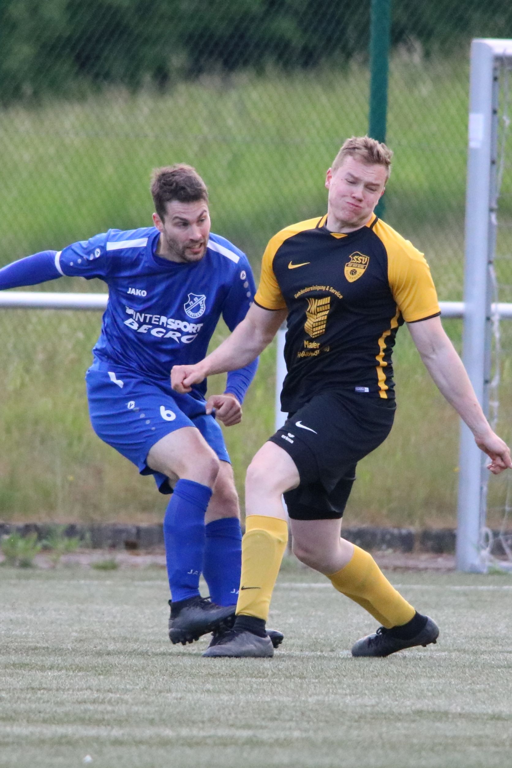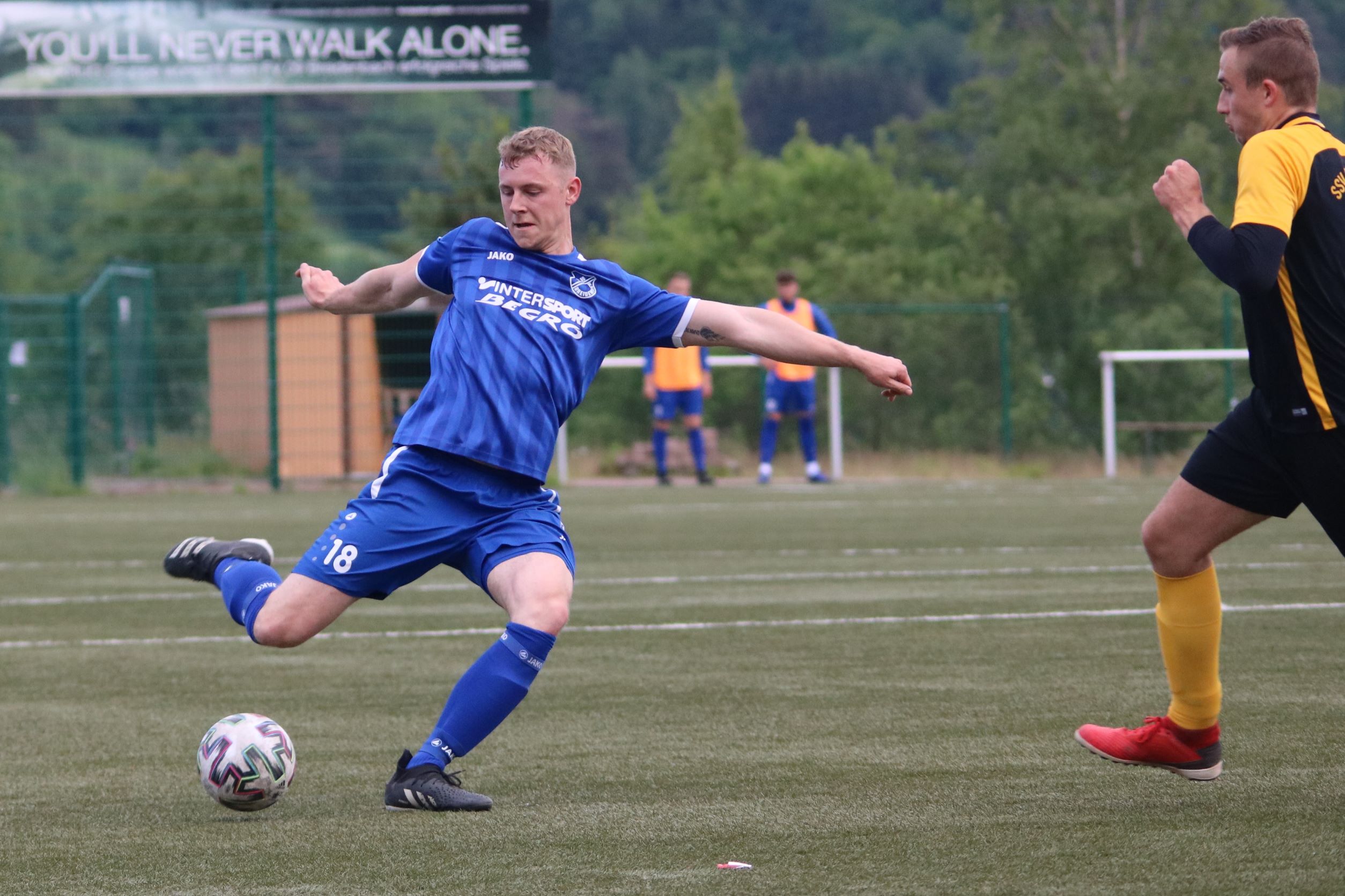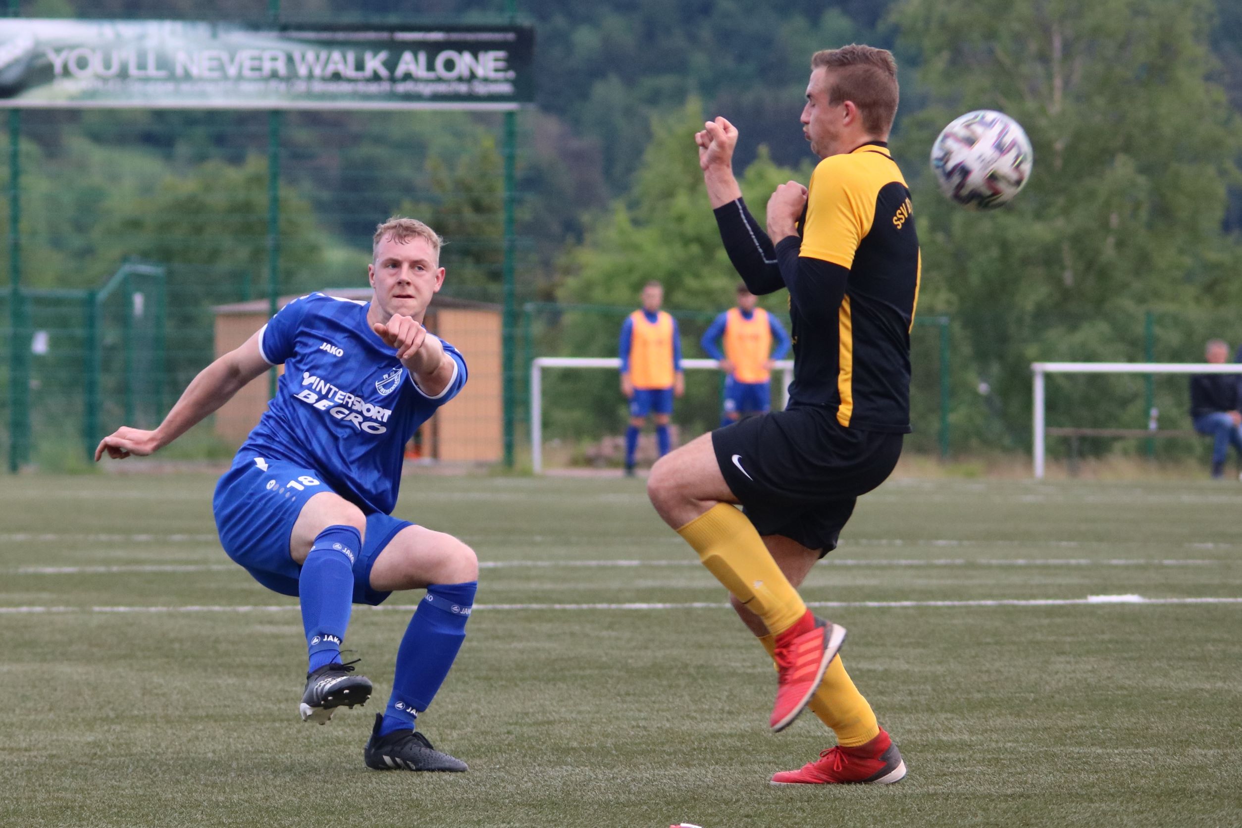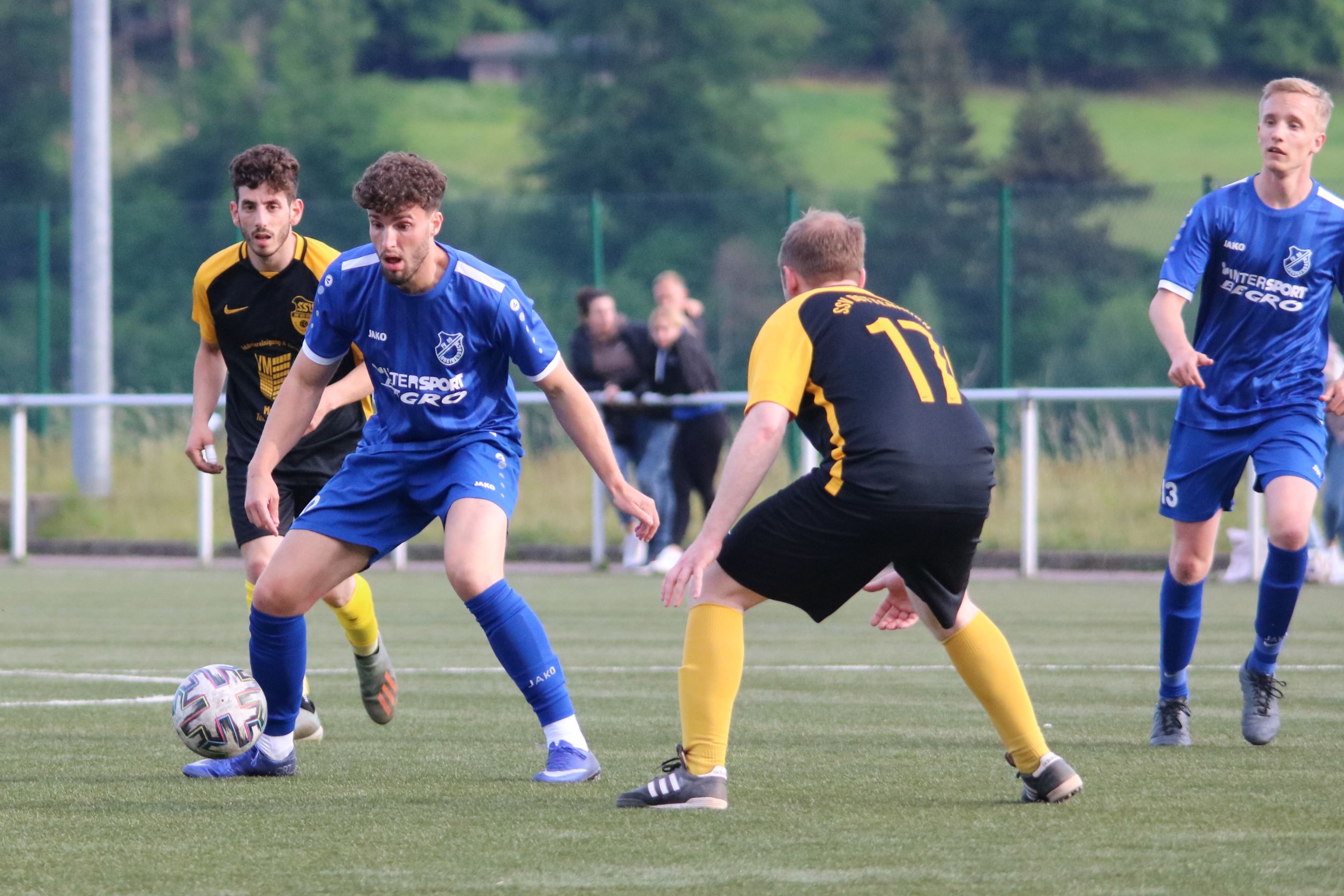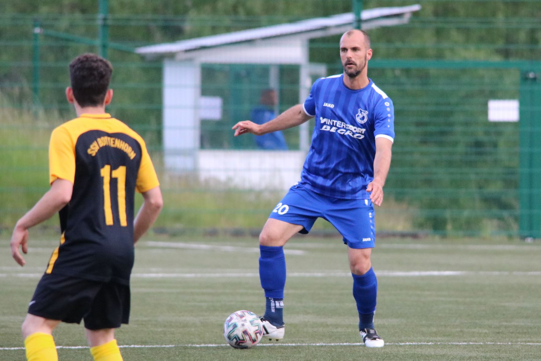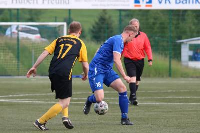 (FS/24.05.2022) Die 2. Mannschaft des FV 09 konnte am Dienstagabend den Schwung des Sonntagsieges gegen TuSpo Breidenstein nicht komplett mitnehmen in die Partie gegen den alten Rivalen SSV Bottenhorn. Am Ende stand es leistungsgerecht 1:1 Unentschieden. Beide Mannschaften agierten praktisch über 90 Minuten auf Augenhöhe und verdienten sich dann den 1 Punkt. Breidenbach zeigte über weite Strecken die technisch etwas bessere Spielweise, die Bottenhorn mit einer guten kämpferischen Leistung wett machen konnte. Als Breidenbach nach einem leichten Fehler im Mittelfeld den Konterangriff der Gäste nicht wirklich gut verteidigen konnte, war es der in der kommenden Saison für den FV 09 stürmende Luca Vogel im SSV-Dress, der in der 29. Minute seine Torjägerqualitäten präsentierte und zum 0:1 einschoss. Breidenbach spielte ruhig weiter, schaffte es ebenso wie die Gäste jedoch nicht, ernsthafte Gefahr vor dem Gästetor zu erzeugen. Als in Halbzeit 2 Breidenbach den Druck etwas erhöhen konnte, war es Steven Simmons in der 63. Minute, der aus kurzer Distanz zum 1:1 Ausgleichen konnte. In der Folgezeit übernahm Breidenbach das Kommando auf dem Feld, Bottenhorn konnte jedoch mehrfach mit guten Konteraktionen seine Gefährlichkeit zeigen. Luca Vogel scheiterte dabei nochmals Mitte der 2. Halbzeit in aussichtsreicher Position. Auf der Gegenseite hatte der eingewechselte Moritz Schmalz einige guten Szenen, in denen er zum Abschluss kam, jedoch nichts Zählbares erreichen konnte. Schlussendlich blieb es beim leistungsgerechten 1:1, dass beiden Teams beim Blick auf die Tabelle nicht wirklich weiterhilft.