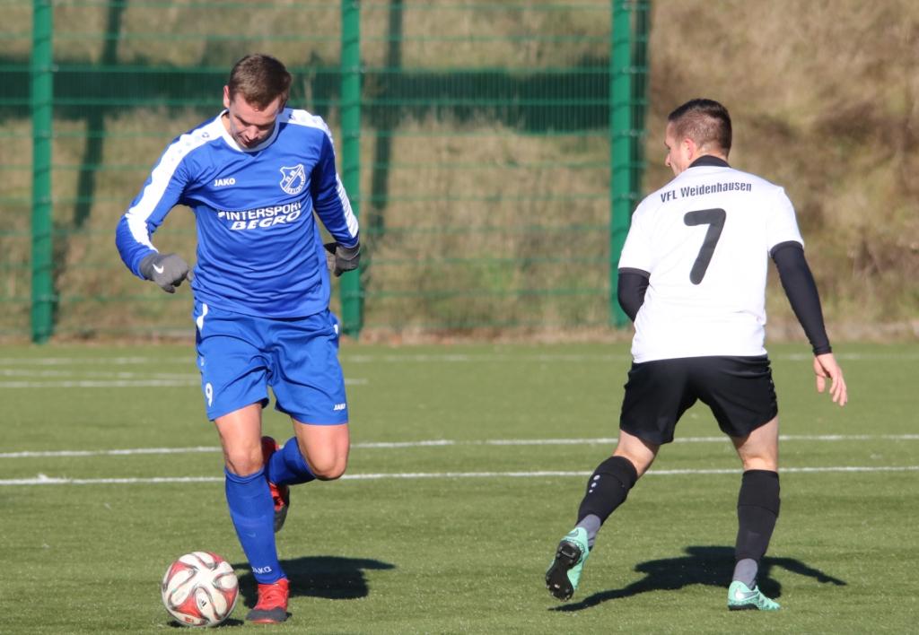 (FS) Der FV 09 Breidenbach II konnte zum Jahresabschluss leider kein positives Ergebnis erzielen. Im Fazit muss man von einer zweifelsfrei verdienten Niederlage sprechen. Aber man muss auch von einem glücklichen Gästesieg sprechen, denn als in der 92. Spielminute FV-Kapitän Martin Bamberger mit der letzten Spielaktion den Ball nach eine 40 Meterflanke im Strafraum aufnimmt und ins Tor schießt, war es Schiedsrichter Fabian Tomasi, der zum Entsetzen aller Einheimischen plötzlich auf Abseits entschied. So blieb es beim 1:2, dass letztendlich dem VfL Weidenhausen wegen der größeren und eindeutigeren Anzahl an guten bis sehr guten Torchancen auch verdiente 3 Punkte einbrachte.
