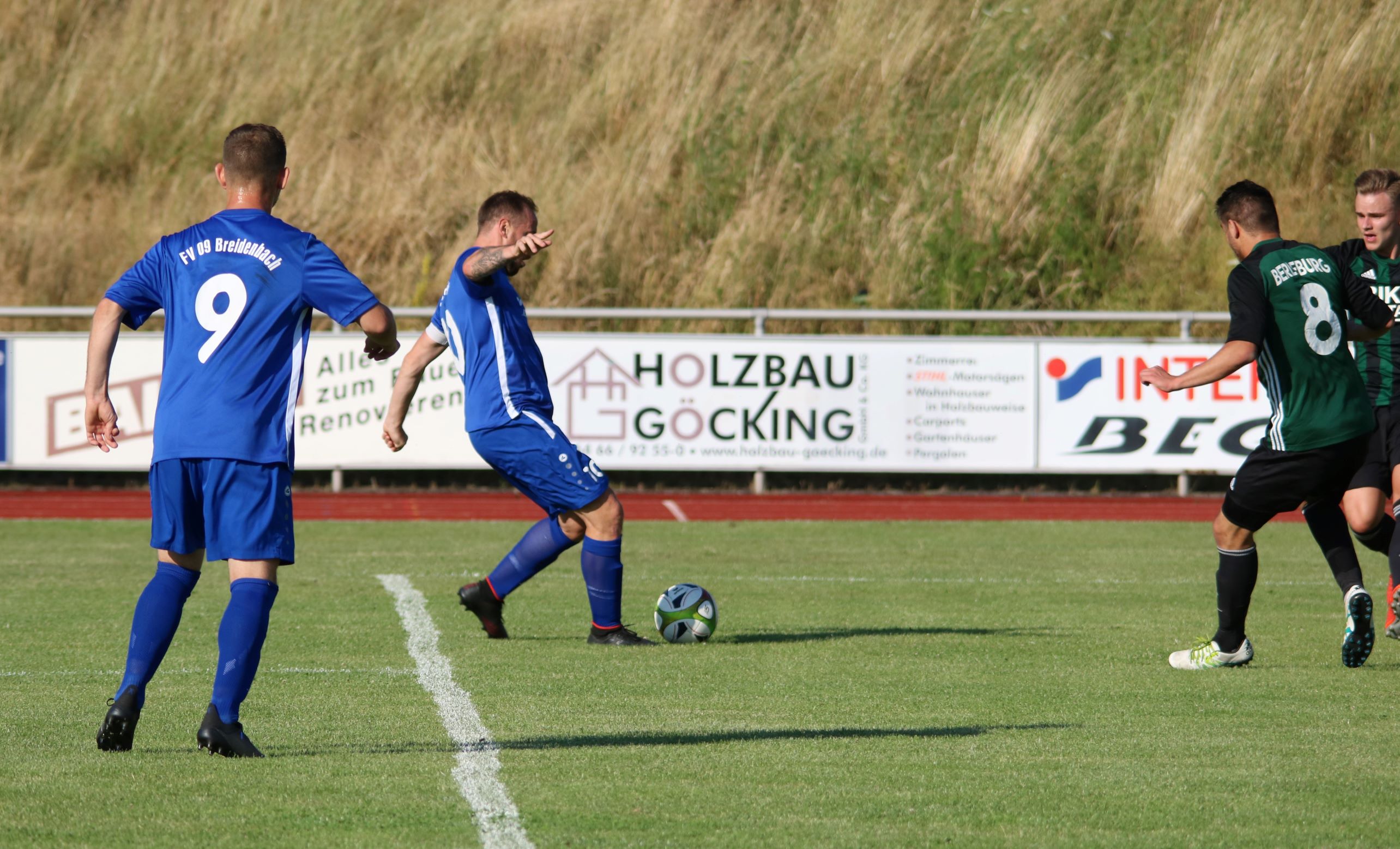 (FS) Mit einem deutlichen 8:1-Sieg konnte sich der FV 09 Breidenbach am Freitagabend gegen den westfälischen Landesligisten VfL Bad Berleburg durchsetzen. Ein klares Ergebnis, dass dem Wert der Gästeleistung sicherlich nicht ganz gerecht wird. Über weite Strecken der Partie spielte der VfL ordentlich mit und hatte einige gute Torchancen, die FV-Keeper Lars Benner mit guten Paraden entschärfte. Auf der Gegenseite war es FV-Kapitän Felix Baum, der vor allem in Halbzeit 1 nicht zu stoppen war und der vor dem Tor seine Klasse zeigen konnte. In der Folge markierte er einen lupenreinen Hattrick (15., 30. und 40.) zum 3:0 Pausenstand für sein Team.