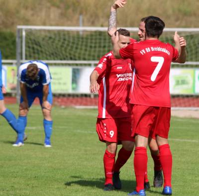 (FS) Was für ein Startergebnis in die neue Saison! Die Breuer-Elf siegte am Sonntag gegen den Aufsteiger FC Cleeberg mit 3:0 und belohnte sich für 90 Minuten Disziplin, Kampfbereitschaft und Teamgeist gegen einen guten Gegner, der schlussendlich vielleicht um 1 Tor zu hoch geschlagen wurde. Insgesamt gesehen muss man der Breidenbacher Elf aber ein Kompliment aussprechen, denn sie hat sich gegenüber den letzten Spielen um das Maß gesteigert, dass für Siege in der Verbandsliga erforderlich ist.