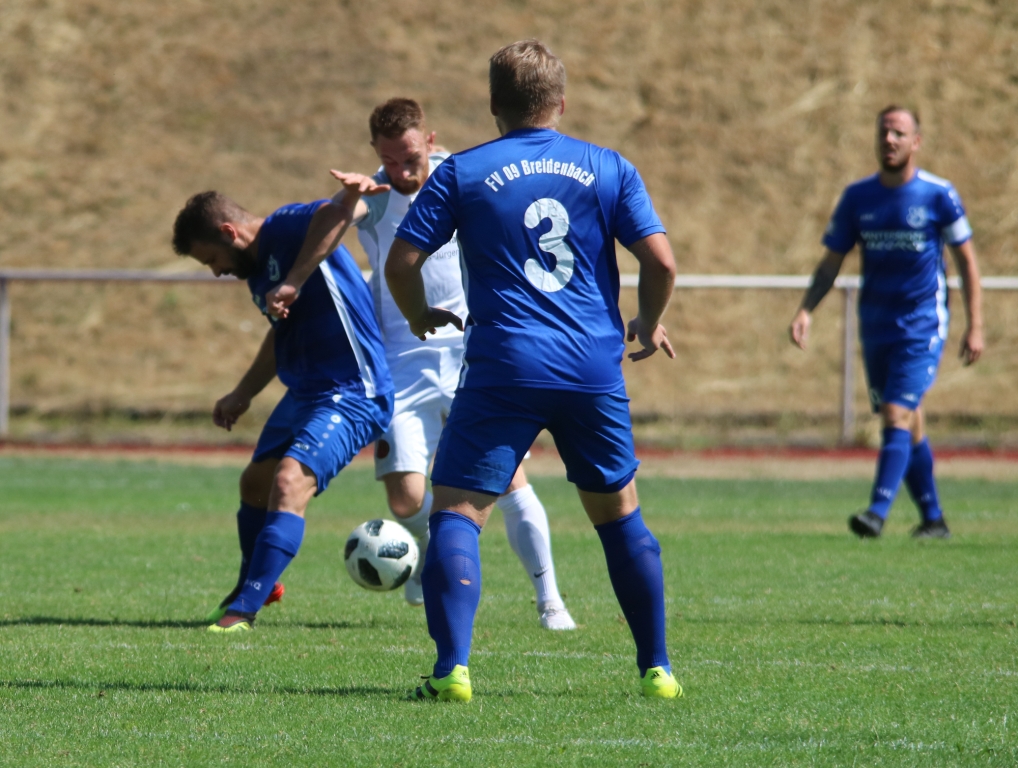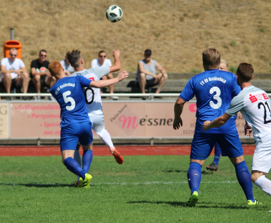 Breidenbach verwaltete in der Folgezeit das Spiel und spielte trotz der großen Hitze mit großer Lust weiter forsch nach vorne. Novakovs Schuß am langen Tor-dreick vorbei (55.), Baums Riesenchance mit links (63.) oder die beiden Schußge-legenheiten von Simon Reiprich (76. und 79.) waren dabei nur ein Teil dessen, was am Ende den Sieg wie auch das Ergebnis für die Breuer-Elf mehr als rechtfertigt.