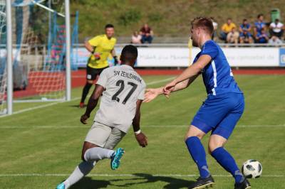 (FS) Der FV 09 Breidenbach beendete die Fußballwoche mit einer sehr ärgerlichen und auch unglücklichen Niederlage gegen den SV Zeilsheim. Die Gäste aus dem Frankfurter Stadtteil mussten ohne 7 antreten und so waren die Breidenbacher Ausfälle auf der anderen Seite vor Spielbeginn ein wenig ausgeglichen, was das Personal anbelangte. Unsere Elf suchte von Beginn an im offenem Visier das Duell auf dem Feld und konnte die Partie mit einer guten Raumaufteilung und viel Laufarbeit weitestgehend offen gestalten. Zeilsheim hatte jedoch immer wieder Phasen im eigenen Aufbauspiel, wo die technischen Dominanz zu Tage kam und mit den schnellen Offensivleuten Carlos McCrary und Dillon Fosuhene entwickelten sie mehrfach gefährliche Aktionen im Breidenbacher Strafraum. Lars Benner im FV-Tor konnte seine gute Form mehrfach zeigen und sein Team im Spiel halten. Keine Chance sollte er in der 9. Minute haben, als der Ball von einem Breidenbacher Spieler Gästestürmer McCrary im Strafraum in den Fuß gespielt wurde. Dieser reagierte blitzschnell und schob zum 0:1 ein. Breidenbach steckte in der Folgezeit nicht auf und entwickelte immer wieder über Felix Baum seine Angriffe. Dieser scheiterte mit einigen guten Torabschlüssen am Ende immer wieder an der eigenen Ungenauigkeit oder am sehr guten Zeilsheimer Torhüter Dominik Reining. Den Torschrei auf den Lippen hatten alle FV-Anhänger dann nach knapp einer halben Stunde, als Baum auf und davon marschierte und alleine vor dem Gästetor das Leder am Torwart und dem Tor vorbeischlenzte. Zu diesem Zeitpunkt war Breidenbach besser im Spiel und hätte mit dem Ausgleich die Weichen für eine Punktgewinn stellen können. Aber auch Zeilsheim zeigte sich unbeeindruckt und spielte seine Stärken in den folgenden Minuten bis zur Halbzeit aus. So war es der pfeilschnelle Dillon Fosuhene, der sich praktisch direkt vor dem Halbzeitpfiff gegen den Breidenbacher Tobi Ochs im Laufduell als Sieger präsentiert und das Leder zur 2:0-Führung für sein Team einschoß.