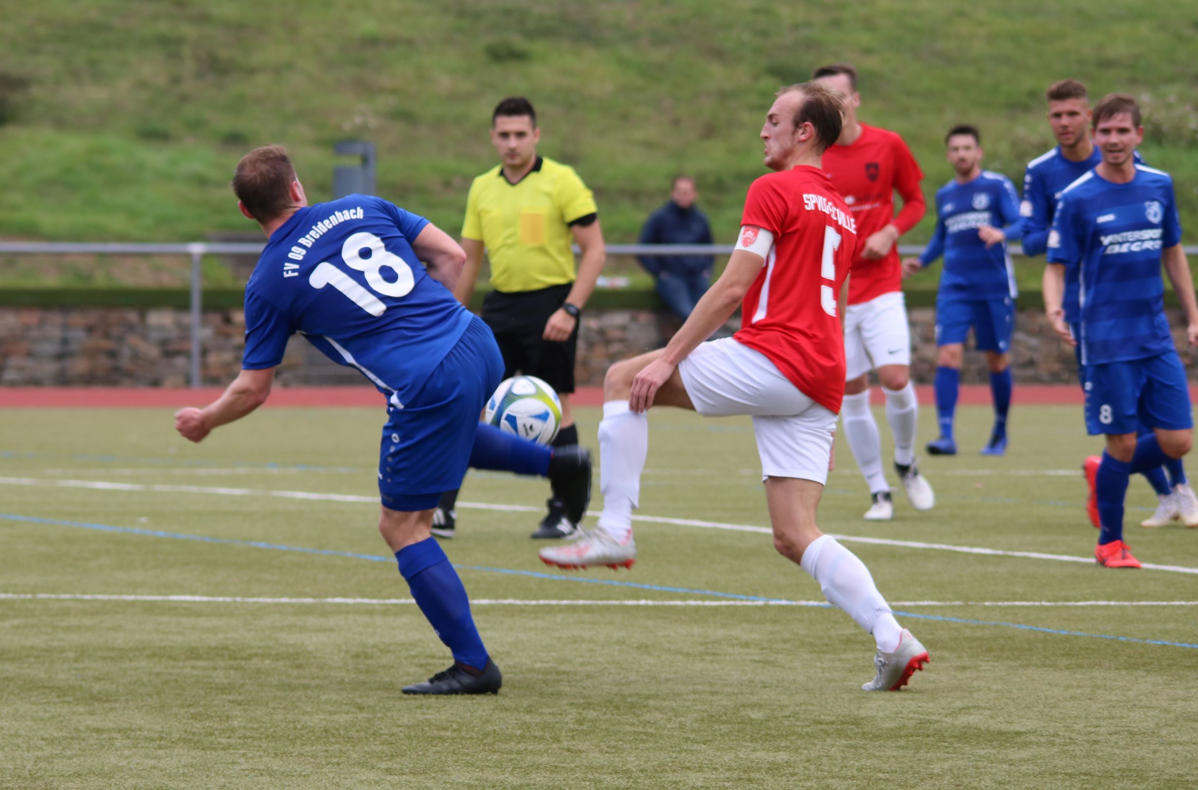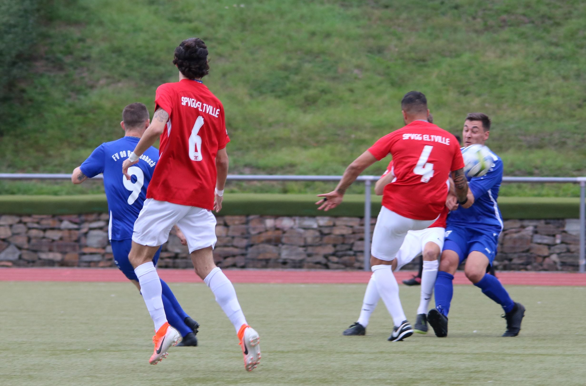 So feierten unsere Jungs einen Auswärtssieg, den ihnen vor Wochenfrist sicherlich nur ganz wenige Experten zugetraut hätten. Und wenn man das Spiel über 90 Minuten betrachtet, dann war der Erfolg ohne wenn und aber verdient, weil die am Ende cleverere Elf ihre Stärken auf den Punkt auf dem Platz umgesetzt hat. Die letzte halbe Stunde sollte dabei auch die Torerfolge für den FV 09 bringen, die zuvor schon mehrfach knapp nicht umgesetzt werden konnten. Begonnen hatte die Partie dabei mit einem geordneten und klar strukturierten Spiel des FV 09, bei dem jeder Akteur seine Aufgaben sehr gut löste. Laufarbeit, Stellungsspiel und Zweikampfspiel entwickelten sich in der Bilanz zugunsten des FV 09, während die Gastgeber der Spvgg. Eltville zwar mit einem leichten optischen Übergewicht auf dem Feld agierten, dabei in den ersten 45 Minuten aber nicht eine brauchbare Torchance herausspielten. Breidenbach hatte da schon 2-3 gute Abschlüsse durch Felix Baum (22. und 43.) sowie auch durch Tim Stracks Schußgelegenheit in der 36. Minute, als er in letzter Sekunde geblockt wurde. So ging es mit einem guten Gefühl und einem 0:0 in die Kabine und Steffen Schmitt hatte seine Jungs offensichtlich nochmal gut eingestellt, als der souverän leitende Schiedsrichter Allesandro Scotece zum 2. Durchgang anpfiff. Auch, wenn Eltville in den ersten Minuten auch die ersten Gelegenheiten zum Torerfolg bekommen sollte (47. Rechtsschuß am langen Pfosten vorbei und 48. Schuß am kurzen Pfosten vorbei), so fing sich unsere Elf schnell und agierte mit intensivem Spiel und Zweikampfgewinnen. Gerade dies zeigte sich als deutlich verbessert gegenüber den letzten Wochen und so konnte man sehen, dass mit zunehmender Spieldauer auch das Selbstvertrauen stetig zunahm. Als Felix Baum dann in der 60. Minute mit einem Traumpass von Philip Michel freigespielt wurde, zeigte er all seine Klasse und Routine und vollstreckte per Lupfer aus 16 Metern zur 1:0-Führung für den FV 09. Eltville forcierte fortan sein Bemühungen noch mehr und Heimkapitän Julian Vogler lieferte sich immer wieder packende Duelle mit Philip Michel. Breidenbachs Nr. 18 zeigte ein Klassespiel und so konnte er nicht nur Vogler im Zaum halten, sondern auch immer wieder seine Spitzen in Szene setzen. Man kommt nicht umhin, die FV-Defensive zu erwähnen, die auf allen 4 Positionen mit Novakov - Kapitza - Weber und Beumer sowie auch Torhüter Lars Benner einen Sahnetag erwischt hatte. Dabei verlebte FV-Keeper Lars Benner eigentlich einen geruhsamen Nachmittag, weil seine Vorderleute praktisch alles abräumten und er somit mehr als Spielaufbauer denn als Torverhinderter auffiel. Eltvilles hochgelobte Offensive brachte bis auf ganz wenige Ausnahmen praktisch nichts zu Stande und somit lieferte die ganz starke Defensive heute sicherlich die Basis für den Sieg. Dieser sollte in der 86. Minute praktisch dann auch unter Dach und Fach sein, als der starke Nico Novakov von der linken Außenbahn einen Seitenwechsel auf seinen Kapitän Felix Baum spielte. Dieser nahm das Spielgerät volley und donnerte das Leder oben ins linke Toreck. Das war ein Ausrufezeichen und beendete alle Hoffnungen der Spvgg. Eltville auf Punkte an diesem Nachmittag. Es sollte am Ende dann noch besser kommen für die Elf von Steffen Schmitt. Wiederum Felix Baum glänzte als Vorbereiter, als er Lucas Ortmüller wunderbar frei spielte. Dieser hatte die Lücke auf der linken Eltviller Abwehrseite schnell erkannt und das Leder dann mit einem überlegten Rechtsschuß ins Netz befördert. 3:0 lautete am Ende das Ergebnis in einem Spiel, dass auf Breidenbacher Seite nur Gewinner hat. Alle Akteure zeigten eine klasse Leistung und nahmen das an, was ihr Trainer ihnen über 90 Minuten mit auf den Weg gegeben hatte. So kanns weiter gehen und dazu wird unsere Elf bereits am kommenden Mittwoch im Spiel gegen den FC Waldbrunn zeigen können, was man mit Einsatz, Kampf, Disziplin und vor allen Dingen Teamgeist gemeinsam erreichen kann.