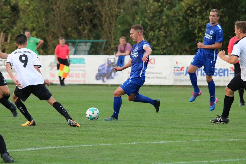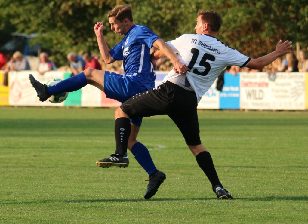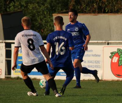 (FS) FV-Trainer Björn Breuer hatte vor der Begegnung die Rotationsmaschine angeworfen und gegenüber dem vergangenen Sonntagspiel 7 neue Spie-ler in die Anfangsformation geworfen. Die Erkenntnisse aus dem Trainings-betrieb der letzten Wochen ließen ihn dabei völlig entspannt auf der Trainer-bank Platz nehmen. Seine Elf zog von Beginn an ein kontrolliertes Passspiel auf, ohne in vorderster Front wirkliche Torgefahr zu verbreiten. Der amtier-ende Kreispokalsieger VfL Weidenhausen mühte sich nach Kräften und versuchte selber, eigene Chancen herauszuar-beiten. Das dies nur sehr bedingt funktionierte, lag sicherlich an der konsequenten Abwehrarbeit des FV-Teams. So konnte Weidenhausen insgesamt nicht wirklich Gefahr im Strafraum unserer Elf verbreiten.
