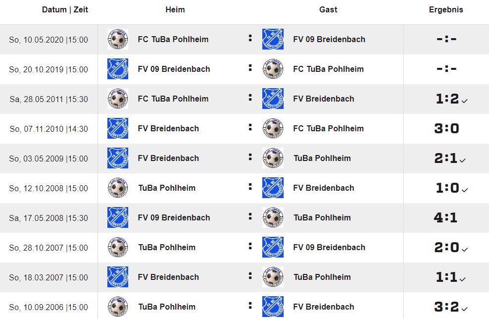 DIE BISHERIGEN SPIELE GEGENEINANDER: