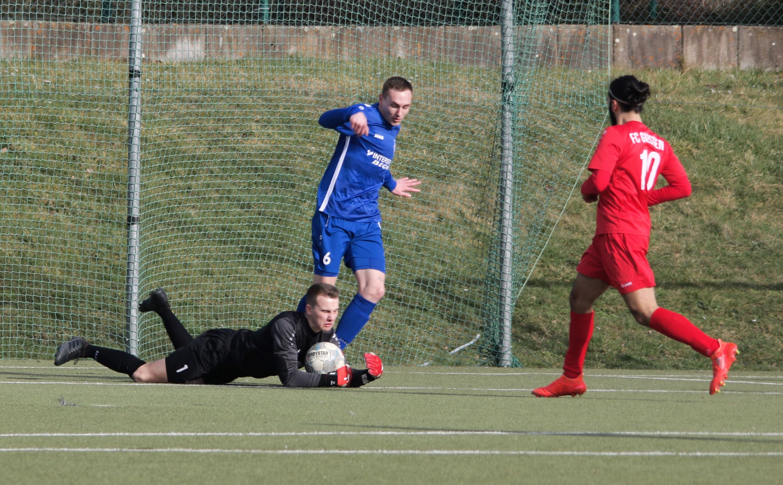 (FS) 93 Minuten Kampf und Hochspannung auf dem Kunstrasenplatz im Pohlheimer Stadtteil Watzenborn. Am Ende bleibt ein 3:3 (1:1) Unentschieden zwischen dem gastgebenden FC Gießen II und unserem FV 09 Breidenbach stehen. Ein unter dem Strich gerechtes Ergebnis in einem guten Verbandsligaspiel, dass auf der Heimseite einen Hauch von einem Chancenplus auf dem Notizzettel hinterließ, dass auf der anderen Seite eine kampf- und laufstarke FV-Elf zeigte, die sich mit einer geschlossenen guten Mannschaftsleistung den Punkt wirklich auch verdient hatte. Das, was den FV 09 in den letzten Ligaspielen so ausgezeichnet hatte, hat die Elf von FV-Coach Steffen Schmitt mittlerweile so verinnerlicht, dass das Team zu keiner Zeit aufgibt und den Teamgeist im blau-weißen Trikot am Leben erhält.