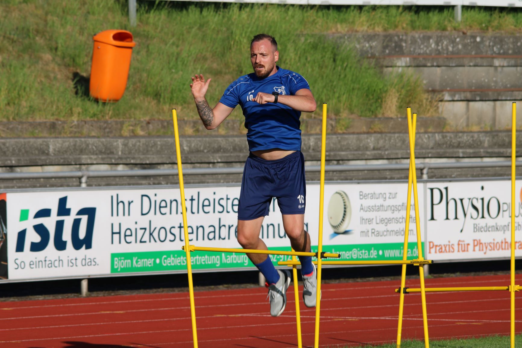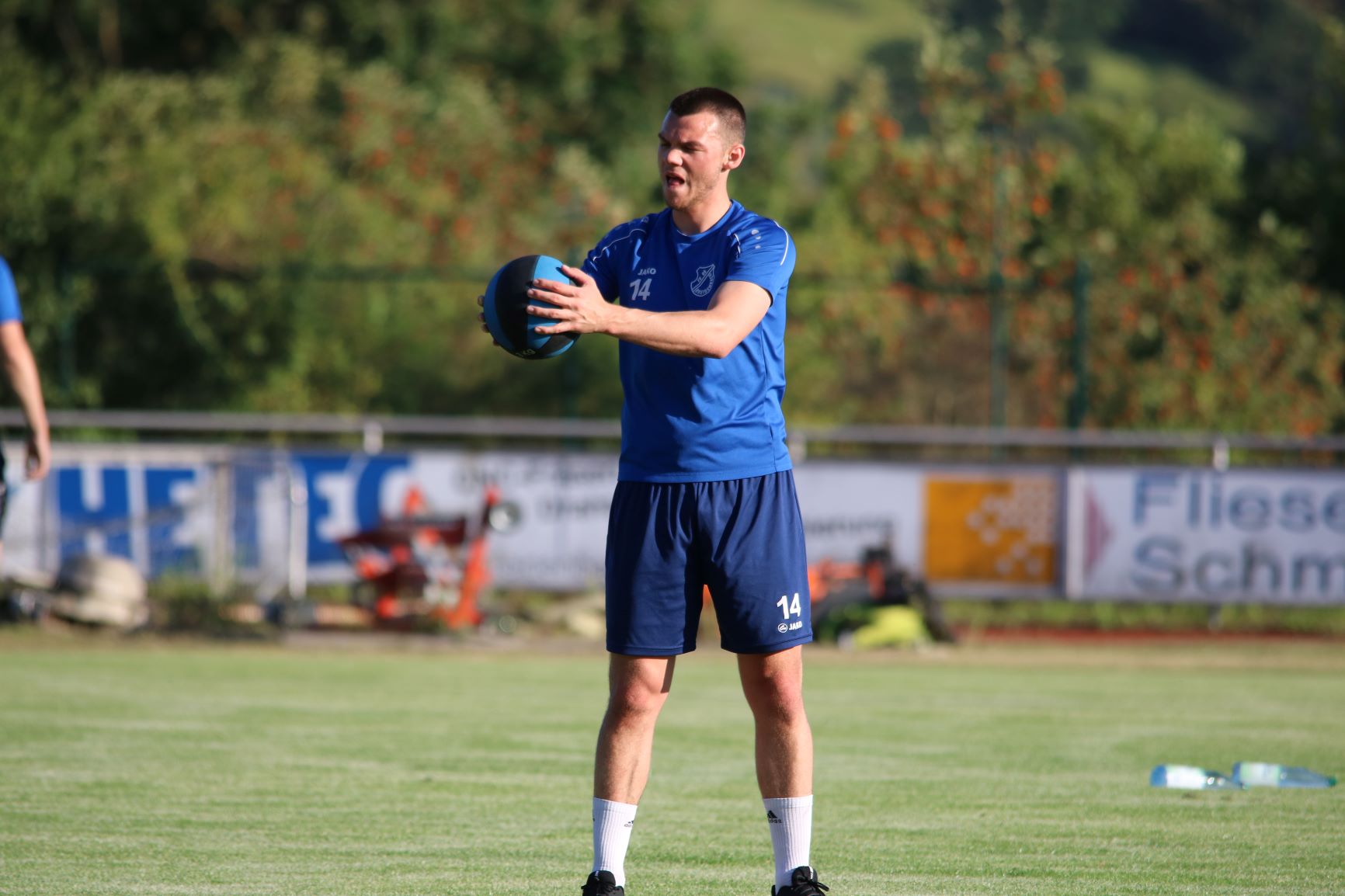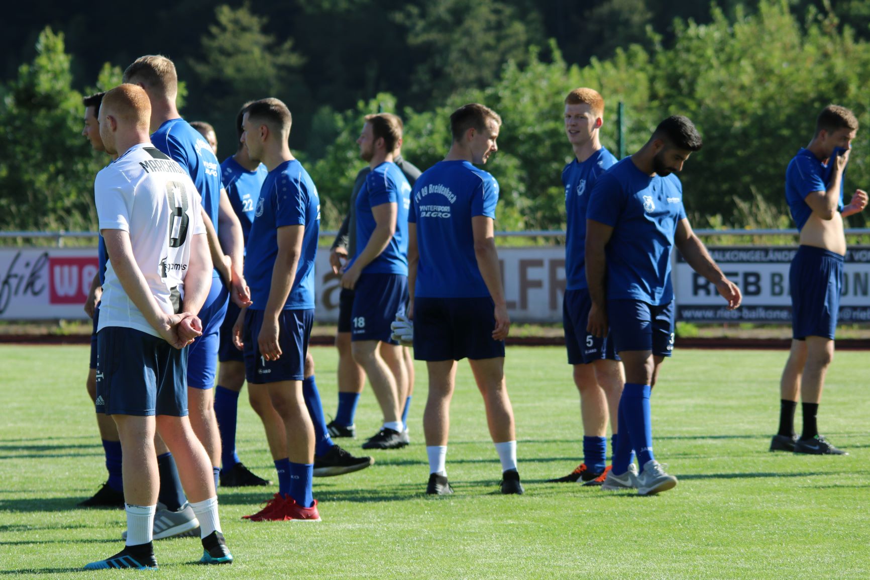 (FS) Mit voller Kapelle und unter Beachtung der aktuellen Hygienevorschriften startete das FV-Team in die erste Trainingswoche. Dabei floss der Schweiß schon in Strömen und die Basisarbeit zu Beginn der Vorbereitungszeit stand im Vordergrund der Trainingsarbeit. Mit Paul Will konnten die FV-Kicker auch einen prominenten Gastspieler begrüßen, der sich aktuell auf Heimaturlaub in Breidenbach befindet. Der Spieler des FC Bayern München II, der vor gut 3 Wochen mit seiner Elf den Meistertitel in der 3. Liga eingefahren hatte, ist immer wieder ein gern gesehener Gast bei seinem FV 09.