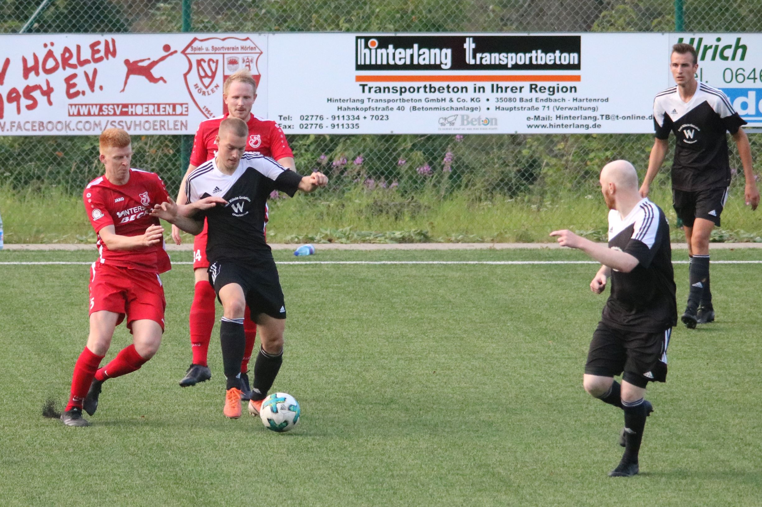 Breidenbachs Trainerteam hatte seiner Elf eine klare Marschroute mit auf den Weg gegeben. Früh das Spielgeschehen regeln und stressfrei in die nächste Runde einziehen. Wenigstens mit dem Endergebnis von 4:1 sicherte sich ihr Team einen deutlichen und hochverdienten Sieg, wenngleich die Gastgeber der SG Hörlen/Lixfeld aufopferungsvoll kämpften und bei mehreren guten eigenen Torgelegenheiten durchaus weitere Treffer hätten erzielen können. Dazu sollte es am Ende aber nicht kommen, weil zu Beginn vielleicht die Aufgeregtheit und am Ende die fehlende Kraft die Ursache dafür waren. Der FV 09 bestimmte jedoch über 90 Minuten das Geschehen und versäumte es, noch das eine oder andere Tor nachzulegen. Johannes Burk zog geschickt die Fäden im Mittelfeld und verteilte das Leder an seine Mitspieler. Und mit Basti Wanke hatte er einen Partner an seiner Seite, der den Torreigen nach 9 Minuten eröffnen sollte, als er aus kurzer Distanz im 2. Versuch einnetzte. Beim 0:2 für den FV 09 war es dann Defensivmann Yannick Weber, der per Kopf nach einer Linksecke in der 35. Minute zur Stelle war und das Leder versenkte. Damit war der erste euphorische Schwung der Gastgeber etwas eingebremst und Breidenbach konnte in dieser Phase Ball und Gegner laufen lassen. Ein Gastgeschenk lieferte die SG dann 3 Minuten später, als eine verunglückte Rückgabe von der Mittellinie auf Torwart Kevin Daniel zu kurz war und FV-Mittelstürmer Tim Strack blitzschnell dazwischen spritzte und das Leder im langen Toreck versenkte. Damit ging es in die Pause und beide Teams nutzten die Halbzeit, um frisches Personal aufs Feld zu schicken. Breidenbach spielte auch in den zweiten 45 Minuten dominant und schaffte durch Youngster Aaron Künkel in der 65. Minute das überfällige 0:4. Die Gastgeber steckten jedoch zu keiner Zeit auf und sollten in der 89. Minute dann für ihr Engagement auch belohnt werden. Breidenbachs Hintermannschaft war wieder mal ungeordnet und SG-Sturmführer Justus Born krönte seine gute Leistung mit dem Ehrentreffer zum 1:4.