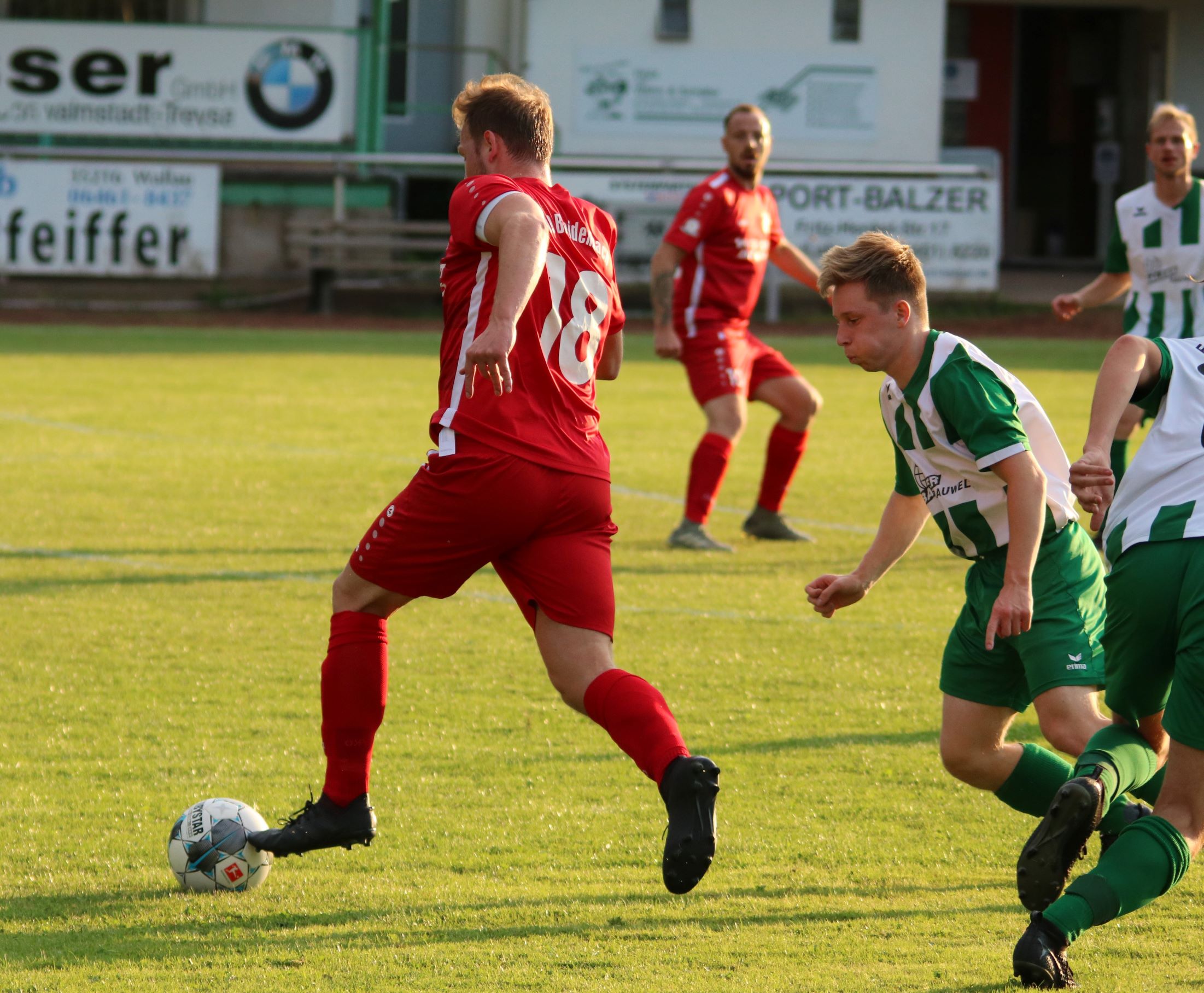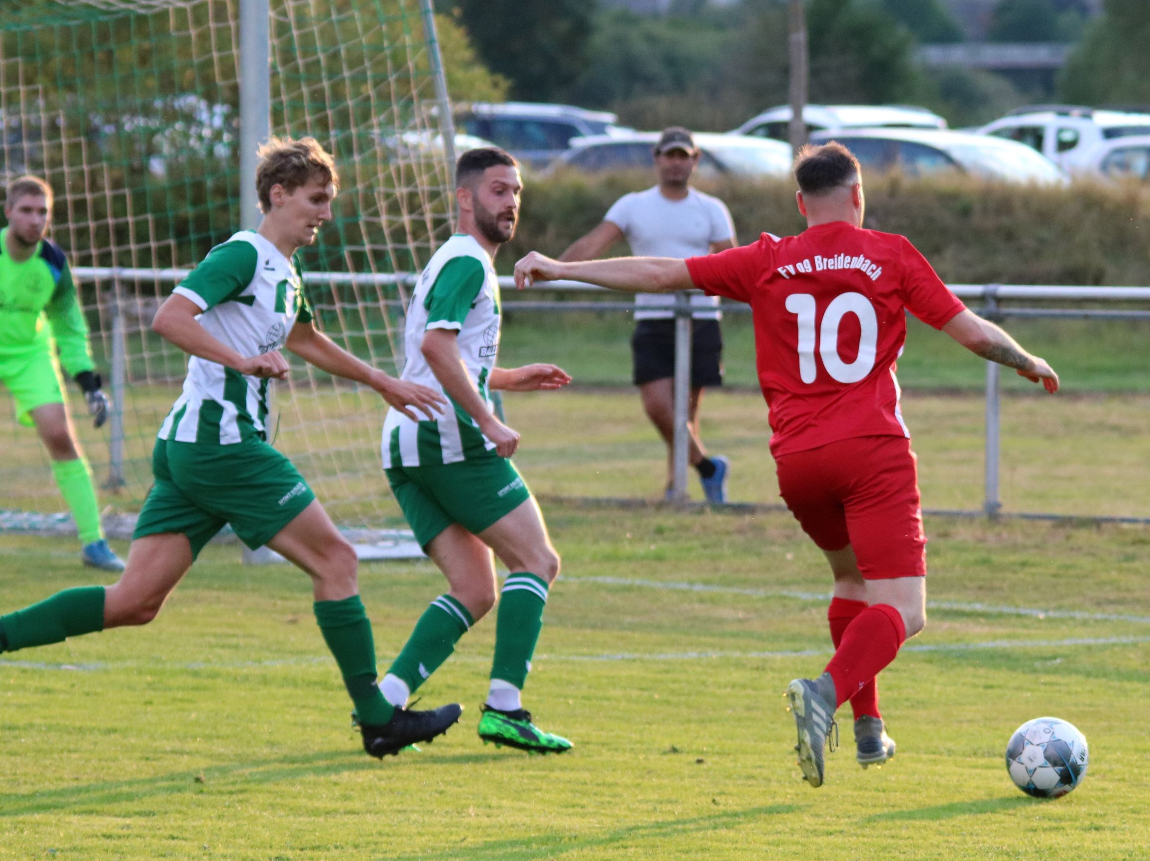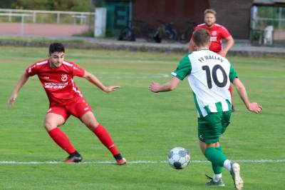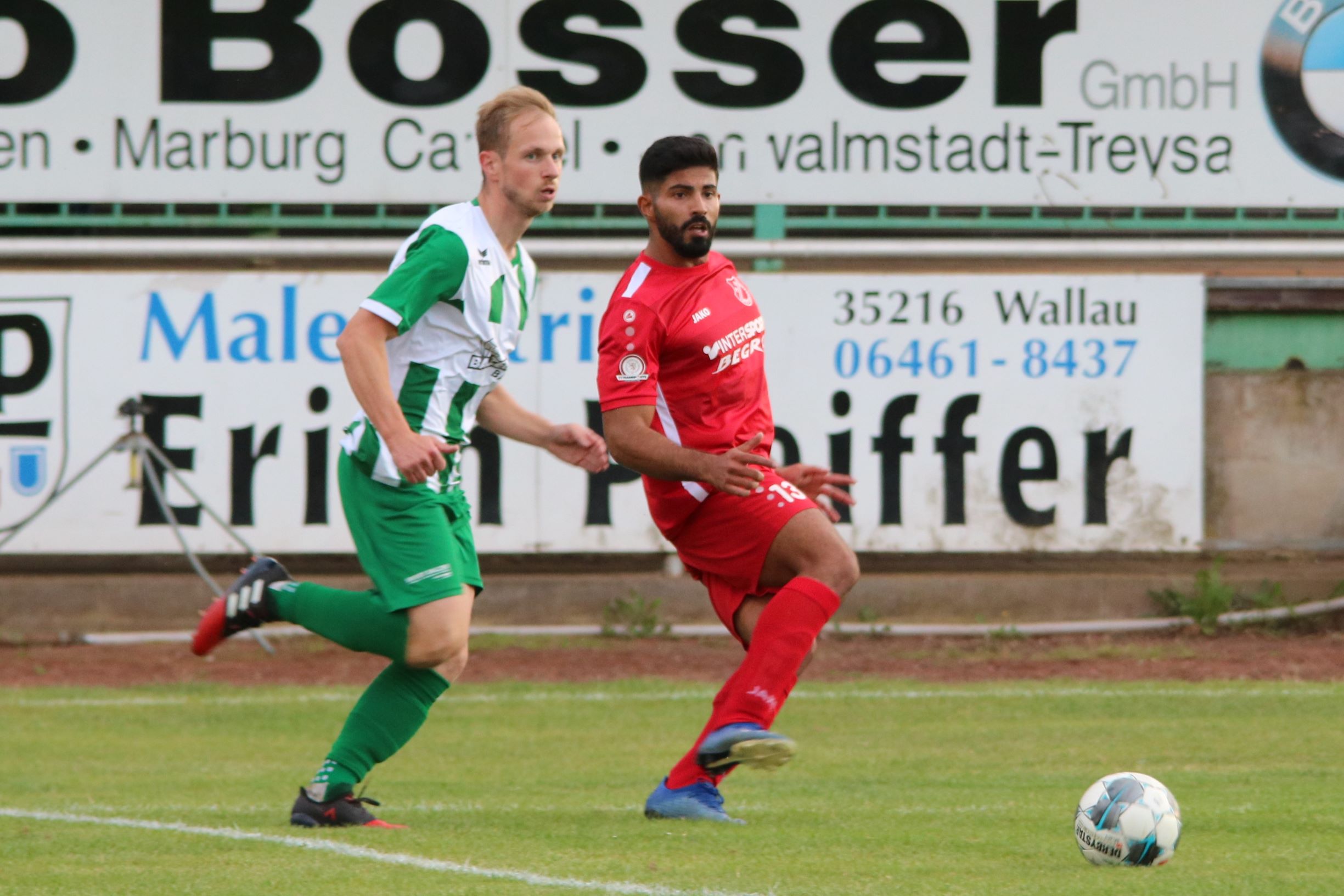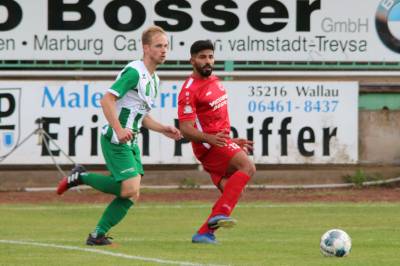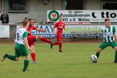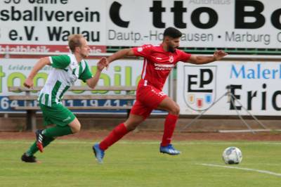 Der gastgebende A-Ligist FV Wallau konnte in Runde 2 des diesjährigen Licher Kreispokalwettbewerbs nur 45 Minuten sein Tor einigermaßen sauber halten. Mit 0:2 sah es zunächst noch ganz passabel aus, jedoch sollte sich die große Laufarbeit der Gastgeber dann am Ende doch noch merklich niederschlagen und die Kräfte mit zunehmender Spielzeit nachlassen. Begonnen hatte der FV 09 in Minute 1 mit dem ersten Angriff über die rechte Angriffsseite. Nils Cakar starte mit seinem Sololauf durch 4 Wallauer hindurch und bediente seinen Spielertrainer Felix Baum im Straufraumzentrum. Dieser tanzte seinen zu zögerlich angreifenden Gegenspieler aus und markierte per Linksschuß das 0:1. Da waren gerade mal 60 Sekunden gespielt und ein Teil der Zuschauer hatte seine Plätze im weiten Rund des Wallauer Sportplatzes noch gar nicht eingenommen. In Minute 10 setzte der FV 09 dann den nächsten Ausrufepunkt, als Sebastian Wanke nach Vorarbeit von Felix Baum zur Stelle war und das Leder im Wallauer Netz versenkte. Damit war die Luft für Wallau schon aus dem Spiel genommen und Breidenbach ließ in der Folgezeit Ball und Gegner laufen. Wallau konnte offensiv so gut wie keine Akzente setzen und hatte alle Hände voll zu tun, um in der Defensive die Löcher zu schließen. Das gelang mit einer guten Laufleistung in Halbzeit 1 recht gut und so rettete sich Wallau mit einem passablen 0:2 in die Pause.