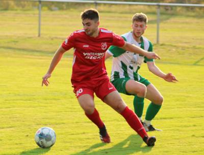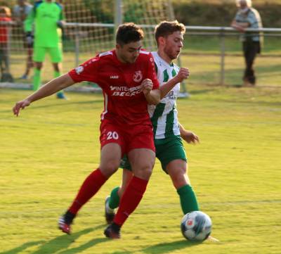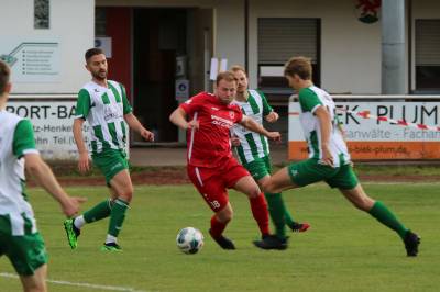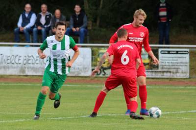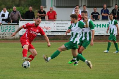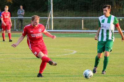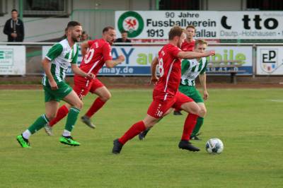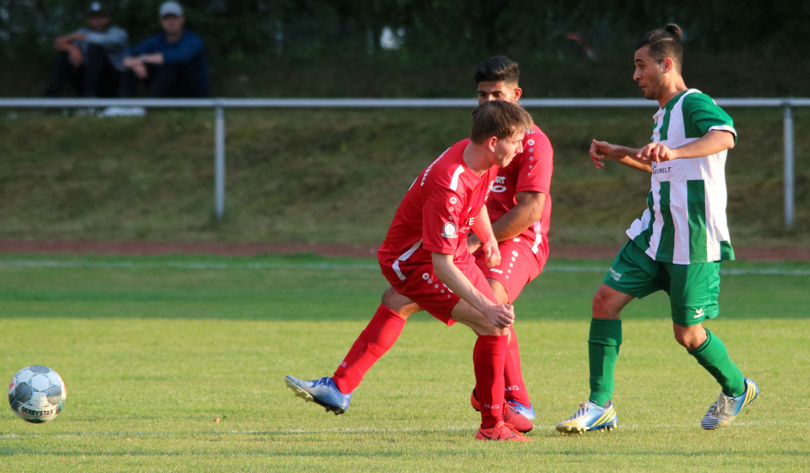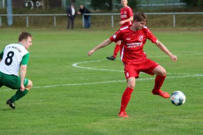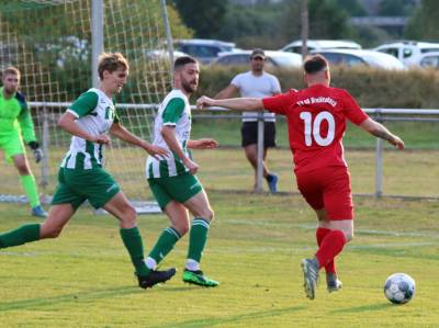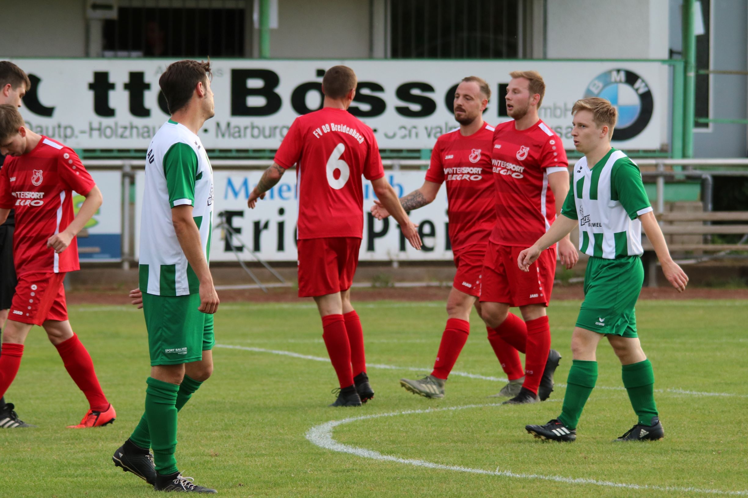 Der gastgebende A-Ligist FV Wallau konnte in Runde 2 des diesjährigen Licher Kreispokalwettbewerbs nur 45 Minuten sein Tor einigermaßen sauber halten. Mit 0:2 sah es zunächst noch ganz passabel aus, jedoch sollte sich die große Laufarbeit der Gastgeber dann am Ende doch noch merklich niederschlagen und die Kräfte mit zunehmender Spielzeit nachlassen. Begonnen hatte der FV 09 in Minute 1 mit dem ersten Angriff über die rechte Angriffsseite. Nils Cakar starte mit seinem Sololauf durch 4 Wallauer hindurch und bediente seinen Spielertrainer Felix Baum im Straufraumzentrum. Dieser tanzte seinen zu zögerlich angreifenden Gegenspieler aus und markierte per Linksschuß das 0:1. Da waren gerade mal 60 Sekunden gespielt und ein Teil der Zuschauer hatte seine Plätze im weiten Rund des Wallauer Sportplatzes noch gar nicht eingenommen. In Minute 10 setzte der FV 09 dann den nächsten Ausrufepunkt, als Sebastian Wanke nach Vorarbeit von Felix Baum zur Stelle war und das Leder im Wallauer Netz versenkte. Damit war die Luft für Wallau schon aus dem Spiel genommen und Breidenbach ließ in der Folgezeit Ball und Gegner laufen. Wallau konnte offensiv so gut wie keine Akzente setzen und hatte alle Hände voll zu tun, um in der Defensive die Löcher zu schließen. Das gelang mit einer guten Laufleistung in Halbzeit 1 recht gut und so rettete sich Wallau mit einem passablen 0:2 in die Pause.