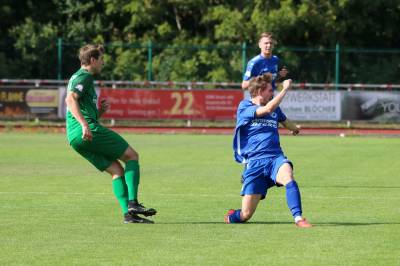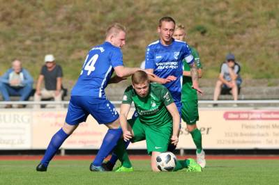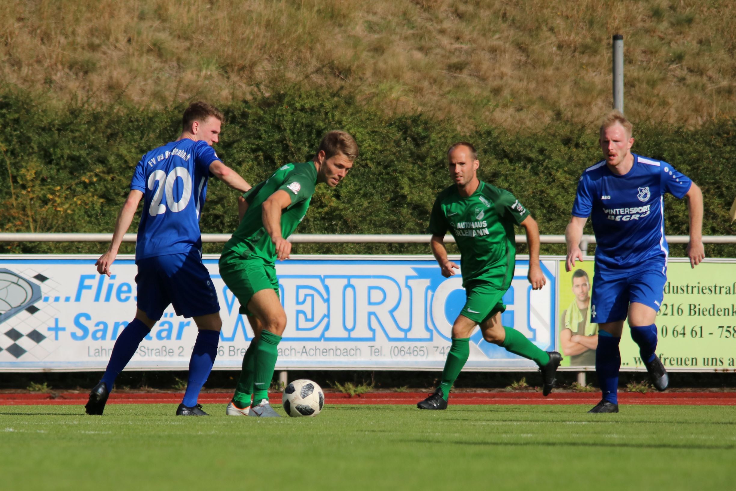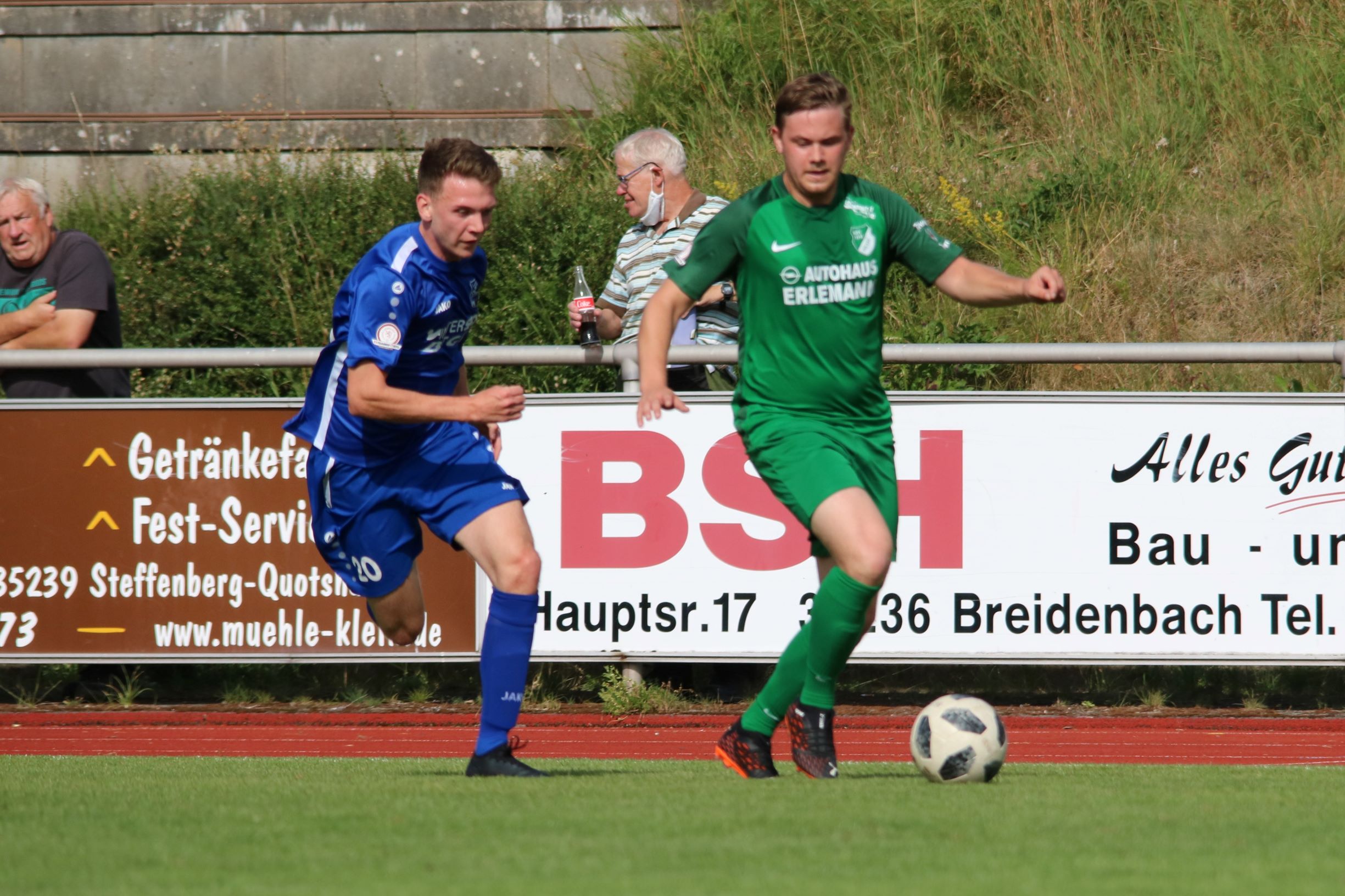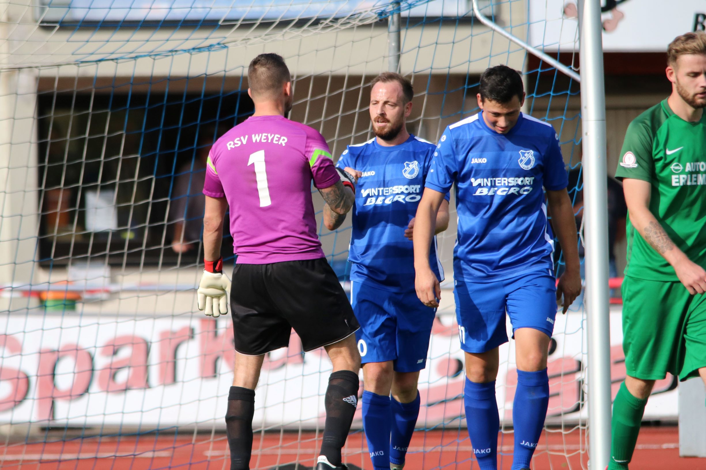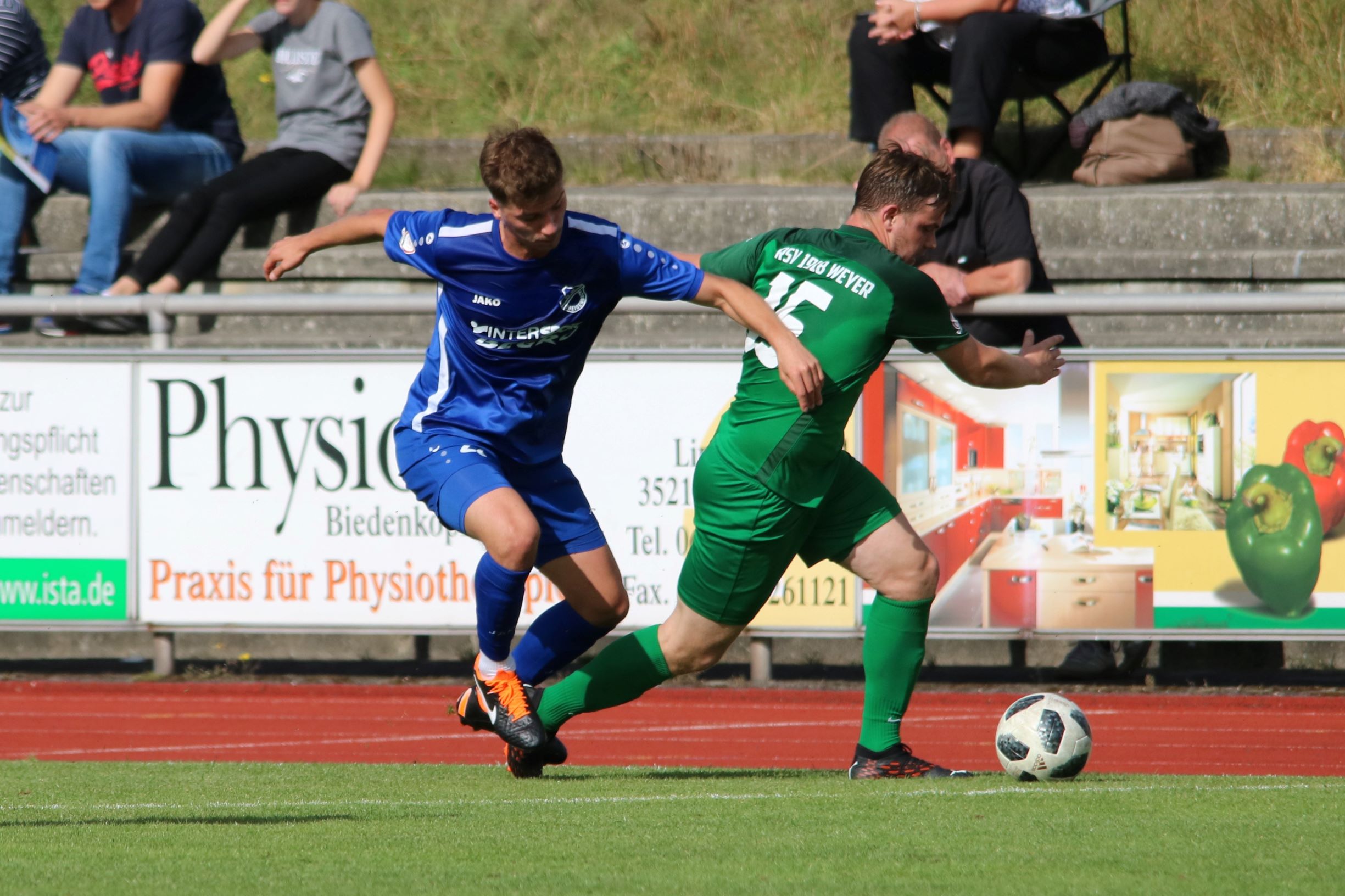Mit einem klaren und hochverdienten 7:0-Sieg siegte unsere Elf am heutigen Nachmittag im Heimspiel gegen den RSV Weyer. Dabei begannen die Gäste durchaus auf Augenhöhe und gestalteten das Spiel in der ersten Phase der Begegnung durchaus offen. Dabei zeigte sich der Tabellenletzte mit forschem Offensivspiel mit einigen guten Ansätzen, jedoch ohne wirklich Durchschlagskraft in vorderster Front zu erzeugen. Das lag natürlich auch an der konsequenten Abwehrarbeit in der FV-Elf, die sowohl ganz hinten in der letzten Reihe wie auch schon im Mittelfeld und beginnend in der Sturmreihe mit gutem Pressing dem Gegner die Lauf- und Passwege immer wieder zustellte. Die erste nenneswerte Torgelgenheit sollte Breidenbach schon nach 60 Sekunden haben, als Aaron Künkel über die linke Angriffsseite nach vorne stürmte und in der Strafraummitte Felix Baum bediente. Der kam um einen Sekundenbruchteil zu spät und so konnte der RSV Weyer klären. Weyer zeigte sich unbeeindruckt und hatte selber in der 5. Minute ebenfalls eine erste Schußgelegenheit, als Tillmann Stillger aus halbrechter Position am langen Torpfosten vorbei zielte. Der FV 09 gewann mit zunehmender Spieldauer immer mehr Sicherheit im eigenen Spiel und entwickelte im Mittelfeld mit Johannes Burk, Kapitän Lukas Müller und Basti Wanke eine spielerische Überlegenheit, die sich in der Folge auch im Offensivbereich in Form von Torchancen zeigen sollte. Als in Minute 23 Basti Wanke den Ball erkämpfte und auf der rechten Angriffsseite mit einer klasse Leistung seinen Gegenspieler abschüttelte, war die Vorarbeit zum 1:0 praktisch vollzogen. Seine Passvorlage auf Felix Baum nutzte dieser eiskalt und vollendete zum 1:0 für sein Team. Jetzt war so richtig Zug drin auf Breidenbacher Seite und das zeigte sich dann auch in der 32. Minute, als Lucas Ortmüller kampfstark im Zweikampf seinen Gegner stehen ließ und mit einem platzierten Linksschuß das 2:0 erzielte. Beim FV 09 zeigten alle Akteure, dass die letzten Spiele ordentlich Selbstvertrauen gebracht hatten. So spielte auf der rechten Außenverteidigerbahn Nils Cakar auch heute wieder eine klasse Partie. Sein Torschuß in der 35. Minute konnte RSV-Keeper Frank Naumann parieren. Dass beim FV 09 die Defensivarbeit heute einwandfrei funktionierte, demonstrierte Yannick Weber dann in der 40. Minute, als er seinem Gegenspieler David Seibel in aller höchster Not mit einer top Grätsche den Torschrei von den Lippen nahm. Und dann hatte Weyer in der 42. Minute mit dem Kopfball von Raphael Schmidt eine weitere nennenswerte Gelegenheit, die Zählbares hätte bringen können. Da hätte - wenn und aber bekanntlich jedoch nichts zählen im Fußball blieb es bei der verdienten Halbzeitführung des FV 09.