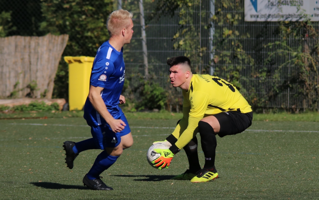 Zuvor hatte der FV 09 bereits einige Chancen herausgespielt. So verzog Felix Baum (25.) per Linksschuß und auch Sandro Noriegas 20 Meterhammer ging über das Gehäuse des TSV. Als nach 30 Minuten Julian Kapitza mit einem 50 Meter Diagonalpass Philip Michel in Szene setzte, konnte der wieder mal schneller als sein Gegenspieler agieren und mit einem trockenen Linksschuß aus 18 Metern das 0:2 erzielen. Und bereits 1 Minute später hätte der FV 09 nach dem Anstoß der Gastgeber und dem ersten abgefangenen Ball schon den nächsten Treffer folgen lassen können. Zweimal klatsche das Leder dabei an den Pfosten und Felix Baum war derjenige, der praktisch nicht zu halten war und beinahe seinen Treffer Nr. 2 erzielt hätte. Immer wieder war es im Offensivspiel über die linke FV-Seite Philip Michel, der mit mutigen Dribblings immer wieder gefährliche Situationen vor dem Tor der Gastgeber herauf beschwörte. Es sollte aber dann bis zur 43. Minute dauern, bis der FV 09 seinen dritten Treffer erzielte. Nachdem Felix Baum gute 25 Meter vor dem Tor der Gastgeber gefoult worden war, wartete alles auf die Ausführung durch den Gefoulten. Doch war es FV-Neuzugang Sandro Noriega, der das Leder per Traumtor an der Mauer vorbei in den Torwinkel donnerte und so die Vorentscheidung mit dem 0:3 zur Halbzeit klarmachte.