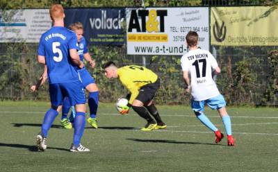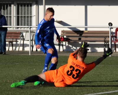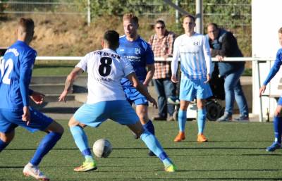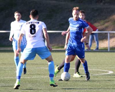 (FS) 3 x Felix Baum, Philip Michel, Sebastian Wanke und Sandro Noriega waren die Protagonisten, die ihr Team am Samstag auf dem Kunstrasenplatz des TSV Bicken zu einem hochverdienten 6:0 Auswärtssieg schossen. Und im Fazit zum Spiel muss man sagen, dass der TSV mit dem Ergebnis noch gut bedient war. Von der ersten Minuten an war die Breuer-Elf auf dem Feld die tonangebende Mannschaft. In der Folge dessen dauerte es auch nur bis zur 10. Minute, als Felix Baum seinen ersten Streich auf Feld brachte. Yannick Weber hatte seinen Kapitän mustergültig in Position gebracht und dieser nutzte den Freiraum und platzierte den Ball mit links im langen Toreck. Bicken versuchte in der Folge mit sicherem Passspiel Sicher-heit ins eigene Spiel zu bekommen. Jedoch war die Herrlichkeit im TSV-Spiel schnell wieder vorbei und endete dabei meist schon im Mittelfeld des FV 09. Dort arbeiteten in der Zentrale mit Sandro Noriega, Johannes Damm und Benni Bender drei Akteure, die praktisch alles abräumten, was vom TSV nach vorne gespielt wurde. Zudem waren beim FV 09 auf den Außenbahnen mit Philip Michel und Sebastian Wanke zwei bärenstarke Spieler im Einsatz, die von ihren Gegenspielern zu keiner Zeit auch nur Ansatzweise in den Griff zu bekommen waren. Letztendlich stand in der FV-Viererkette vor allem mit der Rückkehr von Julian Kapitza ein Mannschaftsteil zusammen, der über 90 Minuten jederzeit alles im Griff hatte und praktisch bis auf Jan Kneifels Konterchance in der 37. Minute nichts zuließ.