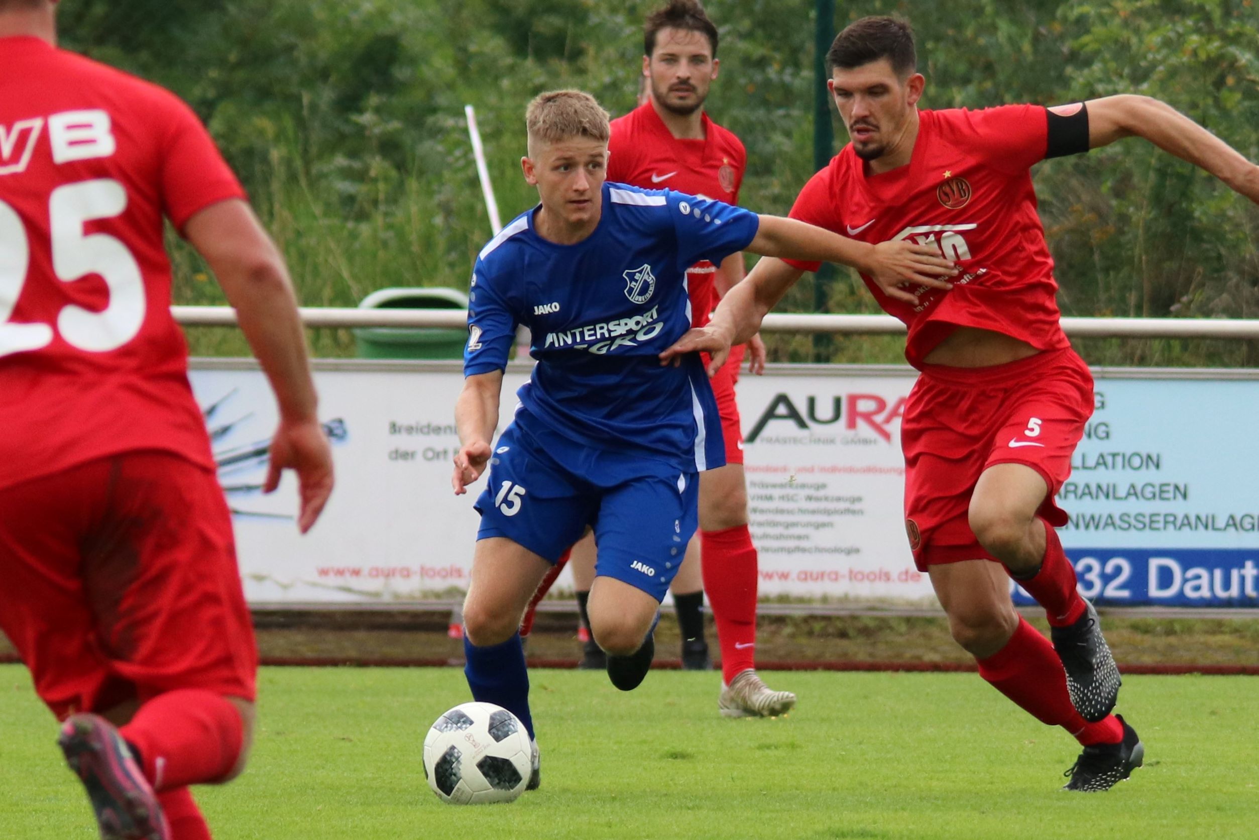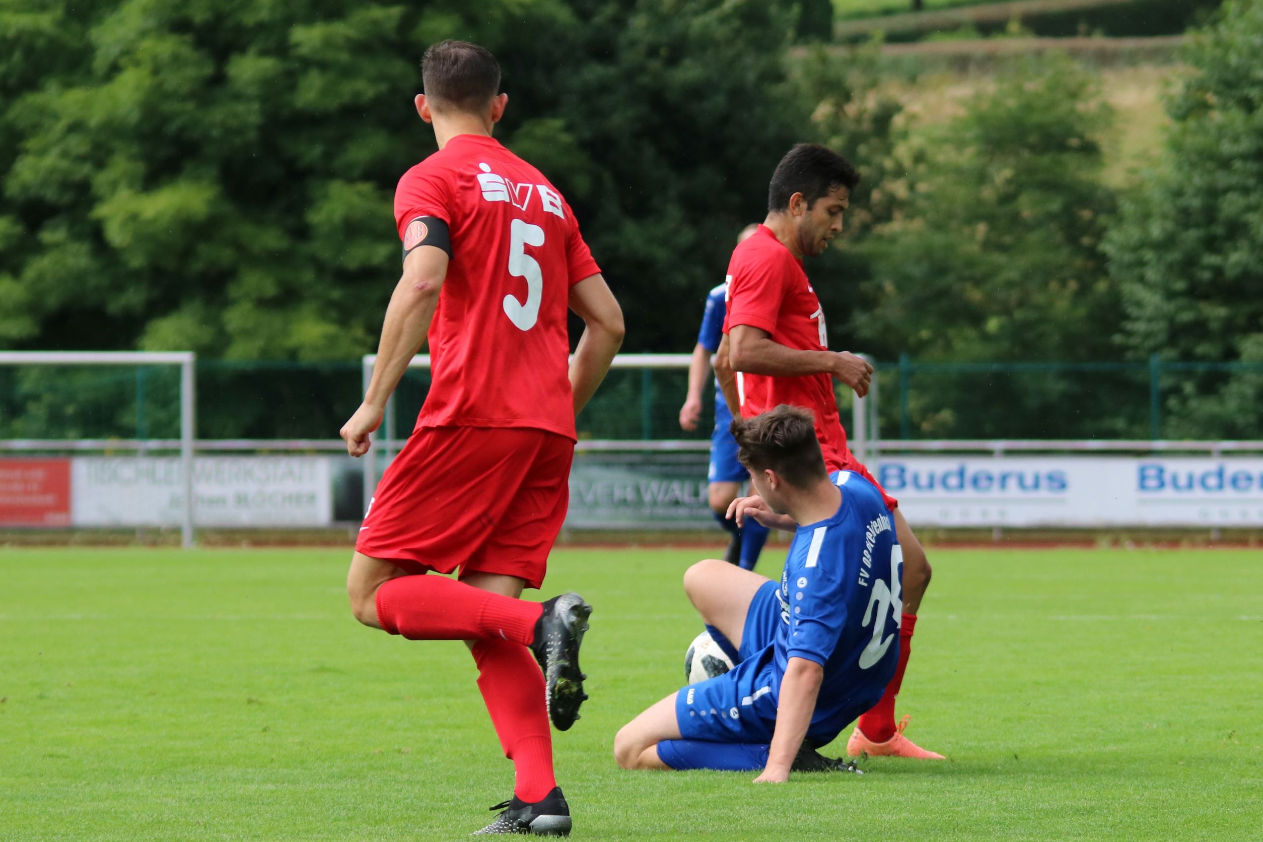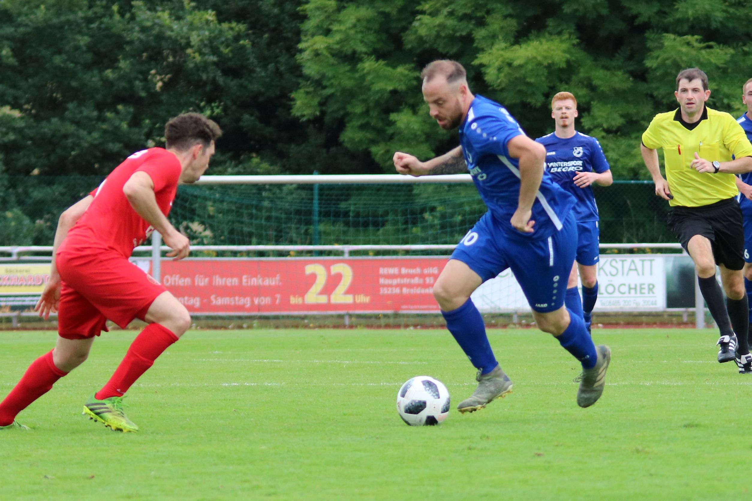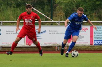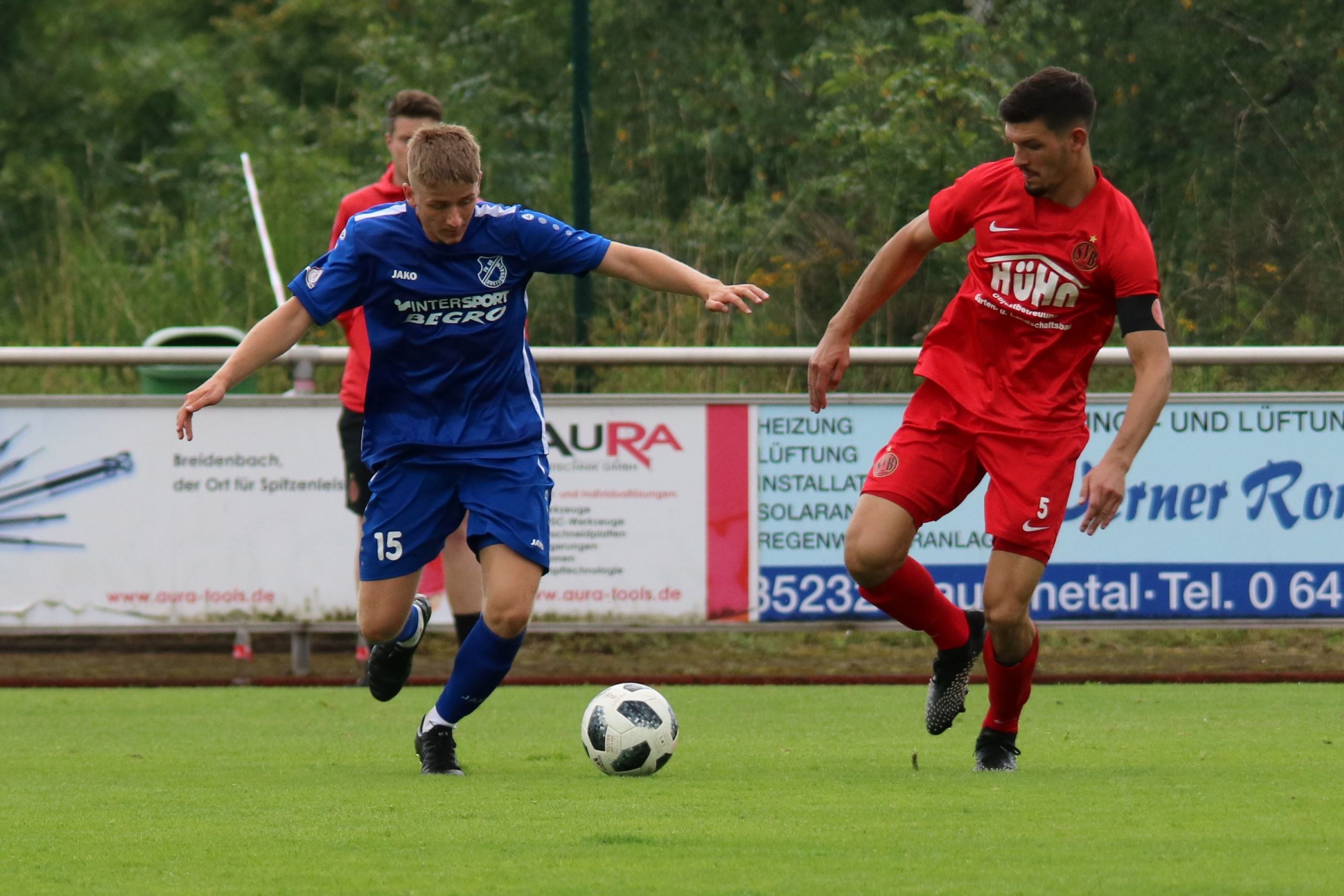 Unsere Elf hatte sich nach dem Schockmoment aus der letzten Woche mit der schweren Verletzung von Basti Wanke viel vorgenommen. Auf der Gegenseite stand mit dem SV Bauerbach ein Team, dass mit großen Vorschusslorbeeren ins Gunterstal gereist war und dem eine Reihe von Experten einen klaren Sieg im Gunterstal prophezeit hatten. Das es mal wieder ganz anders kam und der FV 09 am Ende als klarer Sieger vom Feld ging, war sicherlich einer guten Mannschaftsleistung geschuldet. Mit einer überzeugenden Leistung hatte Breidenbach über 90 Minuten die Nase vorn. Die Gäste aus Bauerbach mussten nach dem 1:0 für den Gastgeber in der 18. Minute durch Viktor Vielwock einen ersten Nackenschlag hinnehmen. Der heute als Vorbereiter überragende Aaron Künkel hatte mit einem mutigen Auftritt auf der rechten Seite seinen Gegenspieler hinter sich gelassen und seinem Sturmkollegen Vielwock im Sturmzentrum das Leder perfekt aufgelegt. Der vollstreckte eiskalt zum 1:0. Bis dahin war das Spiel ausgeglichen und beide Teams neutralisierten sich auf dem Feld. Nach dem FV-Führungstreffer verstärkte Bauerbach seine Bemühungen und erspielte sich ein optisches Übergewicht. Zwingend vor dem FV-Tor sollte es aber nicht wirklich werden, weil Breidenbach mit einer starken Mittelfeldzentrale und einem starken Abwehrverbund bis auf wenige Ausnahmen alles im Griff hatte. Nennenswert war sicherlich der Weitschusskracher von Bauerbachs Vinicius Henrique Silva Pinto, der sich in der 40. Minute auf die Oberkante der Latte senkte.