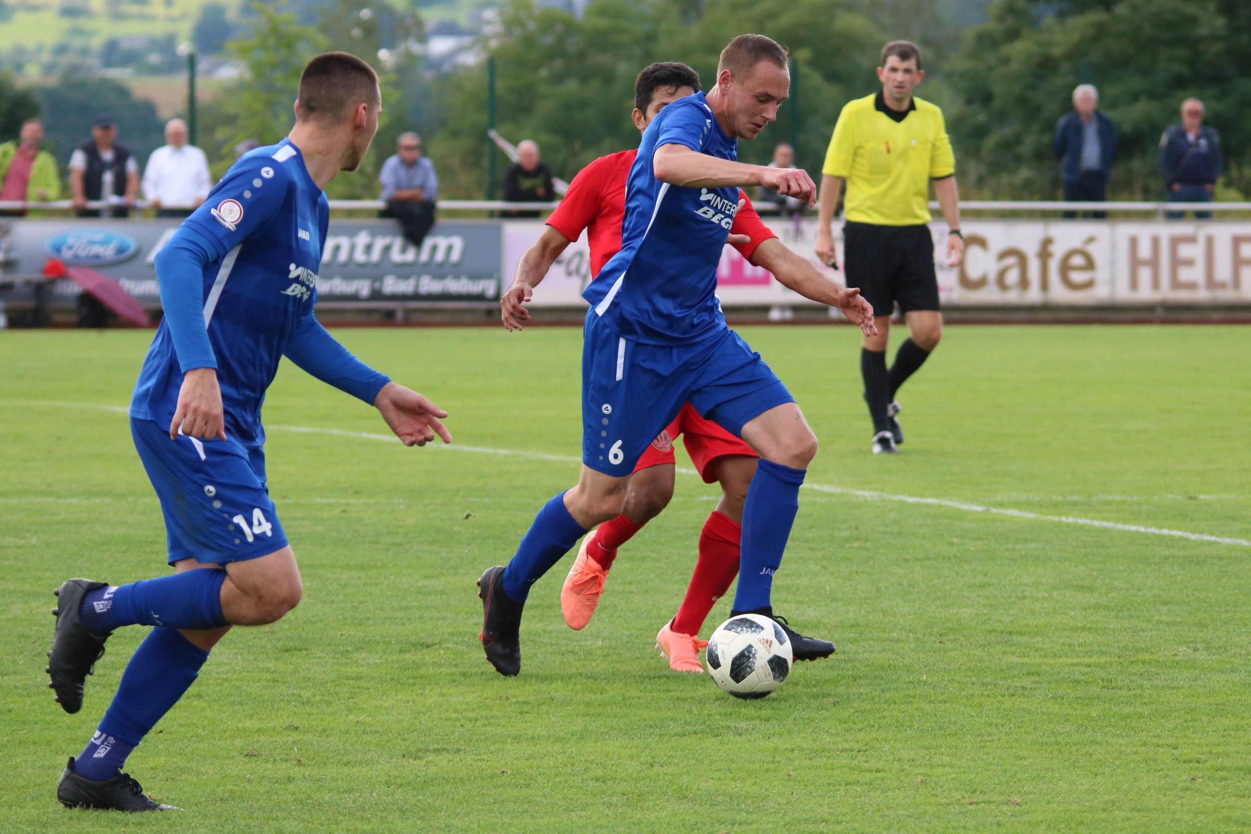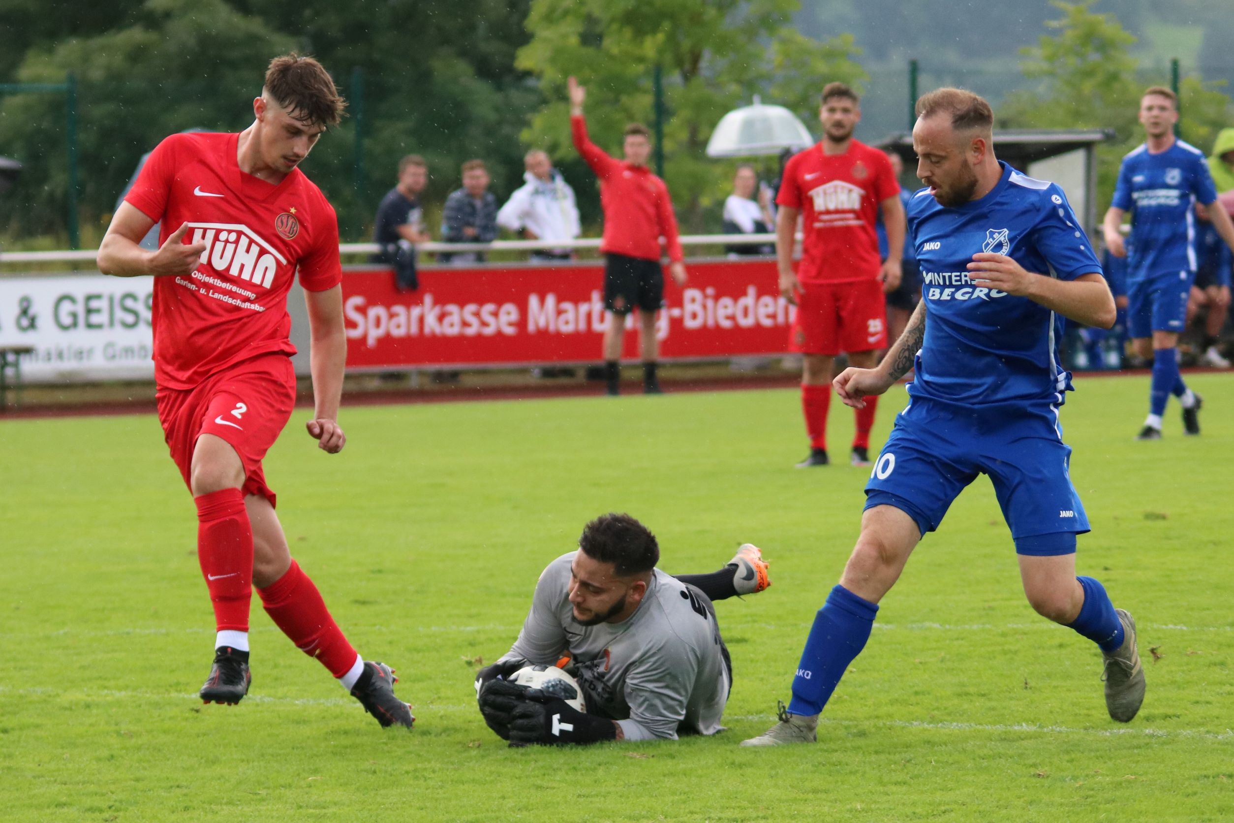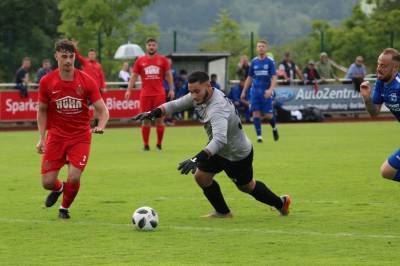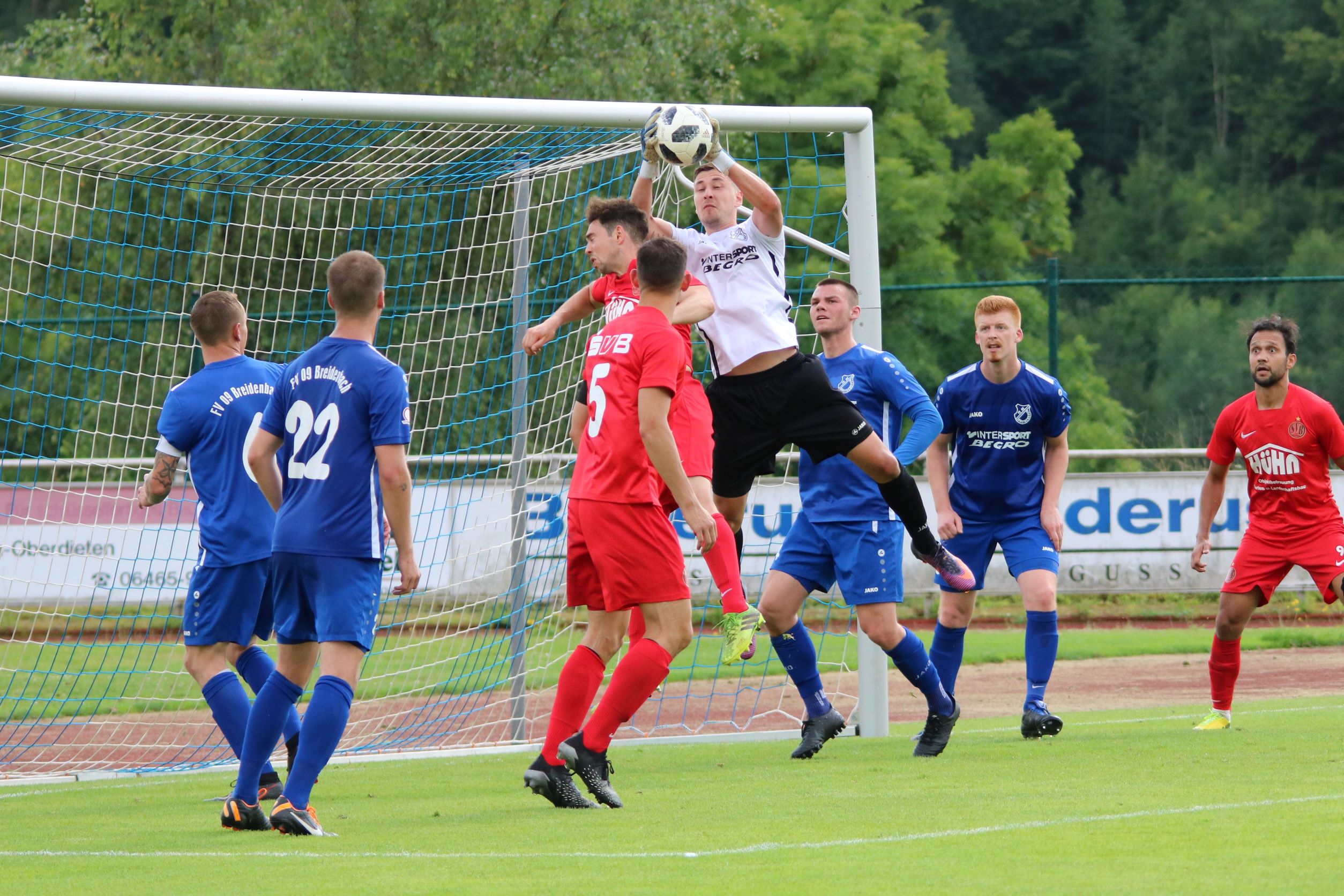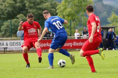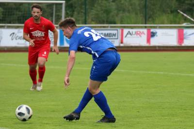 Unsere Elf hatte sich nach dem Schockmoment aus der letzten Woche mit der schweren Verletzung von Basti Wanke viel vorgenommen. Auf der Gegenseite stand mit dem SV Bauerbach ein Team, dass mit großen Vorschusslorbeeren ins Gunterstal gereist war und dem eine Reihe von Experten einen klaren Sieg im Gunterstal prophezeit hatten. Das es mal wieder ganz anders kam und der FV 09 am Ende als klarer Sieger vom Feld ging, war sicherlich einer guten Mannschaftsleistung geschuldet. Mit einer überzeugenden Leistung hatte Breidenbach über 90 Minuten die Nase vorn. Die Gäste aus Bauerbach mussten nach dem 1:0 für den Gastgeber in der 18. Minute durch Viktor Vielwock einen ersten Nackenschlag hinnehmen. Der heute als Vorbereiter überragende Aaron Künkel hatte mit einem mutigen Auftritt auf der rechten Seite seinen Gegenspieler hinter sich gelassen und seinem Sturmkollegen Vielwock im Sturmzentrum das Leder perfekt aufgelegt. Der vollstreckte eiskalt zum 1:0. Bis dahin war das Spiel ausgeglichen und beide Teams neutralisierten sich auf dem Feld. Nach dem FV-Führungstreffer verstärkte Bauerbach seine Bemühungen und erspielte sich ein optisches Übergewicht. Zwingend vor dem FV-Tor sollte es aber nicht wirklich werden, weil Breidenbach mit einer starken Mittelfeldzentrale und einem starken Abwehrverbund bis auf wenige Ausnahmen alles im Griff hatte. Nennenswert war sicherlich der Weitschusskracher von Bauerbachs Vinicius Henrique Silva Pinto, der sich in der 40. Minute auf die Oberkante der Latte senkte.