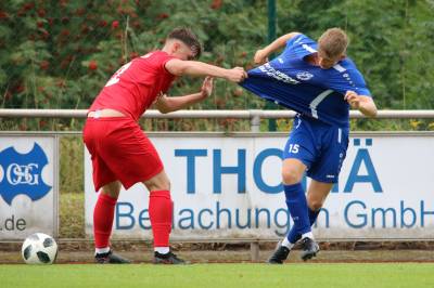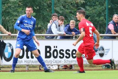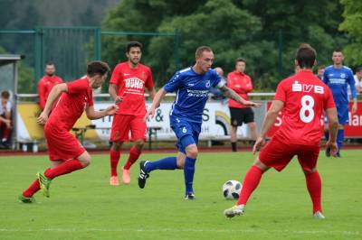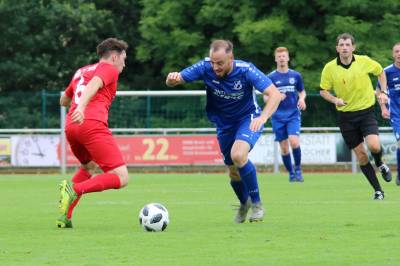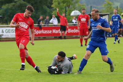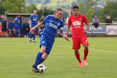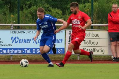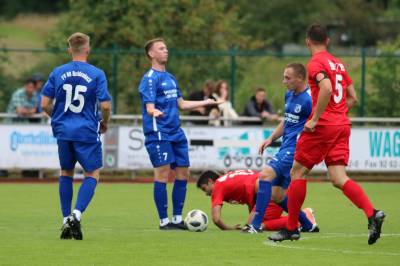 Halbzeit 2 sollte gerade mal 1 Minute alt sein, als der FV 09 über links mit einem beherzten Auftritt von Viktor Vielwock nach vorne stürmte. Der spielte sich zur Grundlinie durch und legte seinem Spielertrainer Johannes Burk das Leder passgenau in den Lauf. Der ließ sich nicht zweimal bitten und vollstreckte mit all seiner Routine zum 2:0. Bauerbach zeigte sich kurz beeindruckt und hätte in der 52. Minute bei einer Doppelchance für den FV 09 beinahe den 3. Treffer hinnehmen müssen. Zuerst war es wieder der kaum zu stoppende Viktor Vielwock, der im Solo seinen Gegenspieler und auch Bauerbachs Keeper Malakcioglu ausspielte und dessen Torschuß von einem Gästeakteur noch auf der Linie geblockt wurde. Den 2. Versuch sollte dann FV-Youngster Alexander Mamro bekommen, der mit seinem Schußversuch ebenfalls an einem Gästespieler auf der Linie scheiterte. Bauerbach fing sich danach wieder und schaffte es in der 60. Minute, den Anschlusstreffer durch Marcel Schott zu erzielen. Danach sollte der SVB in der 70. Minute die Riesenchance zum Ausgleich bekommen, als da Silva aus kurzer Distanz das Leder am Tor vorbei bugsierte. Der Wachrüttler kam für Breidenbach zur rechten Zeit und die Gastgeber berappelten sich wieder. Mit mutigem Spiel nach vorne und großem Einsatz sollte sich der Aufwand dann auch noch bezahlt machen. Wieder mal Aaron Künkel war der Vorbereiter zum vorentscheidenden 3:1 für den FV 09 in der 79. Minute, den der kurz zuvor eingewechselte Lucas Ortmüller per Kopf erzielte. Und kaum war der Minutenzeiger 1 Umdrehung weiter, da sollte es schon wieder klingeln im SV-Kasten. Lucas Ortmüller hatte auf der linken Seite mit engagiertem Spiel nach vorne die Bauerbacher rechte Teamseite stehen lassen und per Flachschuß ins lange Ecke den 4:1 - Endstand hergestellt.