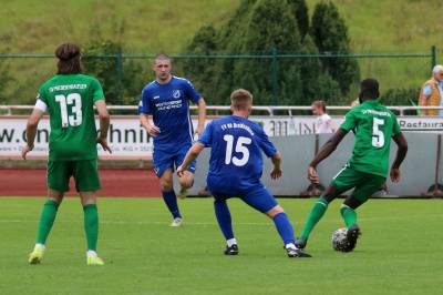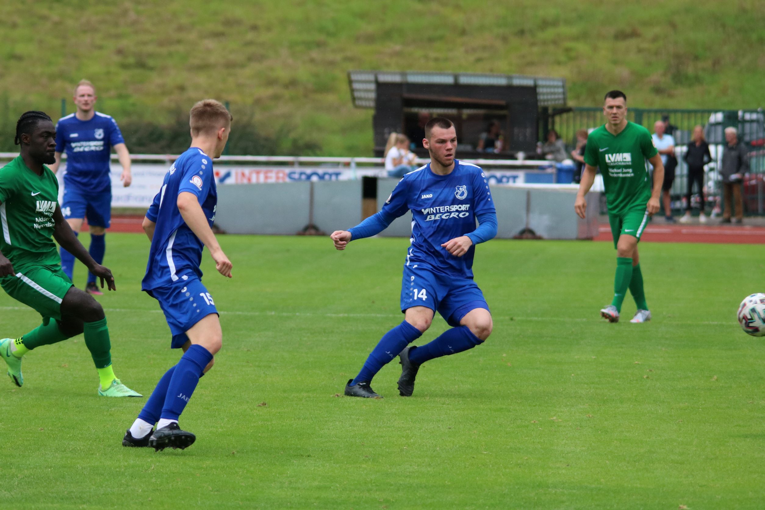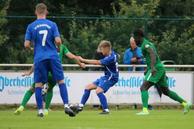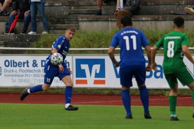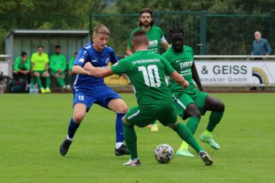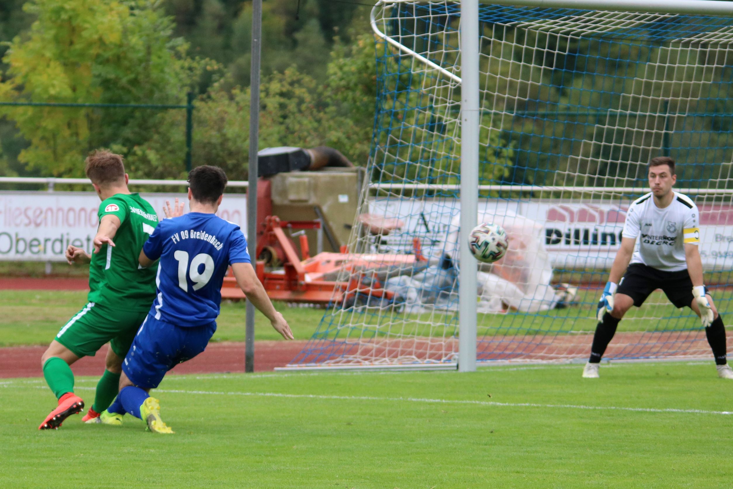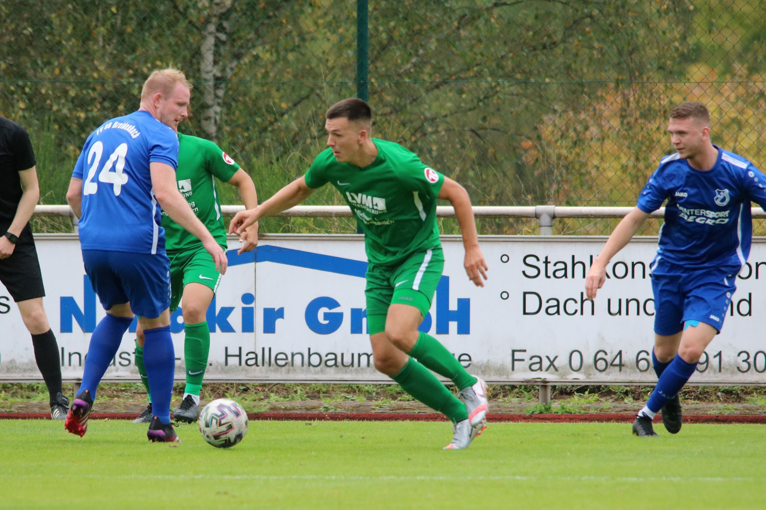 Breidenbach zeigte sich trotz der personellen Engpässe trotzdem mutig und mit einer guten Einstellung auf dem Feld. Das die letzten Bälle im Anspiel ins Zentrum des Gästestrafraums nicht sauber gespielt wurden, spiegelte sich dann auch in der Anzahl der Chancen für die Gastgeber wieder. Da war zu wenig dabei, was wirklich gefährlich war. Auf der Gegenseite spielten die Gästen mit dem brandgefährlichen Ivan Rebic ihre Schnelligkeit aus und nutzten dabei mit immer wieder gefährlichen Pässen in die Schnittstelle der FV-Abwehr ihre Qualitäten. So kam es bereits in der 3. Minute zum 0:1 durch Rebic, der seinem Gegenspieler enteilte und mit einem Schuss ins lange Toreck die Gästeführung erzielte. Breidenbach versuchte in der Folgezeit, mehr Zugriff auf die Partie zu bekommen. Die Gäste waren es jedoch, die sich ein Chancenplus erspielten und mehrfach alleine vor dem FV-Tor aussichtsreich ihre Chancen vertändelten oder unkonzentriert verballerten. Breidenbach kam so gut wie nicht zum Zug und es dauerte bis zur 31. Minute, bis Alexander Mamro die Vorlage von Felix Baum nutzte und aus ca. 20 Metern abzog. Sein Ball ging knapp am Gästetor vorbei. Weitere Abschlüsse von Felix Baum (36.) und Alexander Mamro (45.) fanden ebenfalls nicht ins Ziel, sodass die Gäste mit einer 1:0-Führung Halbzeit 1 für sich entscheiden konnte.