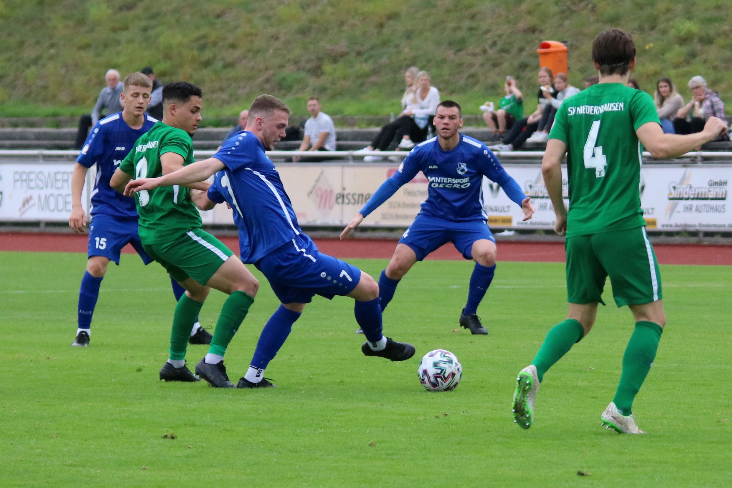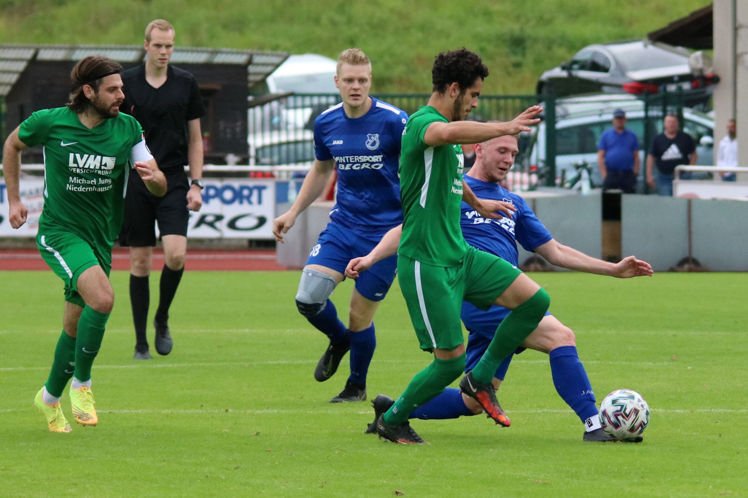 Nach dem Seitenwechsel hatte sich die FV-Elf viel vorgenommen und bereits im ersten Angriff wurde Felix Baum knapp vor der Strafraumgrenze gefoult. Den Freistoß setzte der Gefoulte dann aber knapp am Tor vorbei. Breidenbach schaffte es jedoch auch in der Folgezeit nicht wirklich, weitere echte Torgefahr im Strafraum der Gäste zu erzeugen. Die vielbeinige Gästeabwehr störte kompromisslos und setzte immer wieder im schnellen Konterspiel die eigenen Stürmer so in Szene, dass es in der FV-Abwehr mehrfach lichterloh brannte. Tobi Ochs hielt seine Elf immer wieder im Spiel. Ähnlich wie in Halbzeit 1 waren auf FV-Seite nur Weitschussversuche zu verzeichnen. Hier zeigte sich Alex Mamro immer wieder sehr präsent, scheiterte aber mit seinen Abschlüssen. Hoffnung sollte Breidenbach erhalten, als Gästeakteur Richard Ofosu in der 63. Minute als bereits gelb verwarnter Spieler Felix Baum im Sprintduell 20 Meter vor dem eigenen Tor von den Beinen holte und sich dafür mit dem Gelb-Roten Karton vom Spiel verabschieden musste. Als in der 85. Minute Breidenbach endlich mal im Strafraum zum Abschluss kam und Gästetorwart Tim Burghold den Schuss vom Lucas Ortmüller parierte, war Marcel Beinborn zur Stelle und staubte zum vermeindlichen 1:1 ab. Doch der Linienrichter hatte seine Fahne gehoben und so blieb es beim 0:1. Als Breidenbach dann in den letzten 10 Minuten nochmals alles nach vorne warf, nutzte Niedernhausen einen der vielen Konter zum entscheidenden 0:2 durch Anes Muric (89.). Unser Team hatte am heutigen Tag alles rausgehauen, was möglich war und muss sich bedingt durch die aktuelle Personalsituation zwar kurz schütteln, kann aber durchaus positiv nach vorne schauen. Bereits nächste Woche werden wieder neue Gesichter im FV-Kader zu sehen sein und dann sollten auch mit den Alternativen die Möglichkeiten gegeben sein, im Derby beim VfB Marburg zu bestehen.