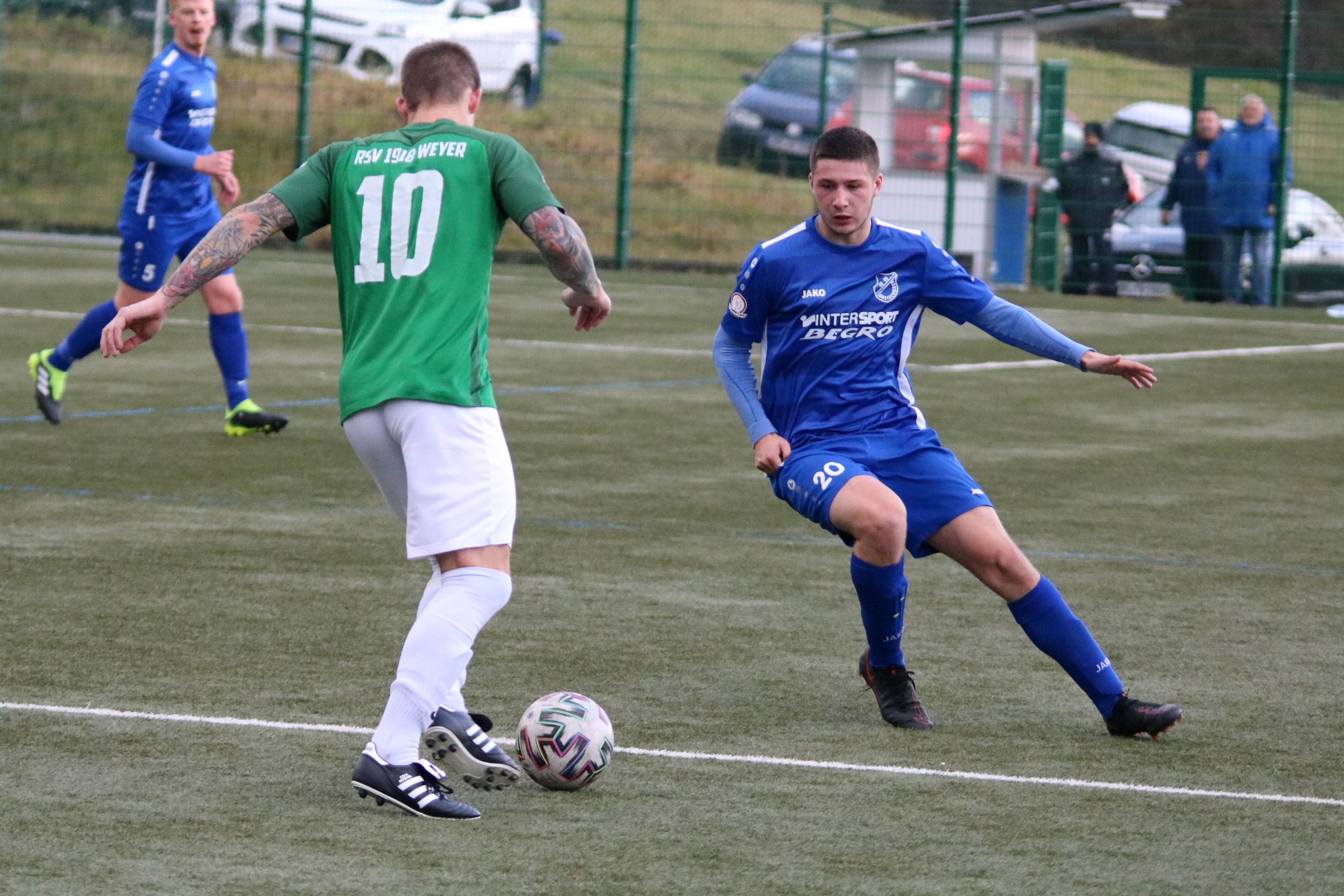 Nach dem Seitenwechsel zeigte sich Breidenbach von Beginn an hellwach und so war es nicht verwunderlich, dass mit einem Klasseangriff in der 48. Minute der für den verletzt ausgewechselten Felix Baum ins Spiel gekommenen Lucas Ortmüller seinen Torjägerinstinkt einbringen konnte. Johannes Burk hatte die Vorlage von Alexander Mamro auf der linken Angriffsseite aufgenommen und mit seinem Flachpass auf den langen Torpfosten Lucas Ortmüller ins Spiel gebracht. Der netzte ein und wurde zu Recht für seinen Treffer zum 3:0 gefeiert. In der Folgezeit kontrollierte Breidenbach das Spiel und Weyer hatte zu keiner Zeit eine wirkliche Chance, um mit einer Ergebnisverbesserungen nochmal Spannung in die Partie zu bringen. Auf der Gegenseite hätte Aaron Künkel seine gute Leistung beinahe noch mit einem Treffer krönen können, doch sein Linksschuss aus 20 Metern ging nach zuvor feinem Solo durch die RSV-Abwehr knapp über den Querbalken des RSV-Tores.