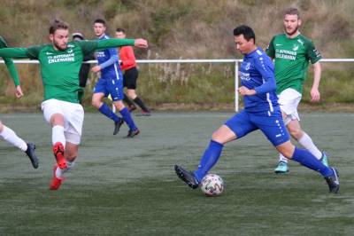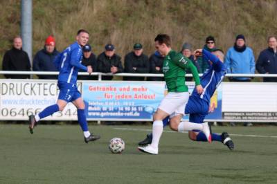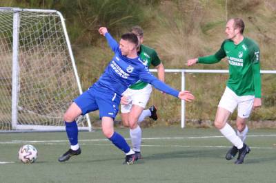 Es war ein kalter Nachmittag im Breidenbacher Gunterstal und trotzdem zeigte sich die FV-Elf von Beginn an mit dem nötigen Feuer und der Hitze auf dem Feld, um die Gäste vom RSV Weyer praktisch über 90 Minuten in Schach zu halten und am Ende einen hochverdienten 3:0-Sieg herauszuschießen. Sicherlich muss man den Gästen das Fehlen von 9 Spielern aus dem Kader der 1. Mannschaft anrechnen und das in der heutigen Startelf auch 4 Akteure aufliefen, die eigentlich das Trikot der 2. Mannschaft beim RSV tragen, erklärt den heutigen Leistungsunterschied, der sich nach 90 Minuten auch im Ergebnis wiederspiegelte. Das soll aber auch nicht die gute und engagierte Leistung unserer Elf schmälern, die von Beginn an das Kommando auf dem Feld in Händen hatte. Vorne wirbelten mit Aaron Künkel und Viktor Vielwock zwei Youngster auf den Flügeln und im Mittelfeldzentrum konnten sich Johannes Burk und Lukas Müller an einem Alexander Mamro erfreuen, der dauerhaft in Aktion war und mit einem Klassespiel wesentlich zum heutigen Sieg beitragen konnte. Und das die immer wieder mal nicht so ganz sattelfeste FV-Defensive heute nichts zuließ und zu jeder Sekunde alles im Griff hatte, spricht für die gute Leistung der FV-Defensivakteure.