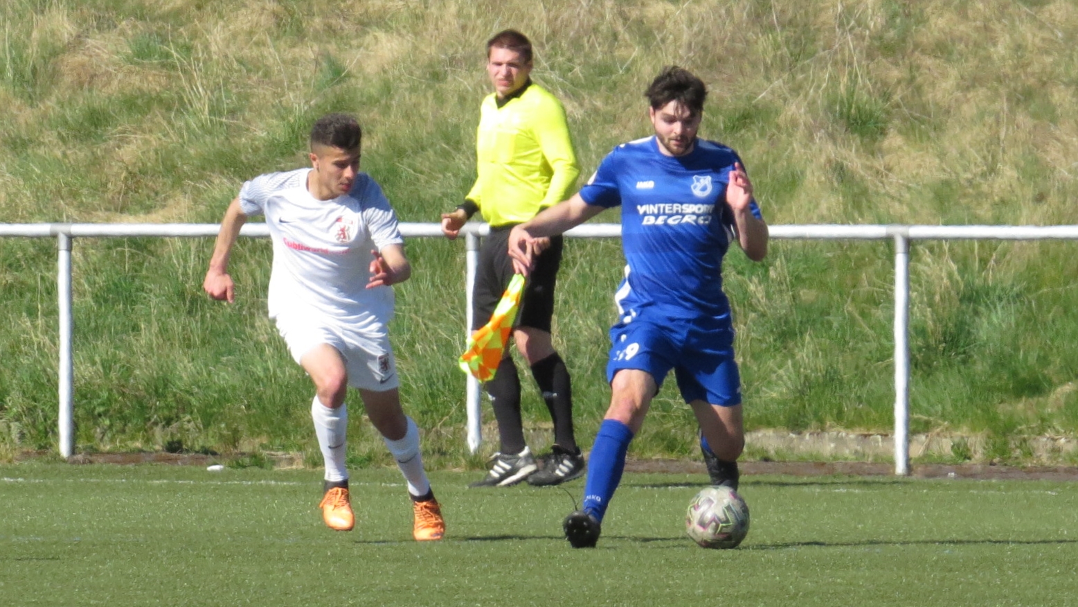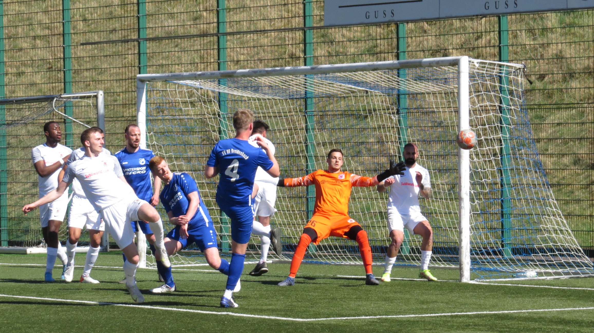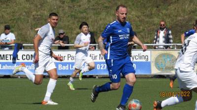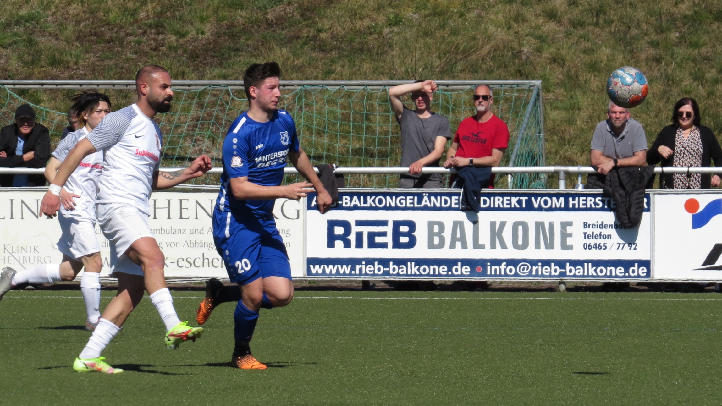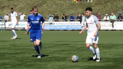 (FS/18.04.2022) Herrlicher Sonnenschein und perfekte Bedingungen im Breidenbacher Gunterstal sowie eine Heimelf, die die Niederlage am Gründonnerstag beim Spitzenreiter TSV Steinbach II aufgearbeitet hatte und die am heutigen Ostermontag gegen die Regionalligareserve des FC Gießen die eigenen Fans mit einem Dreier beschenken wollte. So gings auch los und Breidenbach bestimmte von der ersten Minute an das Tempo und die Aktionen auf dem Feld. Obwohl sich FV-Spielertrainer Johannes Burk zunächst einen Platz auf der Bank verordnet hatte und mit Nils Cakar einen seiner jungen Spieler in die Startelf schickte, sollte dies keine nennenswerten Unterschiede auf dem Feld ausmachen. Das lag vor allem am guten und engagierten Auftritt von Nils Cakar sowie auch dem Rest der FV-Elf. Gießen zeigte sich durchaus als aktive Verbandsligaelf, die immer wieder mit guten Einzelaktionen ihr Können aufblitzen ließ. Das Breidenbach in der Mittelfeldzentrale mit Kapitän Lukas Müller und den beiden Youngstern Alex Mamro und Moritz Filipzik die Kontrolle über das Spiel hatten, sollte sich bereits nach 8 Minuten zeigen, als Felix Baum das Leder mit links im kurzen Eck des Gästetores versenkte. Zuvor wurde er nach einer klasse Kombination durch Nils Cakar und Moritz Filipzik wunderbar freigespielt, sodass mit dem 1:0 der Weg für den Heimsieg geebnet war. Mit zunehmender Spieldauer erspielte sich Breidenbach eine Vielzahl von Torgelegenheiten, schaffte es aber nicht, sich ergebnistechnisch entscheidend vom FC Gießen abzusetzen. Felix Baum (16. + 23.) und Marius Kamm (25.) ließen beste Gelegenheiten zur Ergebniserhöhung aus. Die sollte dann in der 26. Minute kommen, als Tobis Ochs mit einem weiten Befreiungsschlag die gesamte Gießener Hintermannschaft aushebelte und Felix Baum alleine auf und davon zog. Sein Lupfer über Gästetorwart Vladan Grbovic landete im Gästenetz und so ging es mit einer beruhigenden Führung in das Schlussdrittel der 1. Halbzeit. Gießen gab sich zu keiner Zeit auf und spielte auch in der Folgezeit mutig nach vorne. Pech hatte der FCG dann in der 32. Minute, als Matheus de Moura Beal´s Torabschluss nur am Pfosten landete. Wenig später musste Tobias Ochs dann nochmal gegen Gießens David Osei eingreifen, um seiner Elf die Null zu halten. Breidenbach antwortete vor der Pause noch in Form von Felix Baums super Lupfer aus halblinker Position nach feinem Zuspiel von Lukas Müller. Baums Torabschluss wurde von Gießens Mehmet Pektas in letzter Sekunde noch vor der Torlinie zur Ecke geklärt. Gerade mal 1 Minute später hatte dann nochmal Cord Beumer seine Chance zum Torabschluss. Sein Freistoß aus halbrechter Position ging aufs kurze Toreck und wurde von Gießens bestem Spieler Vladan Grbovic entschärft.
