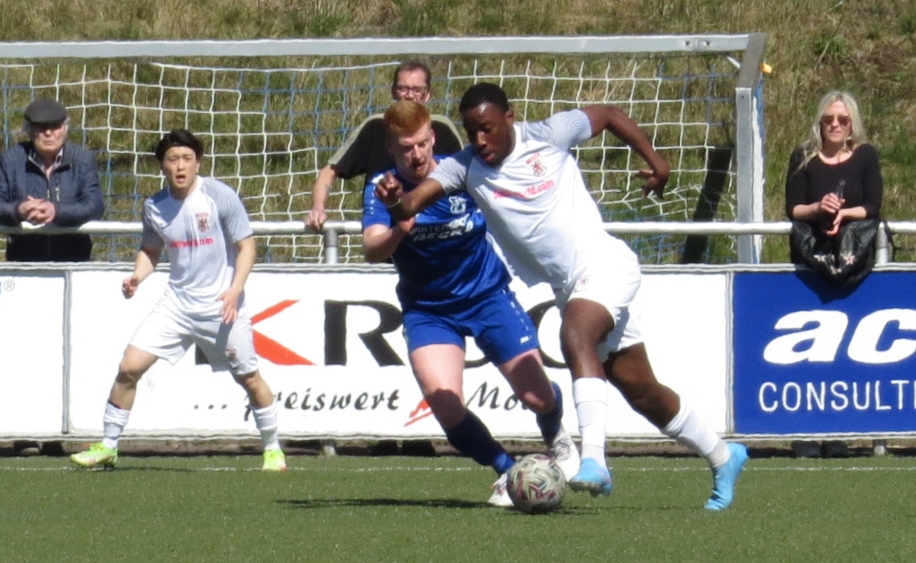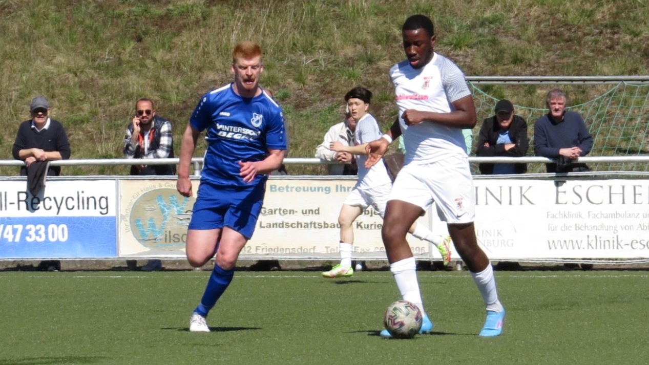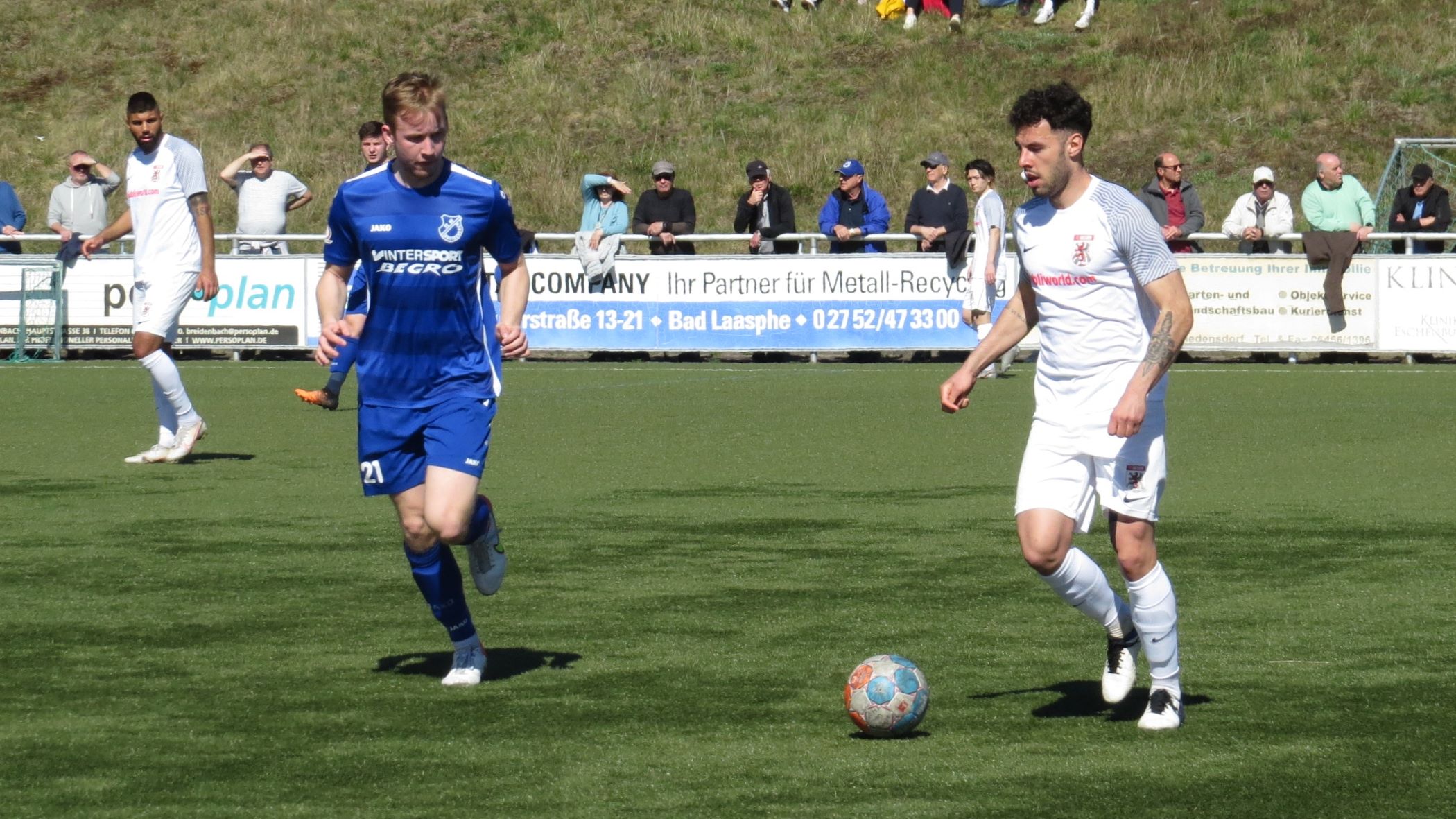 (FS/18.04.2022) Herrlicher Sonnenschein und perfekte Bedingungen im Breidenbacher Gunterstal sowie eine Heimelf, die die Niederlage am Gründonnerstag beim Spitzenreiter TSV Steinbach II aufgearbeitet hatte und die am heutigen Ostermontag gegen die Regionalligareserve des FC Gießen die eigenen Fans mit einem Dreier beschenken wollte. So gings auch los und Breidenbach bestimmte von der ersten Minute an das Tempo und die Aktionen auf dem Feld. Obwohl sich FV-Spielertrainer Johannes Burk zunächst einen Platz auf der Bank verordnet hatte und mit Nils Cakar einen seiner jungen Spieler in die Startelf schickte, sollte dies keine nennenswerten Unterschiede auf dem Feld ausmachen. Das lag vor allem am guten und engagierten Auftritt von Nils Cakar sowie auch dem Rest der FV-Elf. Gießen zeigte sich durchaus als aktive Verbandsligaelf, die immer wieder mit guten Einzelaktionen ihr Können aufblitzen ließ. Das Breidenbach in der Mittelfeldzentrale mit Kapitän Lukas Müller und den beiden Youngstern Alex Mamro und Moritz Filipzik die Kontrolle über das Spiel hatten, sollte sich bereits nach 8 Minuten zeigen, als Felix Baum das Leder mit links im kurzen Eck des Gästetores versenkte. Zuvor wurde er nach einer klasse Kombination durch Nils Cakar und Moritz Filipzik wunderbar freigespielt, sodass mit dem 1:0 der Weg für den Heimsieg geebnet war. Mit zunehmender Spieldauer erspielte sich Breidenbach eine Vielzahl von Torgelegenheiten, schaffte es aber nicht, sich ergebnistechnisch entscheidend vom FC Gießen abzusetzen. Felix Baum (16. + 23.) und Marius Kamm (25.) ließen beste Gelegenheiten zur Ergebniserhöhung aus. Die sollte dann in der 26. Minute kommen, als Tobis Ochs mit einem weiten Befreiungsschlag die gesamte Gießener Hintermannschaft aushebelte und Felix Baum alleine auf und davon zog. Sein Lupfer über Gästetorwart Vladan Grbovic landete im Gästenetz und so ging es mit einer beruhigenden Führung in das Schlussdrittel der 1. Halbzeit. Gießen gab sich zu keiner Zeit auf und spielte auch in der Folgezeit mutig nach vorne. Pech hatte der FCG dann in der 32. Minute, als Matheus de Moura Beal´s Torabschluss nur am Pfosten landete. Wenig später musste Tobias Ochs dann nochmal gegen Gießens David Osei eingreifen, um seiner Elf die Null zu halten. Breidenbach antwortete vor der Pause noch in Form von Felix Baums super Lupfer aus halblinker Position nach feinem Zuspiel von Lukas Müller. Baums Torabschluss wurde von Gießens Mehmet Pektas in letzter Sekunde noch vor der Torlinie zur Ecke geklärt. Gerade mal 1 Minute später hatte dann nochmal Cord Beumer seine Chance zum Torabschluss. Sein Freistoß aus halbrechter Position ging aufs kurze Toreck und wurde von Gießens bestem Spieler Vladan Grbovic entschärft.