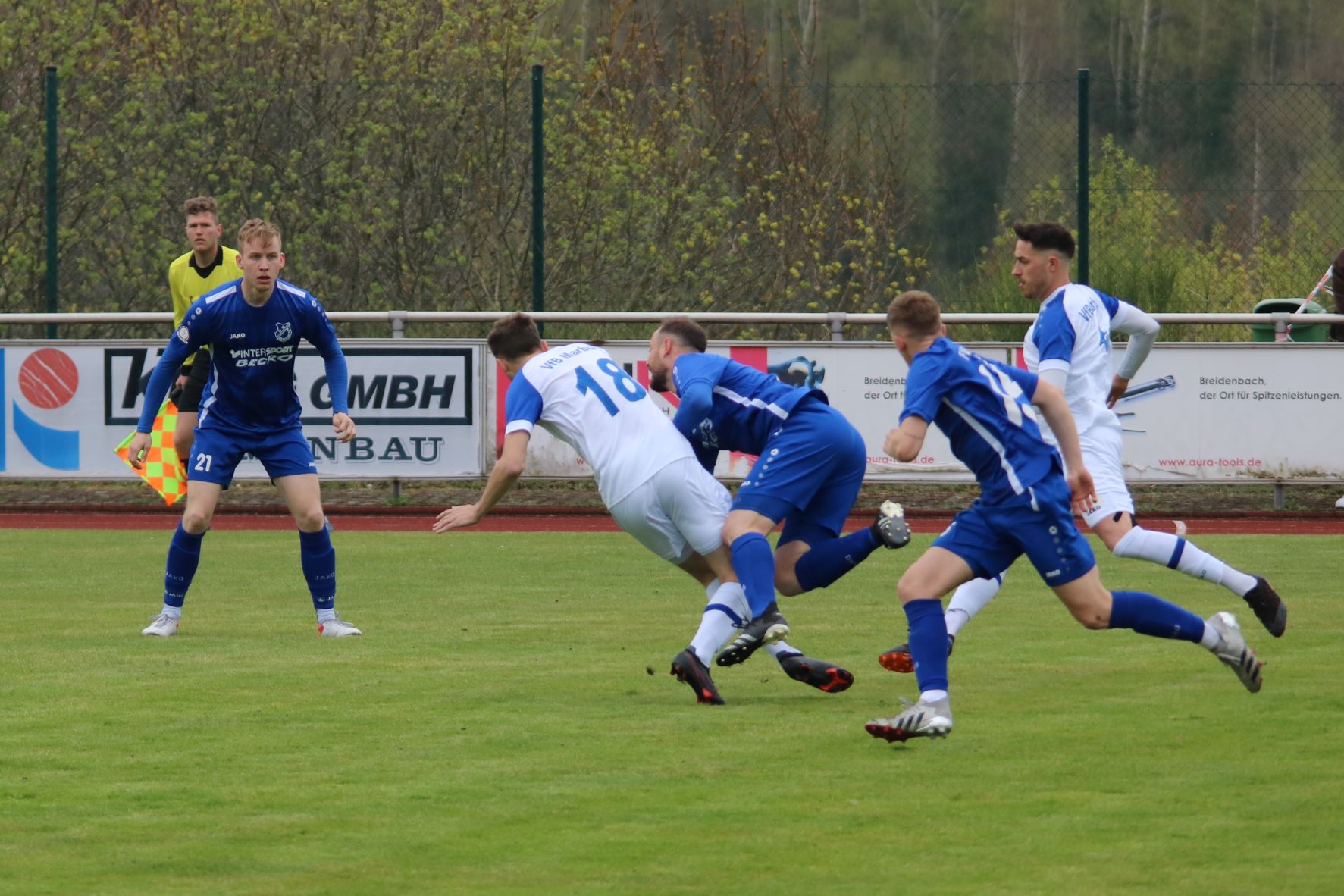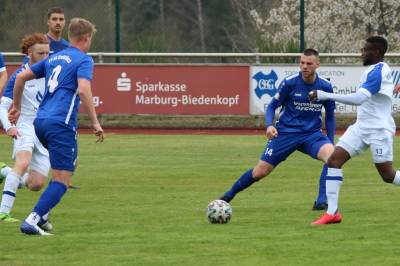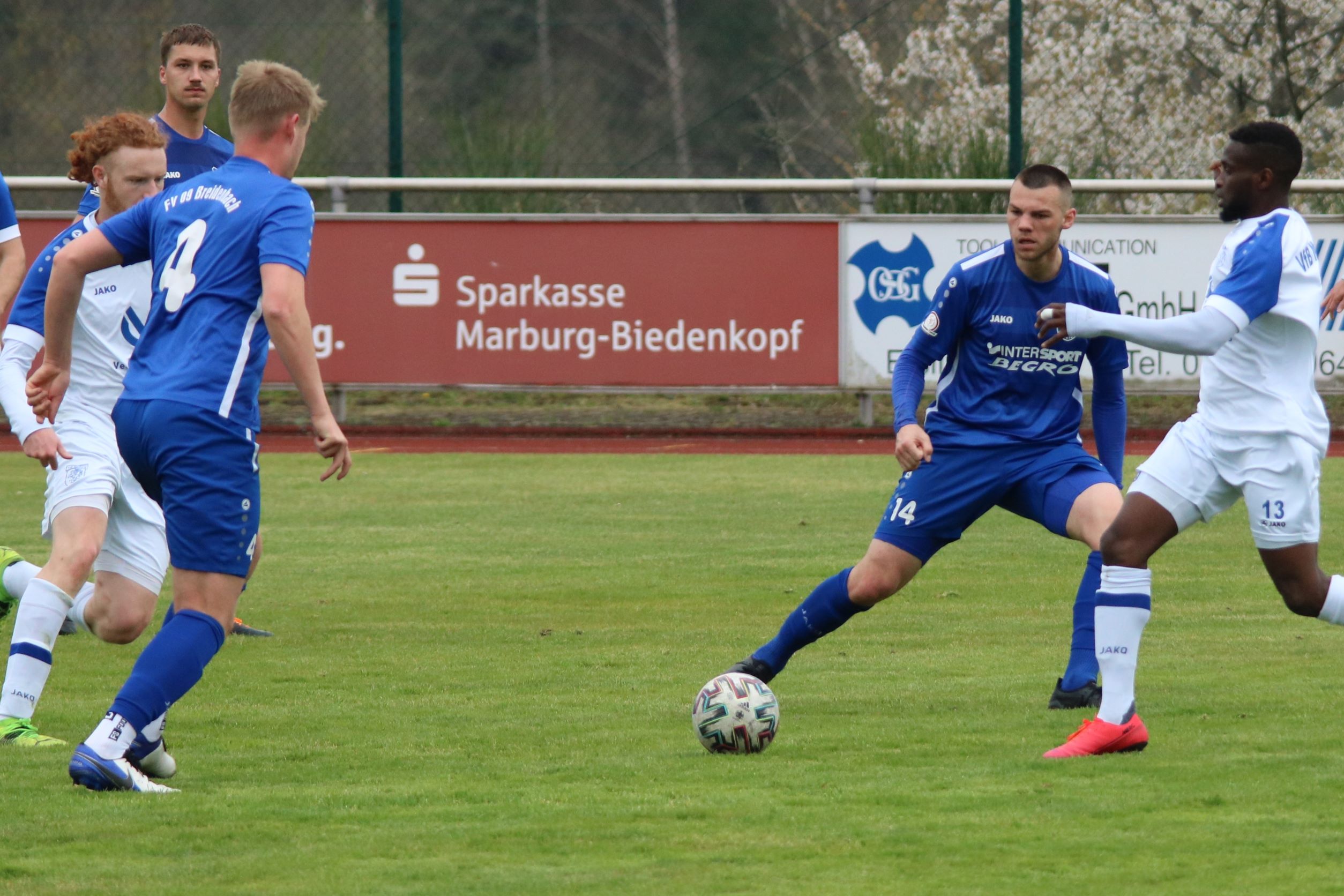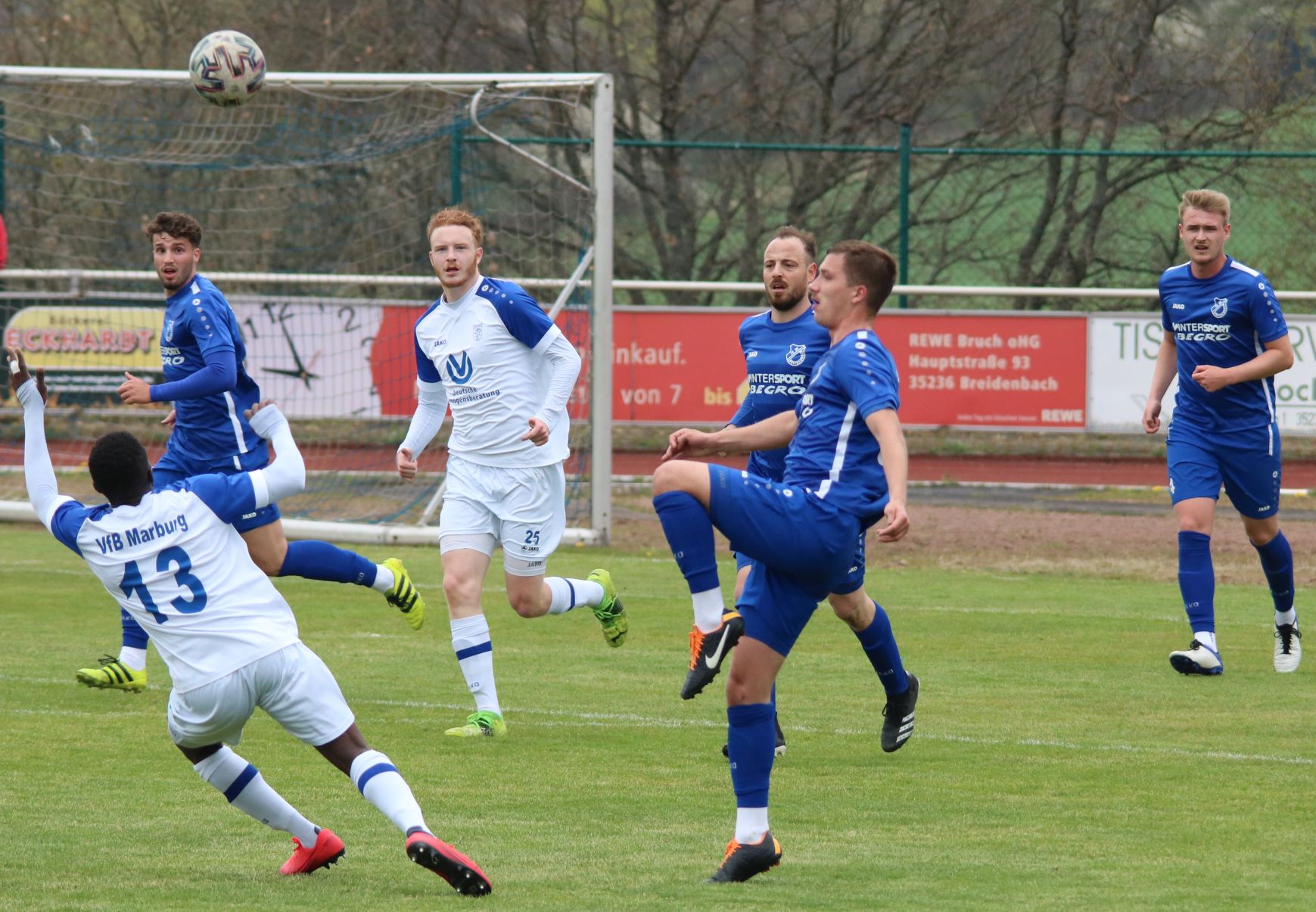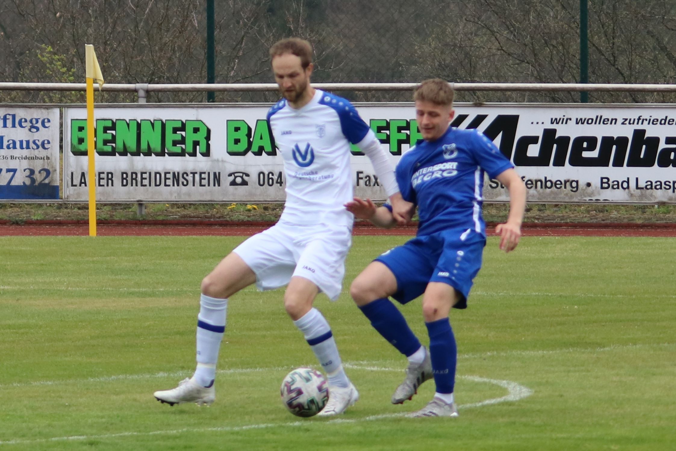 (FS/23.04.2022) Es war am Ende des Tages ein verdienter Gästesieg, den sich der VfB Marburg im Breidenbacher Gunterstal abgeholt hatte. Grund dafür war sicherlich nicht eine überragende eigene Leistung auf dem Feld, sondern in großen Teilen eine am heutigen Nachmittag zu keiner Zeit am Limit spielende Heimelf des FV 09, die es einfach nicht schaffte, ihr Leistungsvermögen komplett abzurufen. Man kann dem FV-Team zu keiner Zeit den Willen, die Bereitschaft und das Engagement absprechen, aber alle Fußballer kennen das Szenario, dass es Spiele gibt, wo einfach nichts geht und man noch gefühlte Stunden spielen könnte, um ein Tor zu erzielen. In einer dann insgesamt auch sehr durchwachsenen Verbandsligapartie zeigte Marburg von Beginn an die etwas sicheren Ballstafetten und erspielte sich ein leichtes Übergewicht auf dem Feld. Als dann noch Breidenbachs Abwehrorganisator Yannick Weber nach 23 Minuten verletzt vom Feld musste, sollte sich dies nicht gerade positiv für den Abwehrblock der Heimelf auswirken. Es dauerte dann bis zur 39. Minute, um die erste nennenswerte Torchance auf dem Feld zu sehen. VfB-Sturmtank Andreas Schoch hatte sich am langen Torpfosten abgesetzt und die Rechtsflanke per Kopf aufs Tor gesetzt. FV-Keeper Tobias Ochs war zu Stelle und hielt klasse. Als der VfB in der 41. Minute locker durchs Mittelfeld kombinierte und Philipp Stein an der Strafraumgrenze frei zum Abschluss kam, hätte Ochs wohl keine Abwehrchance gehabt. Der Schuss der Rotschopfs ging knapp am linken Pfosten vorbei und so blieb es beim 0:0.