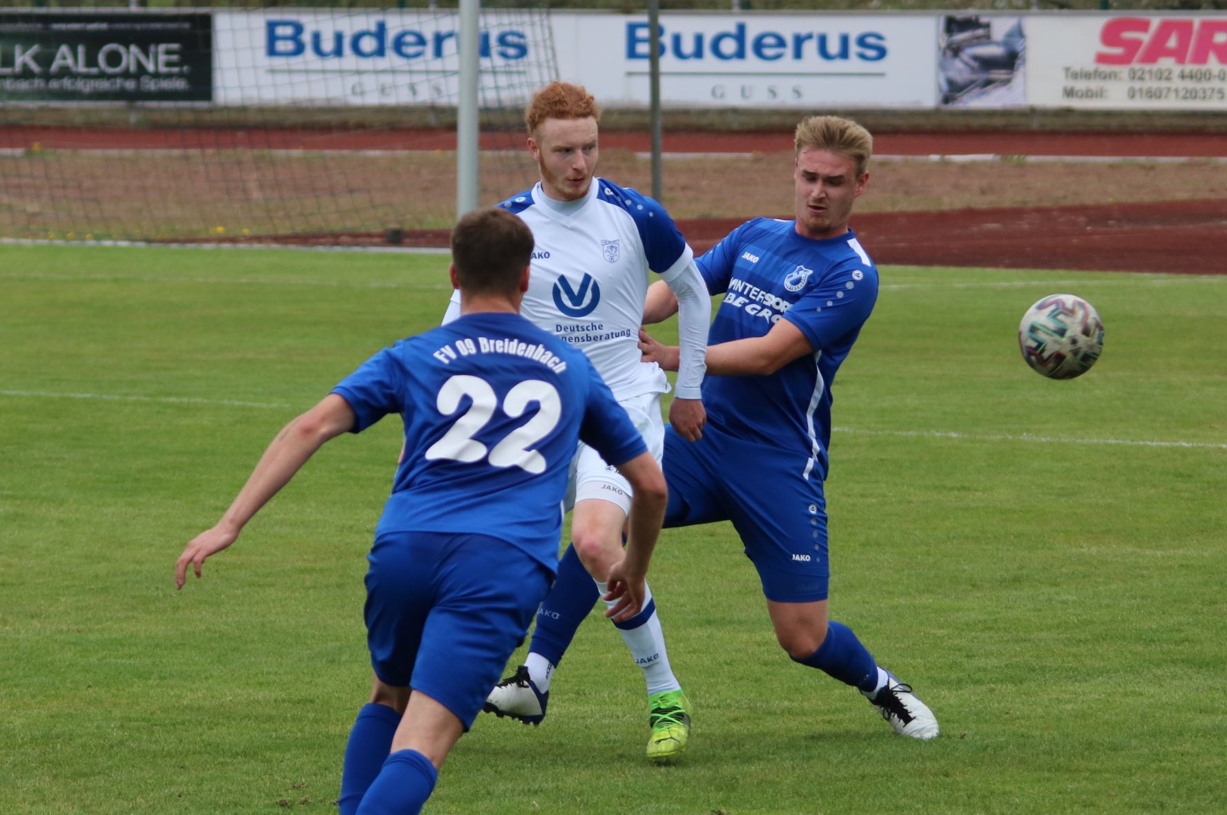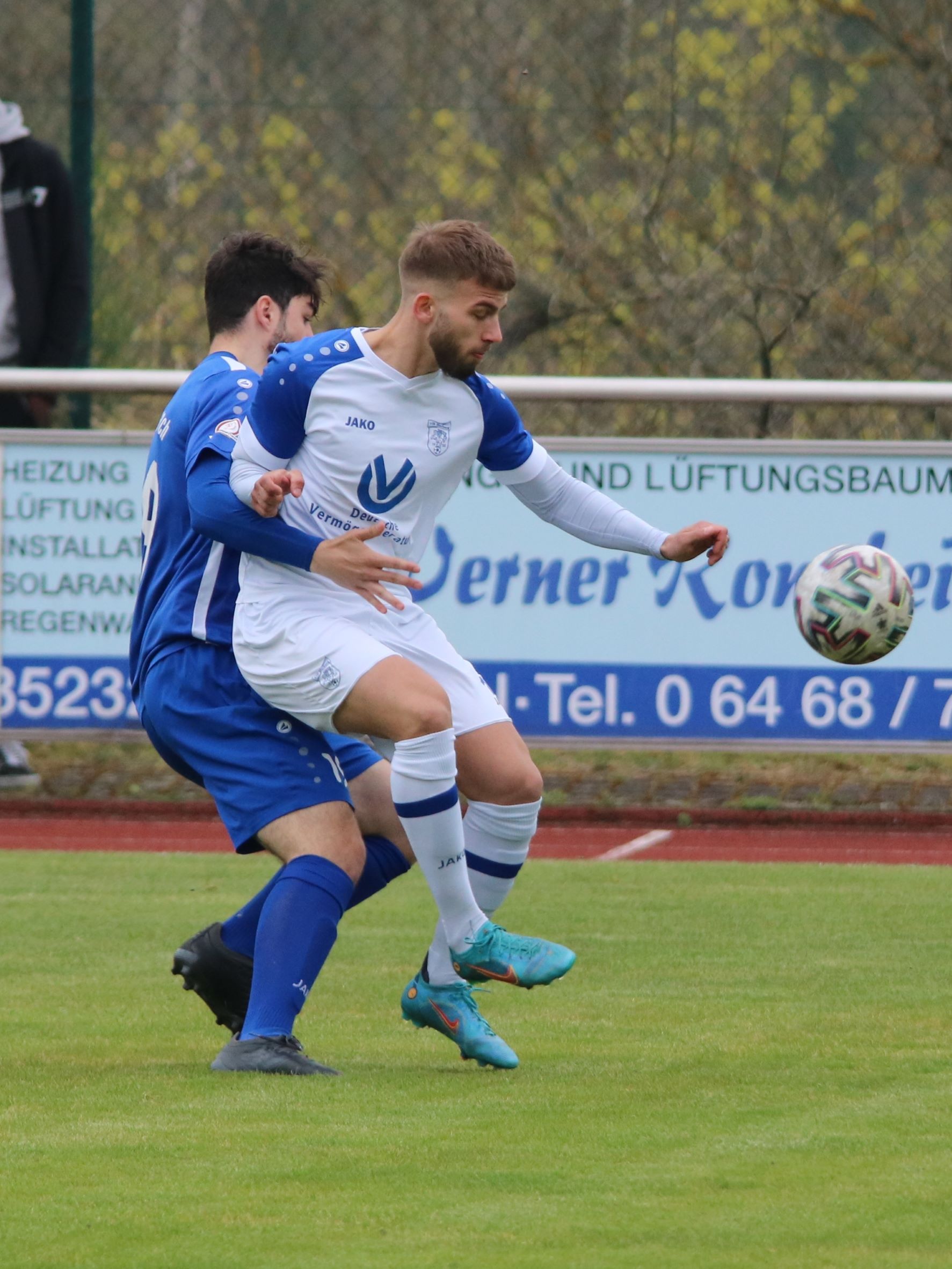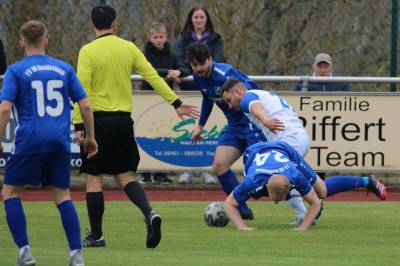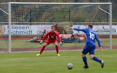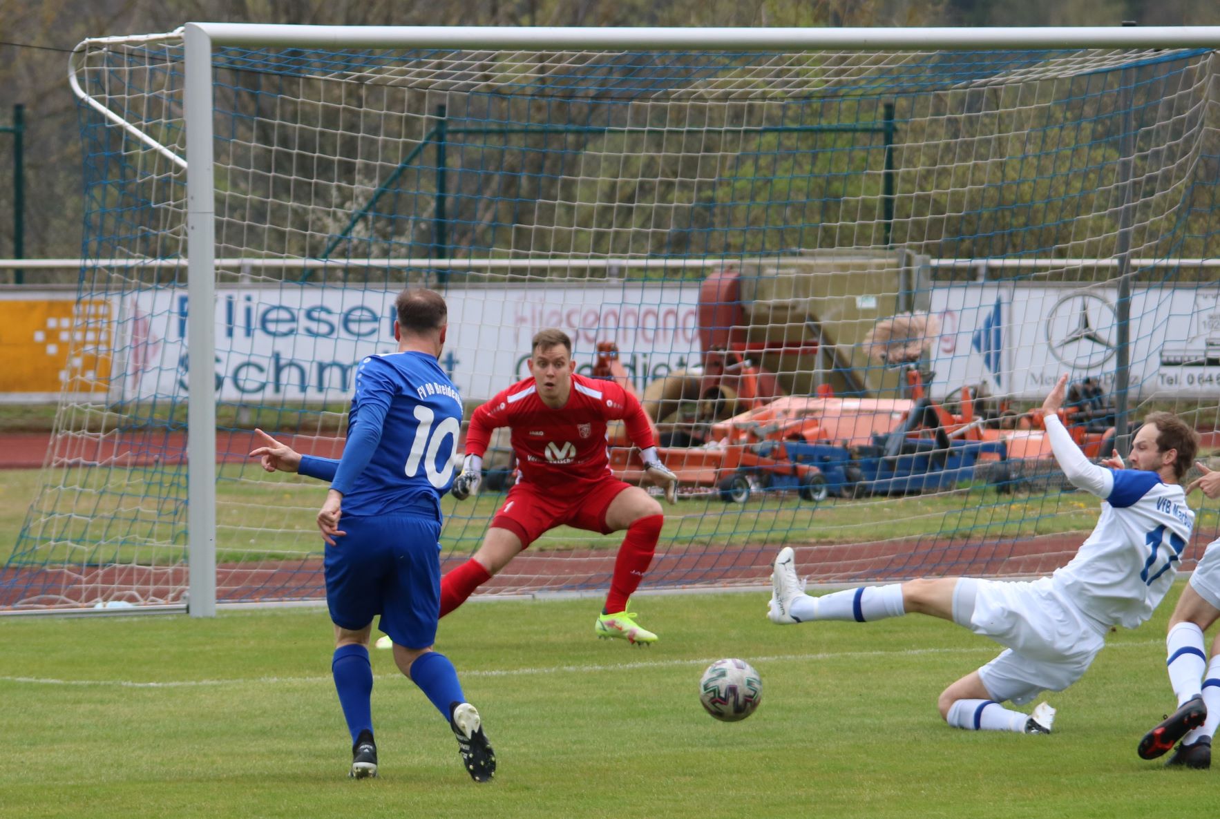 (FS/23.04.2022) Es war am Ende des Tages ein verdienter Gästesieg, den sich der VfB Marburg im Breidenbacher Gunterstal abgeholt hatte. Grund dafür war sicherlich nicht eine überragende eigene Leistung auf dem Feld, sondern in großen Teilen eine am heutigen Nachmittag zu keiner Zeit am Limit spielende Heimelf des FV 09, die es einfach nicht schaffte, ihr Leistungsvermögen komplett abzurufen. Man kann dem FV-Team zu keiner Zeit den Willen, die Bereitschaft und das Engagement absprechen, aber alle Fußballer kennen das Szenario, dass es Spiele gibt, wo einfach nichts geht und man noch gefühlte Stunden spielen könnte, um ein Tor zu erzielen. In einer dann insgesamt auch sehr durchwachsenen Verbandsligapartie zeigte Marburg von Beginn an die etwas sicheren Ballstafetten und erspielte sich ein leichtes Übergewicht auf dem Feld. Als dann noch Breidenbachs Abwehrorganisator Yannick Weber nach 23 Minuten verletzt vom Feld musste, sollte sich dies nicht gerade positiv für den Abwehrblock der Heimelf auswirken. Es dauerte dann bis zur 39. Minute, um die erste nennenswerte Torchance auf dem Feld zu sehen. VfB-Sturmtank Andreas Schoch hatte sich am langen Torpfosten abgesetzt und die Rechtsflanke per Kopf aufs Tor gesetzt. FV-Keeper Tobias Ochs war zu Stelle und hielt klasse. Als der VfB in der 41. Minute locker durchs Mittelfeld kombinierte und Philipp Stein an der Strafraumgrenze frei zum Abschluss kam, hätte Ochs wohl keine Abwehrchance gehabt. Der Schuss der Rotschopfs ging knapp am linken Pfosten vorbei und so blieb es beim 0:0.