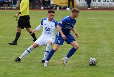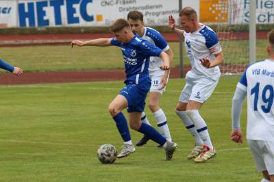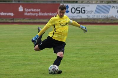 Hoffnung hatten die Zuschauer dann auf Halbzeit 2 und bereits der erste Angriff mit dem Weitschuss von Johannes Burk aus guten 20 Metern ließ weitere Offensivaktionen erwarten. Das die Partie in der Folgezeit an Qualität gewinnen würde, war jedoch nur ein frommer Wunsch. Beide Teams spielten mit einer Reihe von Ungenauigkeiten im Aufbauspiel wenig effektiv. Breidenbachs sonst so starke Offensive war bei Marburgs Hintermannschaft komplett abgemeldet und schaffte es in den gesamten 90 Minuten praktisch nicht, Gästekeeper Lorenz Purps mal so richtig in Bedrängnis zu bringen. Als dann in der 58. Minute der Ex-FV´ler Niko Novakov im Überzahlspiel seiner Elf die Gelegenheit eiskalt nutzte und sein Team mit 1:0 in Führung brachte, ahnten die Breidenbacher Zuschauer ob der bis zu diesem Zeitpunkt gezeigten FV-Leistung nichts Gutes. Marburg sicherte seine Führung und profitierte von einer Reihe von Fehlern im FV-Spiel. Bezeichnend hierzu die 71. Spielminute, als Andreas Schoch den Fehler in der FV-Abwehr zu seinen Gunsten nutzen konnte. Mit viel zu viel Spielraum nahm der VfB-Torjäger aus 20 Metern Maß und zimmerte das Leder ins Tordreieck des FV-Tores. Tobias Ochs konnte einem Leid tun im FV-Kasten, denn er hielt alles, was zu halten war und war chancenlos bei beiden Marburger Treffern. Breidenbach gab auch nach der klaren VfB-Führung nicht auf und versuchte in der Offensive mehr Druck aufzubauen. Klare Chancen kamen dabei nicht heraus. Filipziks Weitschuss (67.) und Alexander Mamros Torabschluss (73.) gingen deutlich am Tor vorbei. Nils Cakar´s Sololauf (83.) wurde im letzten Moment noch gestoppt und auch die feine Rechtsflanke von Moritz Schmalz in der 89. Minute fand zwar in Felix Baum den richtigen Abnehmer, jedoch hatte dieser keinen guten Abschlusstag und so ging sein Torschuss weit über den Kasten der Gäste. Trotzdem sollte der FV 09 nochmals jubeln dürfen, als Schiedsrichter Oleg Karaliov in der 90. Minute auf den Elfmeterpunkt deutete. Moritz Filipzik war von rechts in den Strafraum eingedrungen und von seinem Gegenspieler regelwidrig von den Beinen geholt worden. Der fälligen Strafstoß verwandelte Marius Kamm sicher zum 1:2-Anschlusstor. 1 Minute später hatte Breidenbach dann noch eine Abschlusschance, jedoch ging Alexander Mamros Schuss am VfB-Tor vorbei.