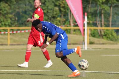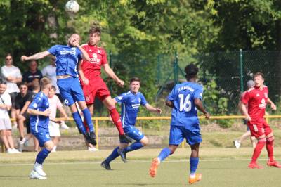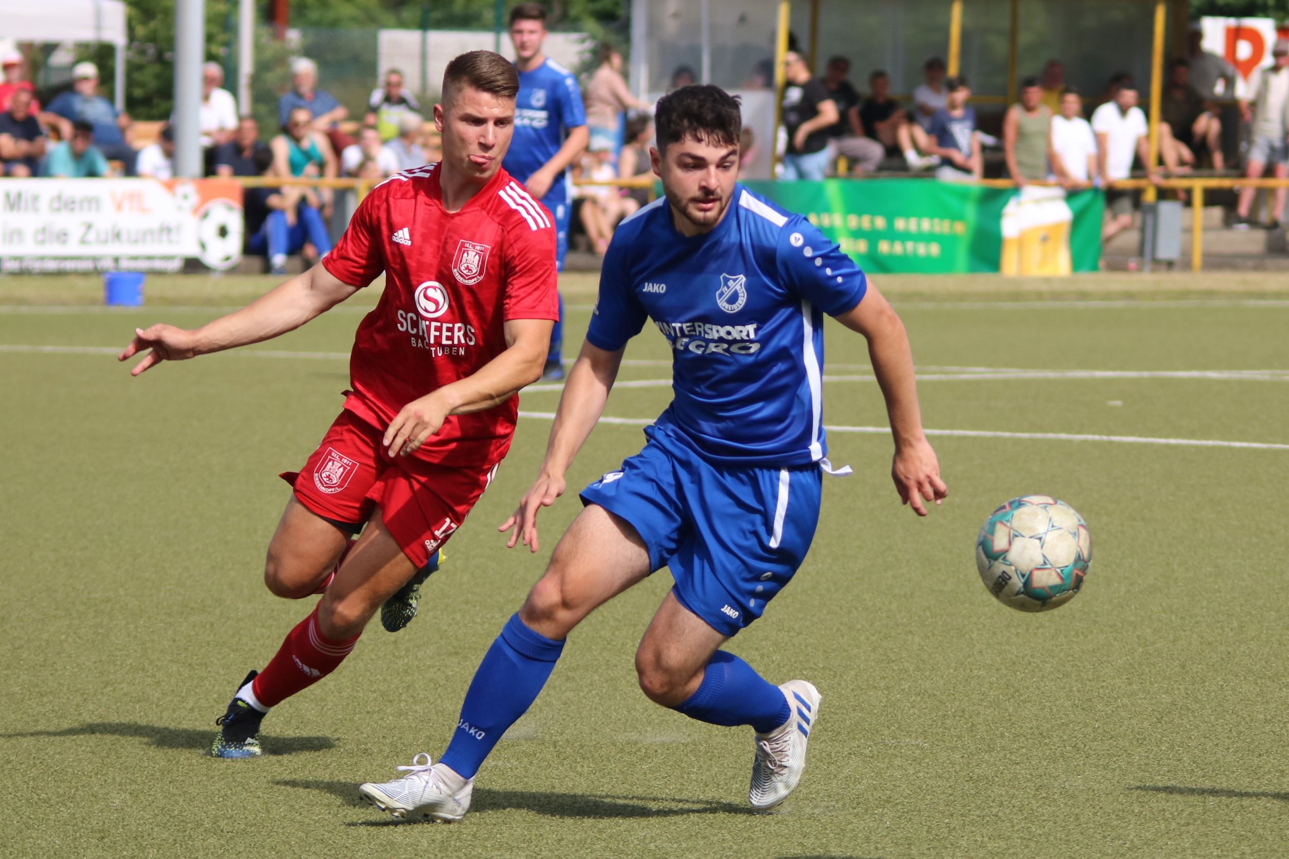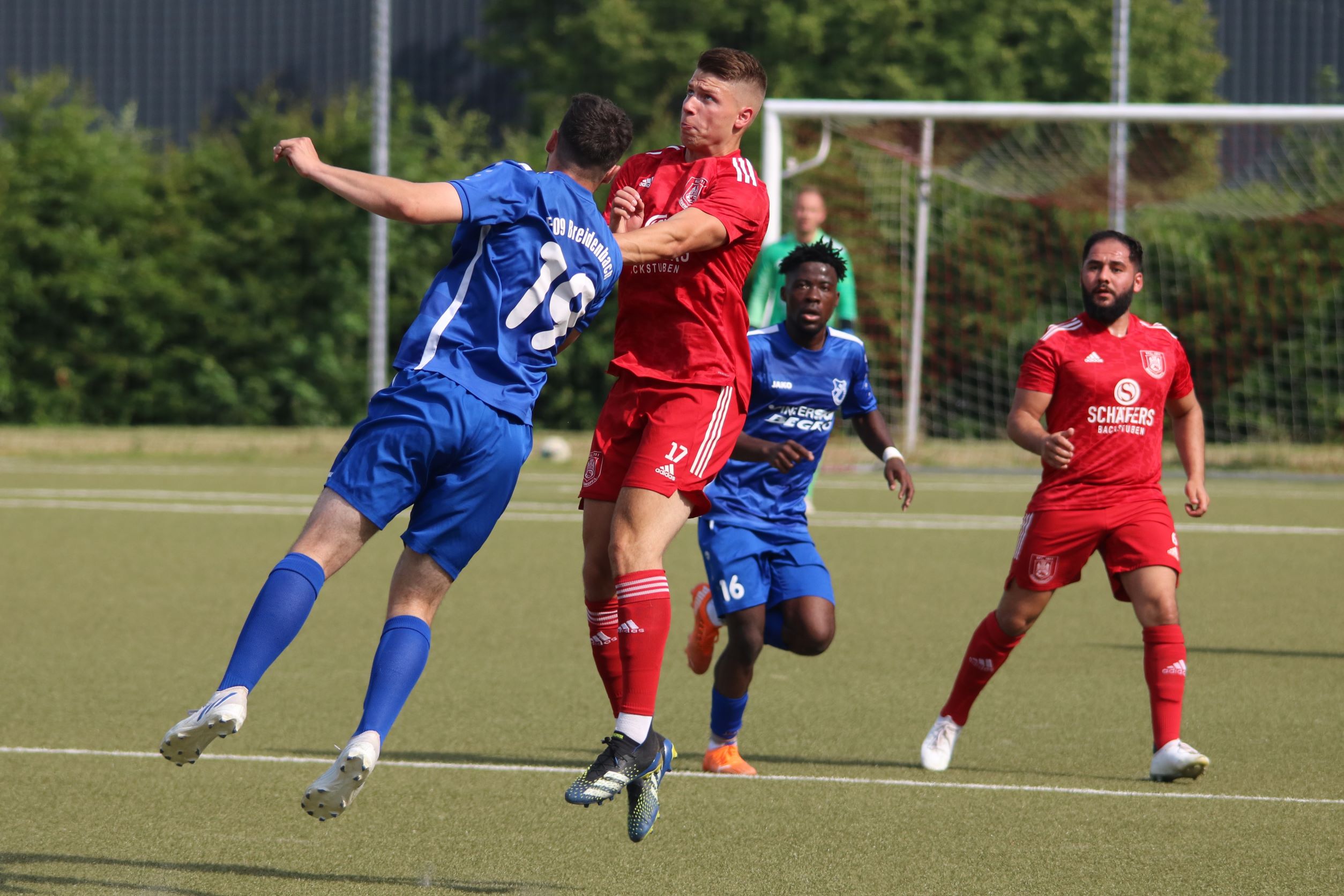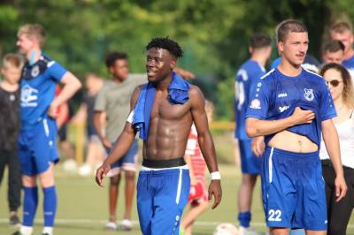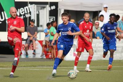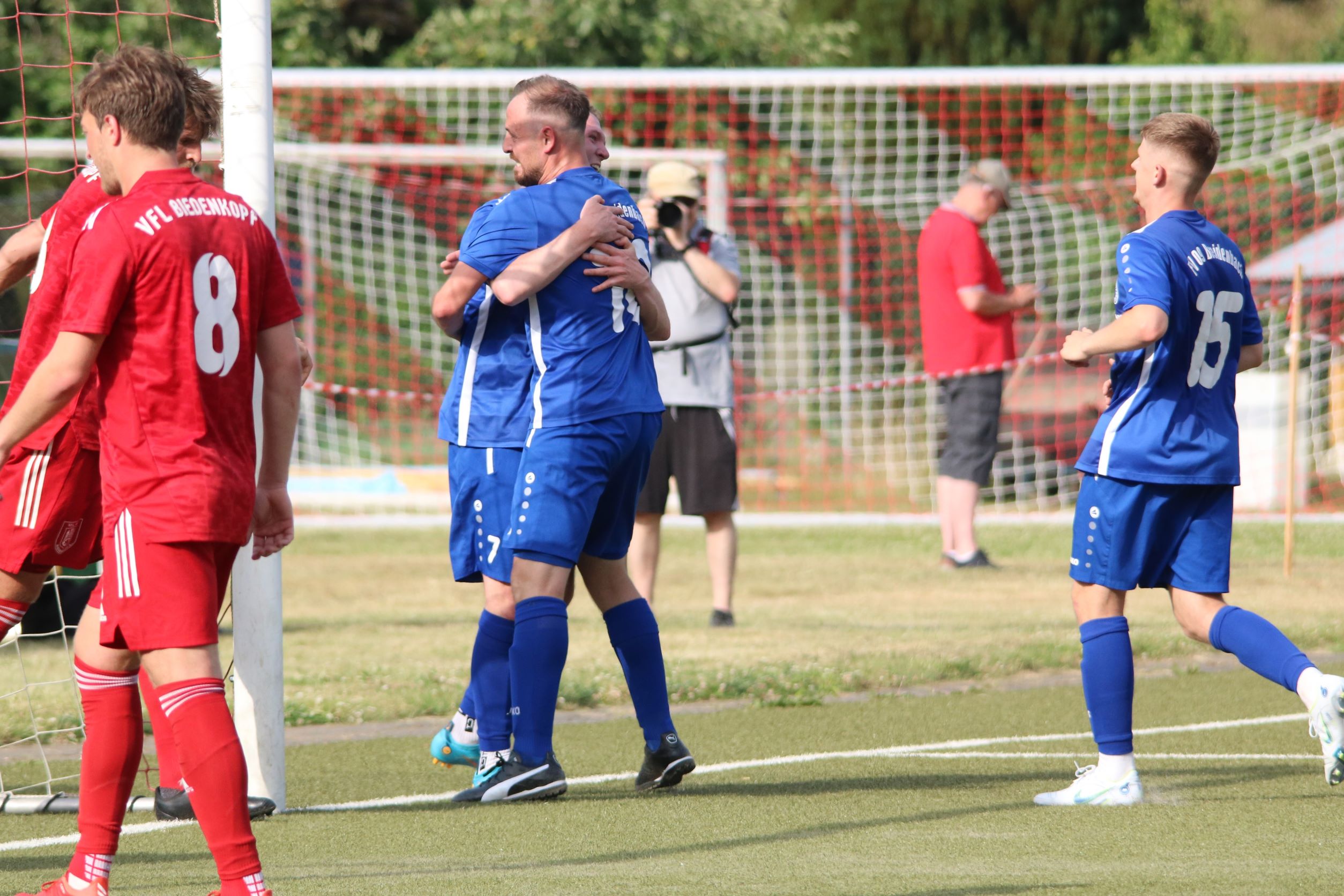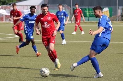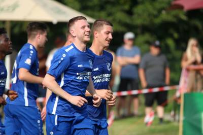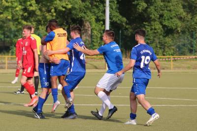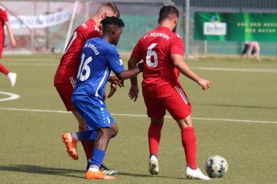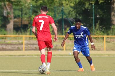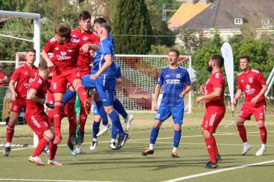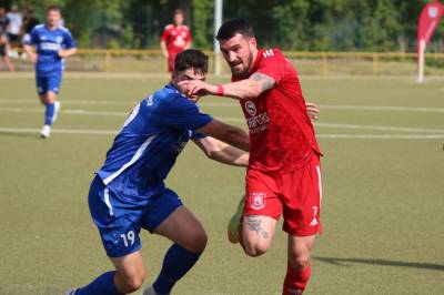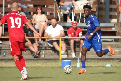 Das sollte sich in Halbzeit 2 dann ändern. Der Uhrzeiger hatte noch keine ganze Minutenumdrehung hinter sich gebracht, als Felix Baum im letzten Moment gestoppt wurde. Doch schon 30 Sekunden später sollte Breidenbachs Topspieler zeigen, warum er seit 10 Jahren das Maß aller Dinge im heimischen Fußball ist. Als der Ball den Weg in den Strafraum fand und die Kugel im hohem Bogen auf dem am zweiten Pfosten platzierten FV-Sturmführer flog, setzte dieser per Fallrückzieher mit einer Klasseaktion das Highlight des Spiels. Baum Abschluss war für Biedenkopfs Keeper Geiss unerreichbar und so stand es 1:1 in der 46. Minute. Jetzt war Breidenbach richtig im Spiel und dominierte gegen eine VfL-Elf, die sich doch beeindruckt zeigte. Als Aaron Künkel in der 55. Minute zum Solo ansetzte und sich mit einer Klasseaktion gegen mehrere VfL-Akteure durchsetzte, stand er plötzlich im Strafraum alleine vor Dominic Geiss. Eiskalt zeigte er sich im Abschluss und vollstreckte zum 1:2. Biedenkopf reagierte und Trainer Vladi Kovacevic wechselte Lukas Cegledi ins Mittelfeld ein. Das der bekanntlich im Kopfballspiel zu den guten gehört, sollte er bereits 5 Minuten später zeigen, als er als Abnehmer eines weiten Freistoßballs am langen Pfosten das Leder zum 2:2 einnickte. Jetzt war die Partie wieder völlig offen und beide Teams versuchten bei den hohen Temperaturen nochmal alles, um mit dem lucky Punch die Partie für sich zu entscheiden. Breidenbach erspielte sich dabei in Durchgang 2 einige Vorteile, agierte mit den ganz starken Alex Mamro und Dilan Vuantu im Mittelfeld, die mit FV-Kapitän Lukas Müller einen super Fixpunkt in der Zentrale hatten. Seine bravouröse Leistung krönte Breidenbachs Nils Cakar dann in der 70. Minute, als er nach einem seiner vielen gewonnenen Zweikämpfe mit einer ganz starken Einzelaktion über die rechte Angriffsseite durchmarschierte und im Stile eines Klassestürmers den spielentscheidenden Treffer zum 2:3 erzielte. Biedenkopf versuchte zwar am Ende nochmals alles, musste aber auch der laufintensiven Anfangsphase ein wenig Tribut zollen. Unser Team verteidigte klasse und verdiente sich den Sieg am Ende.