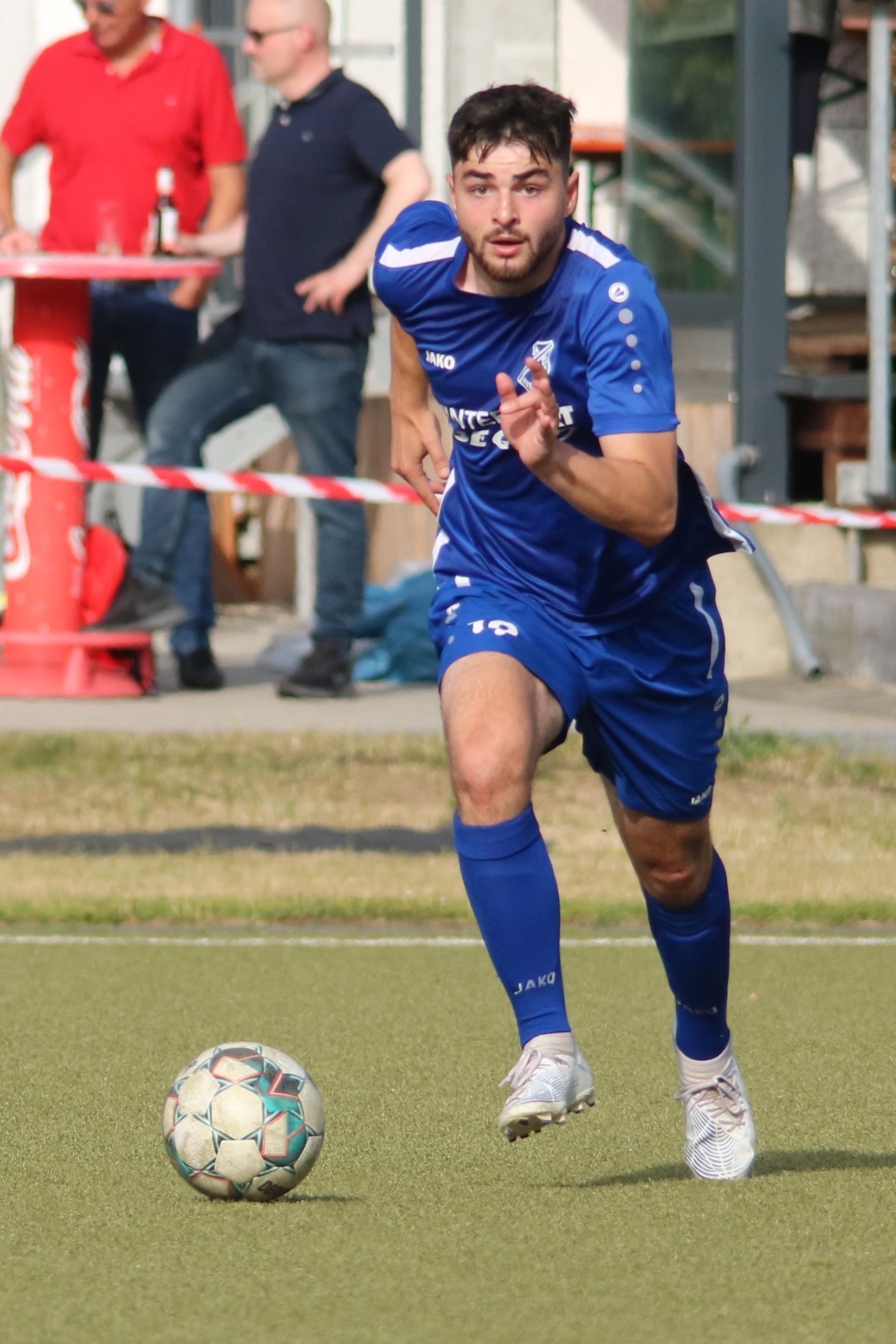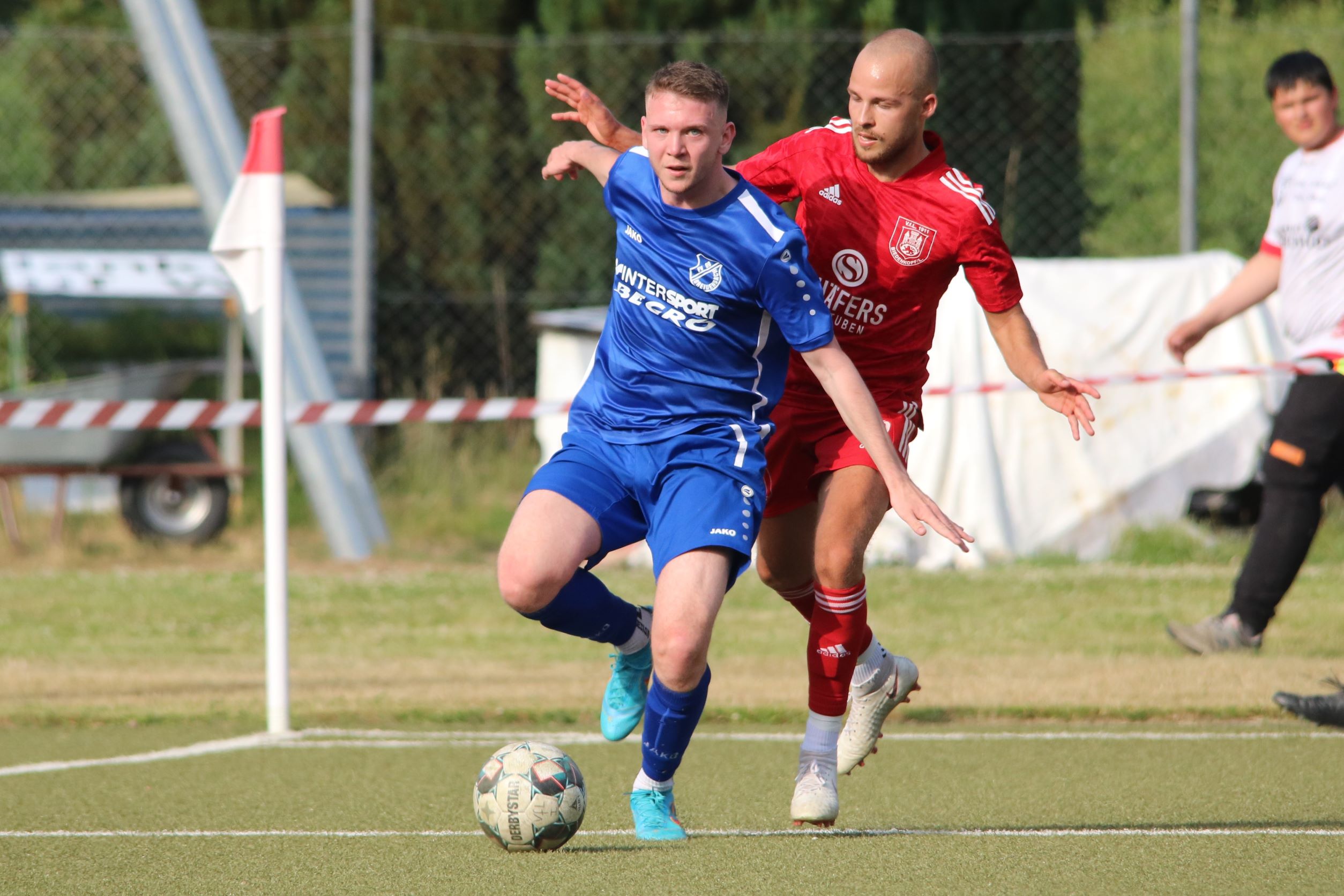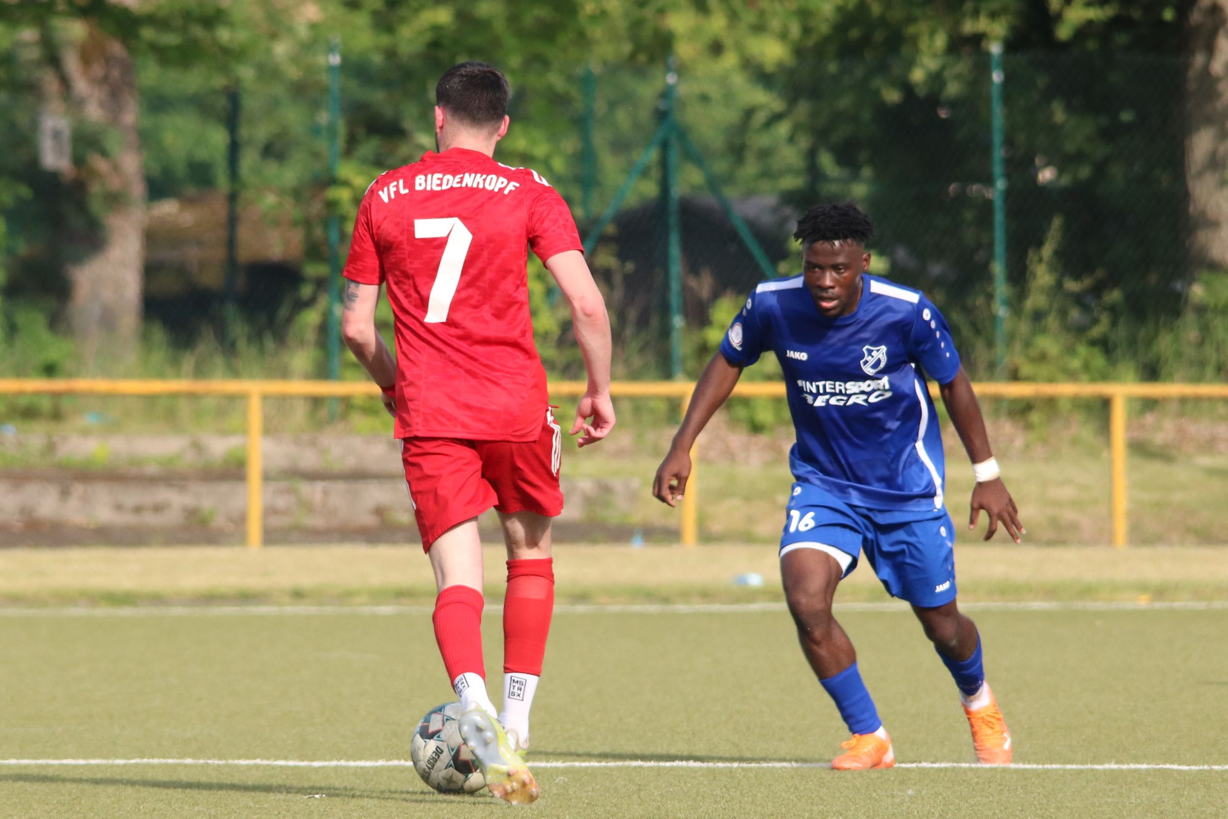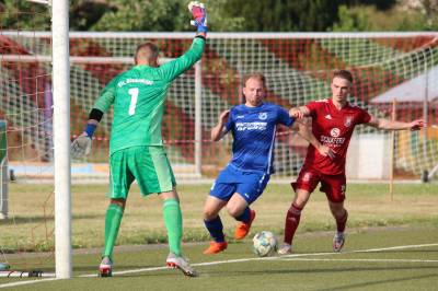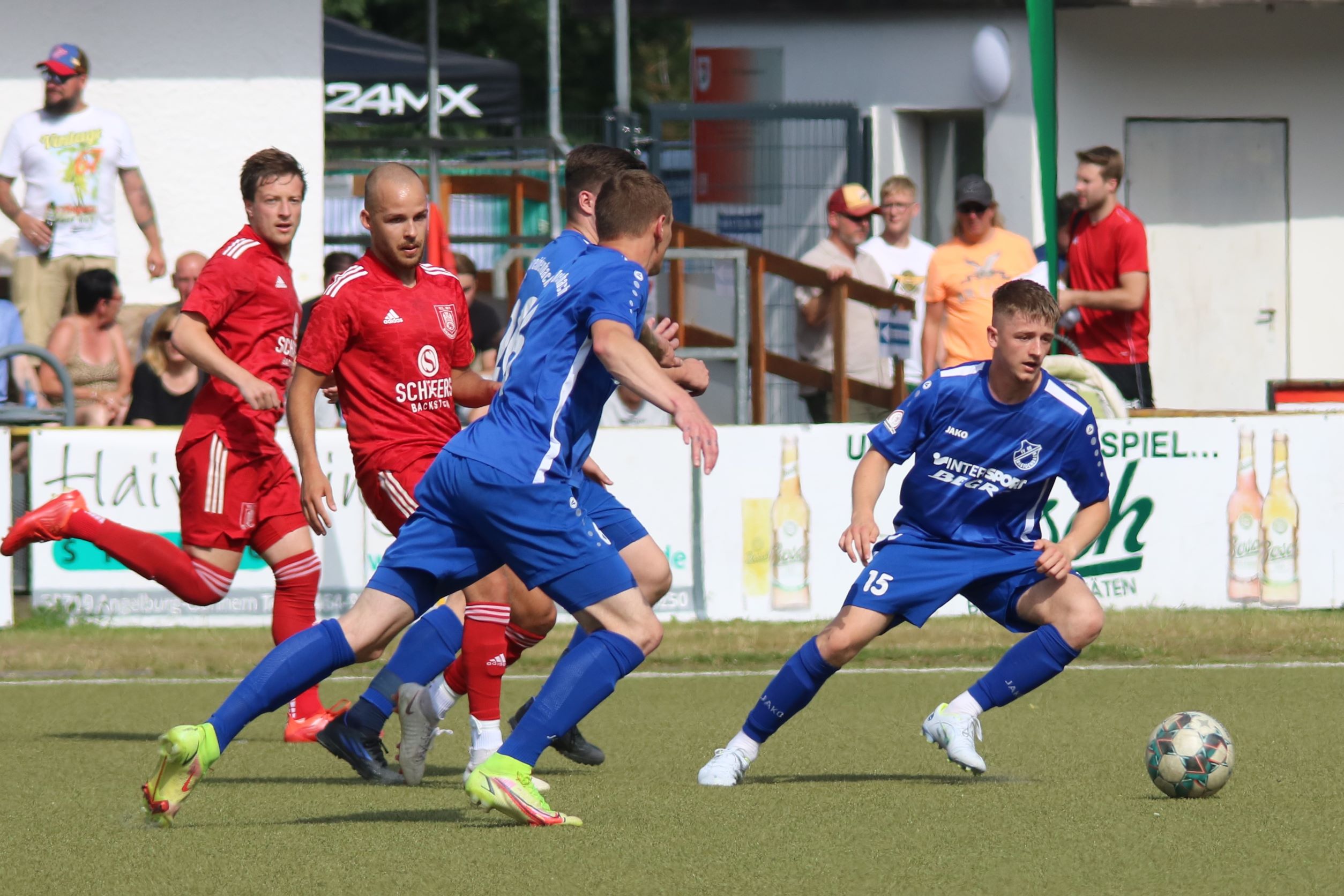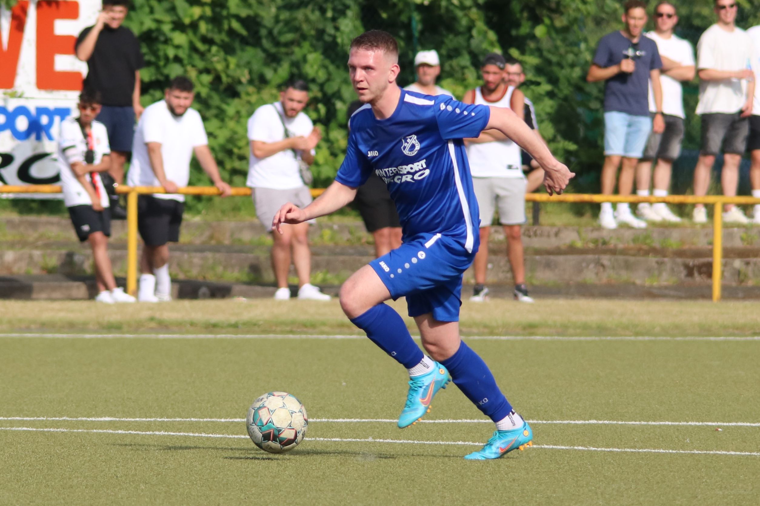 Das sollte sich in Halbzeit 2 dann ändern. Der Uhrzeiger hatte noch keine ganze Minutenumdrehung hinter sich gebracht, als Felix Baum im letzten Moment gestoppt wurde. Doch schon 30 Sekunden später sollte Breidenbachs Topspieler zeigen, warum er seit 10 Jahren das Maß aller Dinge im heimischen Fußball ist. Als der Ball den Weg in den Strafraum fand und die Kugel im hohem Bogen auf dem am zweiten Pfosten platzierten FV-Sturmführer flog, setzte dieser per Fallrückzieher mit einer Klasseaktion das Highlight des Spiels. Baum Abschluss war für Biedenkopfs Keeper Geiss unerreichbar und so stand es 1:1 in der 46. Minute. Jetzt war Breidenbach richtig im Spiel und dominierte gegen eine VfL-Elf, die sich doch beeindruckt zeigte. Als Aaron Künkel in der 55. Minute zum Solo ansetzte und sich mit einer Klasseaktion gegen mehrere VfL-Akteure durchsetzte, stand er plötzlich im Strafraum alleine vor Dominic Geiss. Eiskalt zeigte er sich im Abschluss und vollstreckte zum 1:2. Biedenkopf reagierte und Trainer Vladi Kovacevic wechselte Lukas Cegledi ins Mittelfeld ein. Das der bekanntlich im Kopfballspiel zu den guten gehört, sollte er bereits 5 Minuten später zeigen, als er als Abnehmer eines weiten Freistoßballs am langen Pfosten das Leder zum 2:2 einnickte. Jetzt war die Partie wieder völlig offen und beide Teams versuchten bei den hohen Temperaturen nochmal alles, um mit dem lucky Punch die Partie für sich zu entscheiden. Breidenbach erspielte sich dabei in Durchgang 2 einige Vorteile, agierte mit den ganz starken Alex Mamro und Dilan Vuantu im Mittelfeld, die mit FV-Kapitän Lukas Müller einen super Fixpunkt in der Zentrale hatten. Seine bravouröse Leistung krönte Breidenbachs Nils Cakar dann in der 70. Minute, als er nach einem seiner vielen gewonnenen Zweikämpfe mit einer ganz starken Einzelaktion über die rechte Angriffsseite durchmarschierte und im Stile eines Klassestürmers den spielentscheidenden Treffer zum 2:3 erzielte. Biedenkopf versuchte zwar am Ende nochmals alles, musste aber auch der laufintensiven Anfangsphase ein wenig Tribut zollen. Unser Team verteidigte klasse und verdiente sich den Sieg am Ende.
