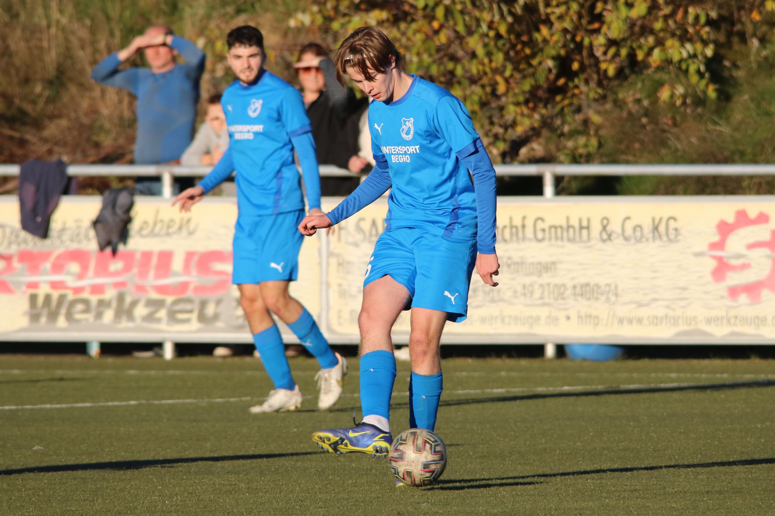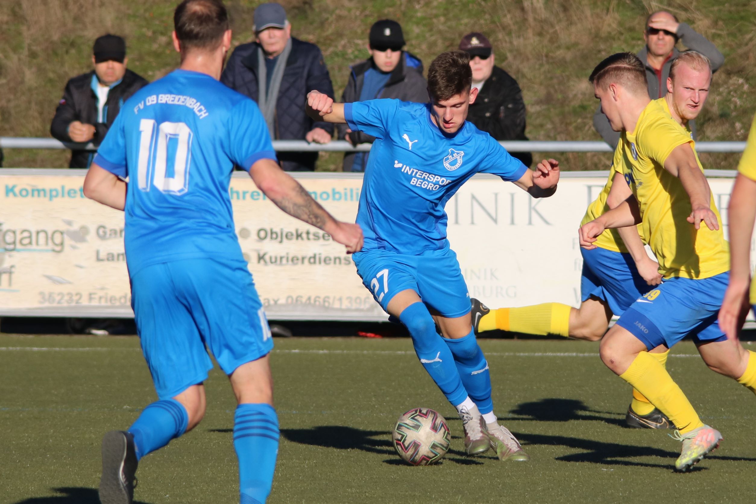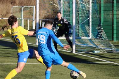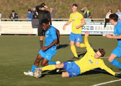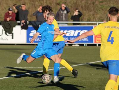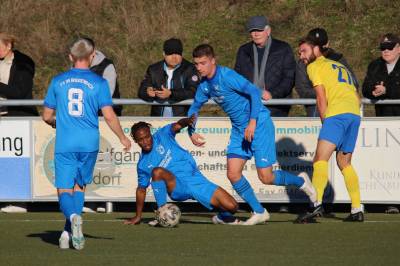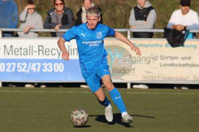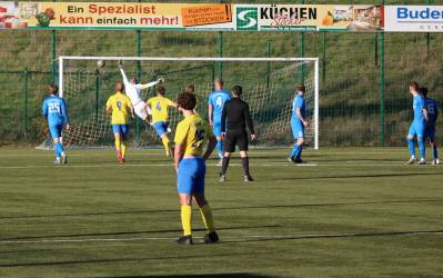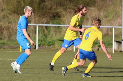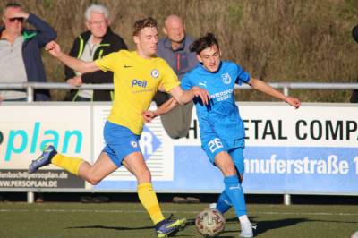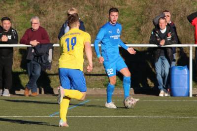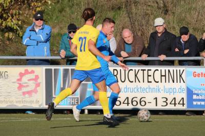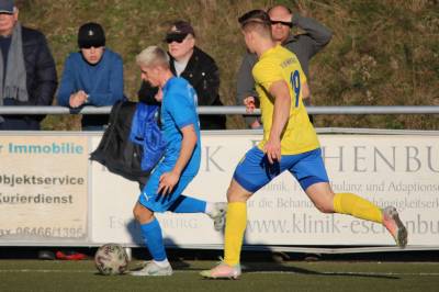 (FS/13.11.2022) Es war angerichtet auf dem Breidenbacher Kunstrasenplatz im Gunterstal. Die neue Tribüne war fertig und wurde gut genutzt und die Teams des FV 09 und der SF/BG Marburg präsentierten sich bei bestem Fußballwetter in Spiel- und Torlaune. So begannen die Gäste von Beginn an ihre technischen Fertigkeiten auf dem Feld einzubringen. Breidenbach wurde zunächst in die Defensive gedrängt, schaffte es aber mit zunehmender Spieldauer immer besser, eigene Aktionen nach vorne zu starten. Als in der 15. Minute Sebastian Wanke über die rechte Angriffsseite per Flachpass seinen Spielertrainer Felix Baum im Zentrum bediente, ließ sich selbiger nicht zweimal bitten und vollstreckte mit einem satten Rechtsschuss ins lange Toreck zum 1:0. Das Spiel nahm jetzt zusätzlich Fahrt auf und Marburg drängte auf den Ausgleich. Dieser sollte dann in Minute 28 passieren, als zunächst Dilan Vuantu seinen Gegenspieler 25 Meter vor dem eigenen Tor von den Beinen holte. Marburgs Max Eidam trat an und verwandelte per Freistoß unhaltbar im Torwinkel des FV-Gehäuses. Jetzt war Marburg mit viel Selbstvertrauen gut im Spielfluss. Als in Minute 32 ein Breidenbacher Einwurf in der eigenen Spielhälfte unglücklicherweise zu kurz auf Keeper Tobias Ochs geworfen wurde, war Marburgs Torjäger Sascha Huhn zur Stelle und vollstreckte zum 1:2. Breidenbach zeigte sich unbeeindruckt und agierte mit viel Kampf und guter Laufarbeit. In Minute 38 war es Linksverteidiger Cord Beumer, der mit einem seiner scharf getretenen Freistöße von der halbrechten Angriffsseite in den Strafraum der Gäste Felix Baum suchte und auch fand. Breidenbachs Torjäger traf per Kopf aus kurzer Distanz ins lange Toreck zum viel umjubelten 2:2 Ausgleich. Und Breidenbach setzte weiter nach. Praktisch mit dem Halbzeitpfiff belohnte sich Alexander Mamro mit seinem Treffer aus 14 Metern für seine gute Tagesleistung. So ging es dann in die Pause und die Experten am Spielfeldrand waren sich einig, dass die fünf Treffer noch nicht das Ende des Torreigens gewesen sein konnten.