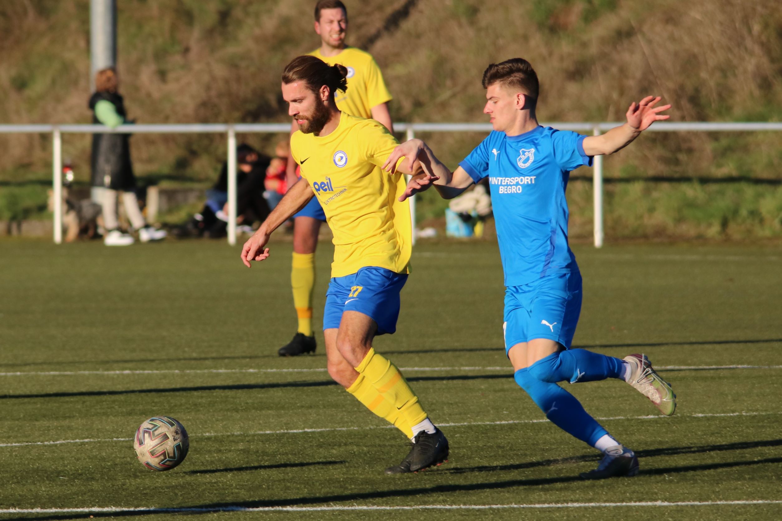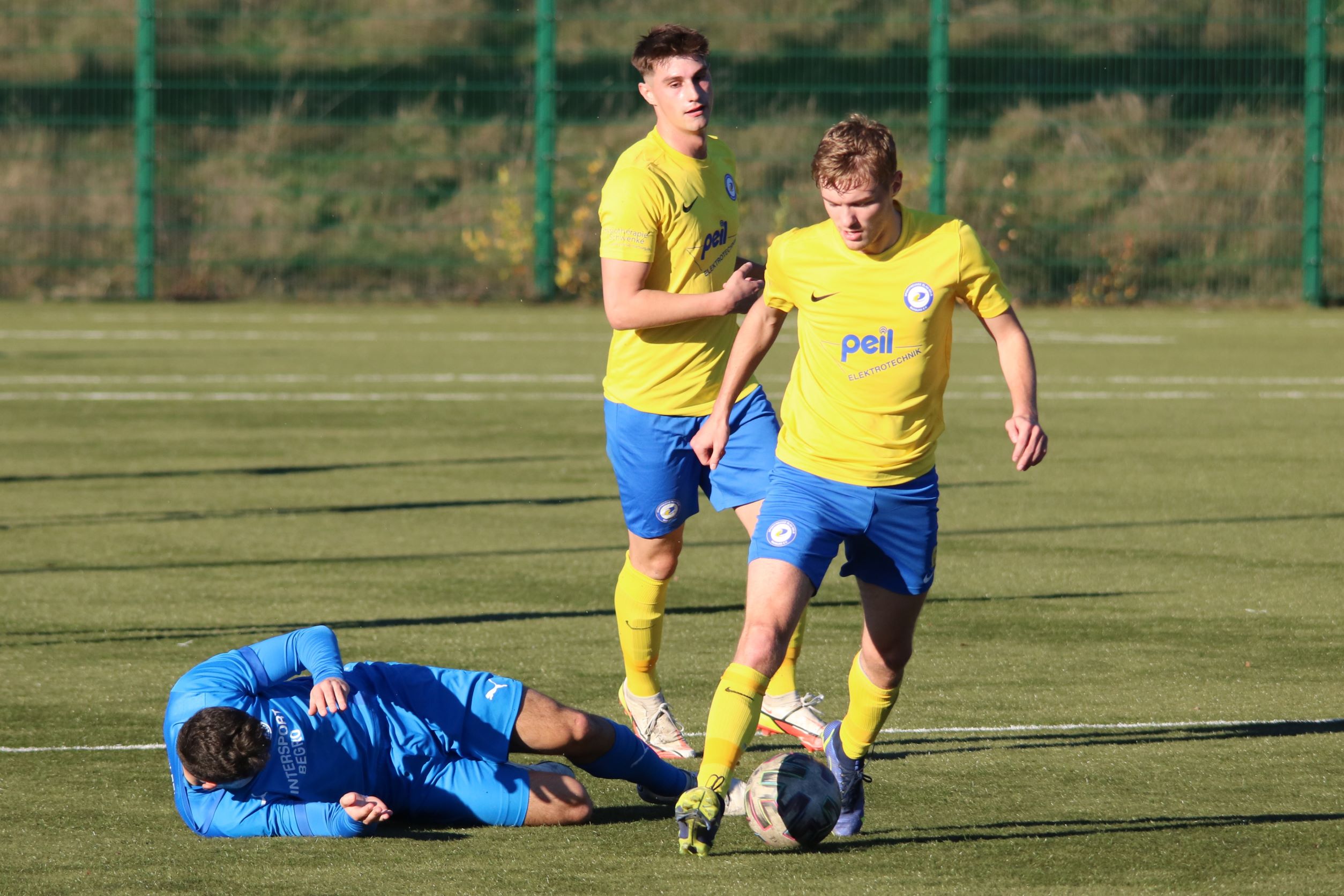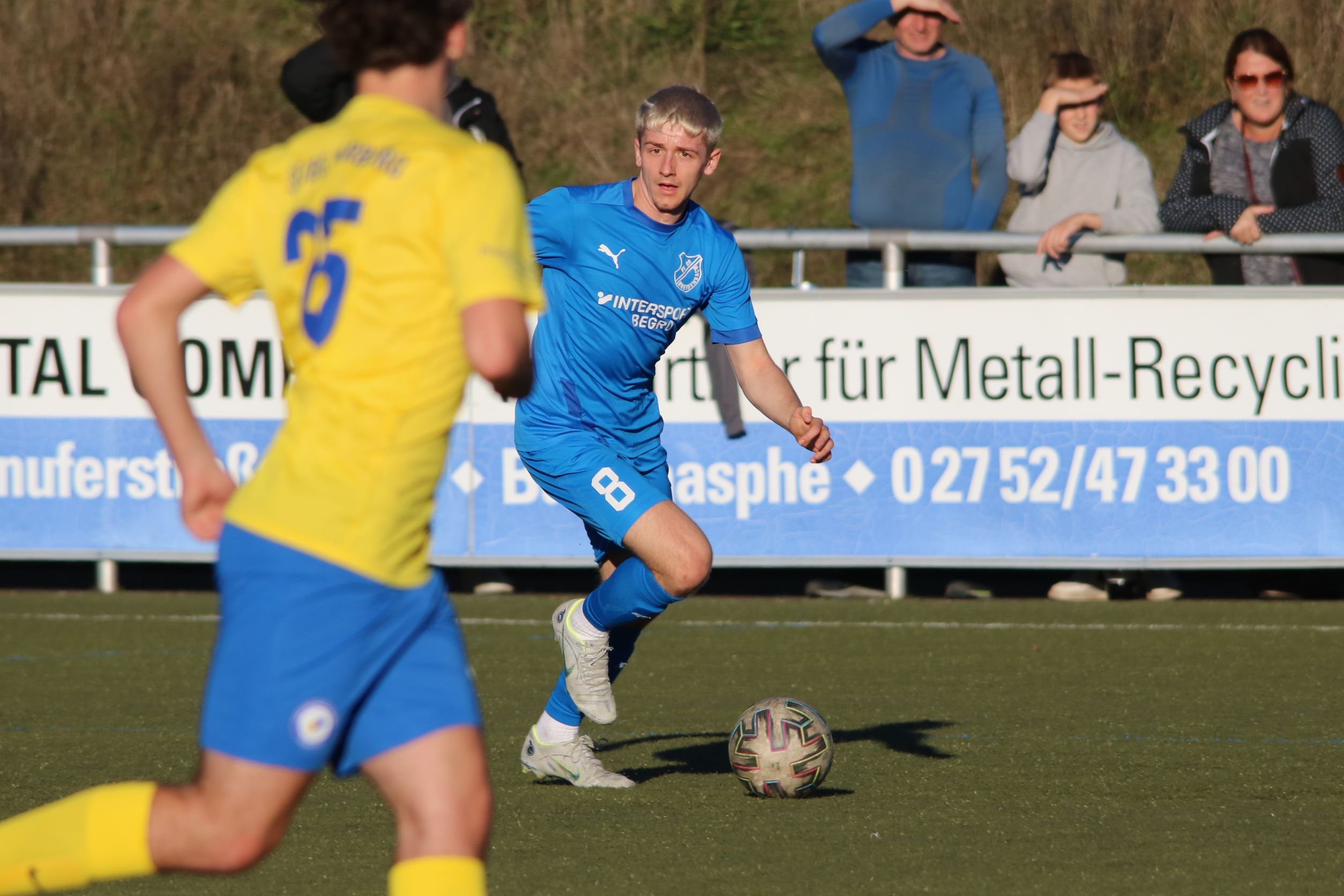 (FS/13.11.2022) Es war angerichtet auf dem Breidenbacher Kunstrasenplatz im Gunterstal. Die neue Tribüne war fertig und wurde gut genutzt und die Teams des FV 09 und der SF/BG Marburg präsentierten sich bei bestem Fußballwetter in Spiel- und Torlaune. So begannen die Gäste von Beginn an ihre technischen Fertigkeiten auf dem Feld einzubringen. Breidenbach wurde zunächst in die Defensive gedrängt, schaffte es aber mit zunehmender Spieldauer immer besser, eigene Aktionen nach vorne zu starten. Als in der 15. Minute Sebastian Wanke über die rechte Angriffsseite per Flachpass seinen Spielertrainer Felix Baum im Zentrum bediente, ließ sich selbiger nicht zweimal bitten und vollstreckte mit einem satten Rechtsschuss ins lange Toreck zum 1:0. Das Spiel nahm jetzt zusätzlich Fahrt auf und Marburg drängte auf den Ausgleich. Dieser sollte dann in Minute 28 passieren, als zunächst Dilan Vuantu seinen Gegenspieler 25 Meter vor dem eigenen Tor von den Beinen holte. Marburgs Max Eidam trat an und verwandelte per Freistoß unhaltbar im Torwinkel des FV-Gehäuses. Jetzt war Marburg mit viel Selbstvertrauen gut im Spielfluss. Als in Minute 32 ein Breidenbacher Einwurf in der eigenen Spielhälfte unglücklicherweise zu kurz auf Keeper Tobias Ochs geworfen wurde, war Marburgs Torjäger Sascha Huhn zur Stelle und vollstreckte zum 1:2. Breidenbach zeigte sich unbeeindruckt und agierte mit viel Kampf und guter Laufarbeit. In Minute 38 war es Linksverteidiger Cord Beumer, der mit einem seiner scharf getretenen Freistöße von der halbrechten Angriffsseite in den Strafraum der Gäste Felix Baum suchte und auch fand. Breidenbachs Torjäger traf per Kopf aus kurzer Distanz ins lange Toreck zum viel umjubelten 2:2 Ausgleich. Und Breidenbach setzte weiter nach. Praktisch mit dem Halbzeitpfiff belohnte sich Alexander Mamro mit seinem Treffer aus 14 Metern für seine gute Tagesleistung. So ging es dann in die Pause und die Experten am Spielfeldrand waren sich einig, dass die fünf Treffer noch nicht das Ende des Torreigens gewesen sein konnten.