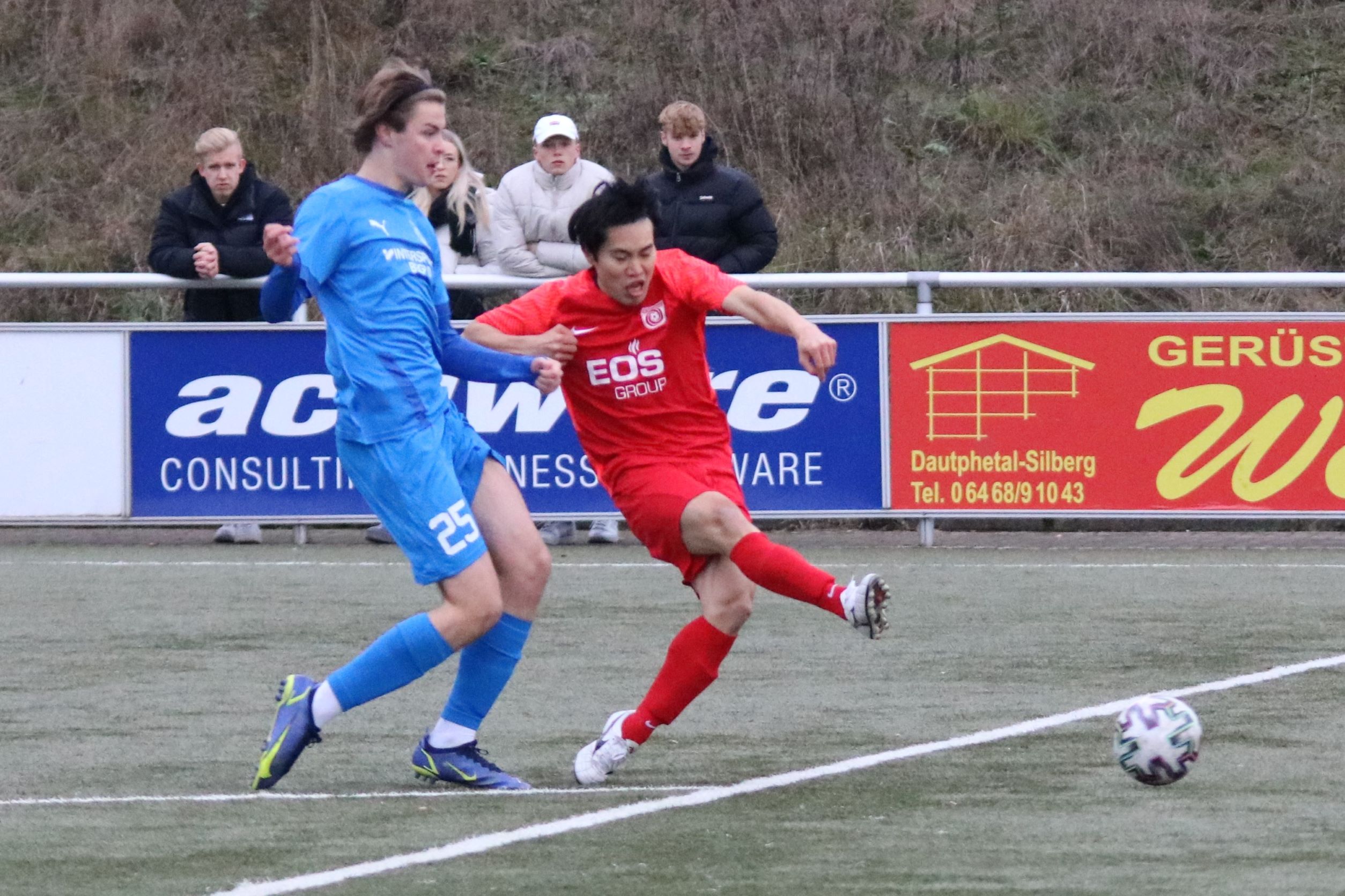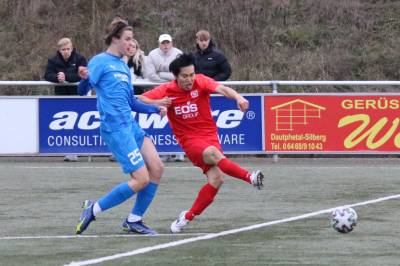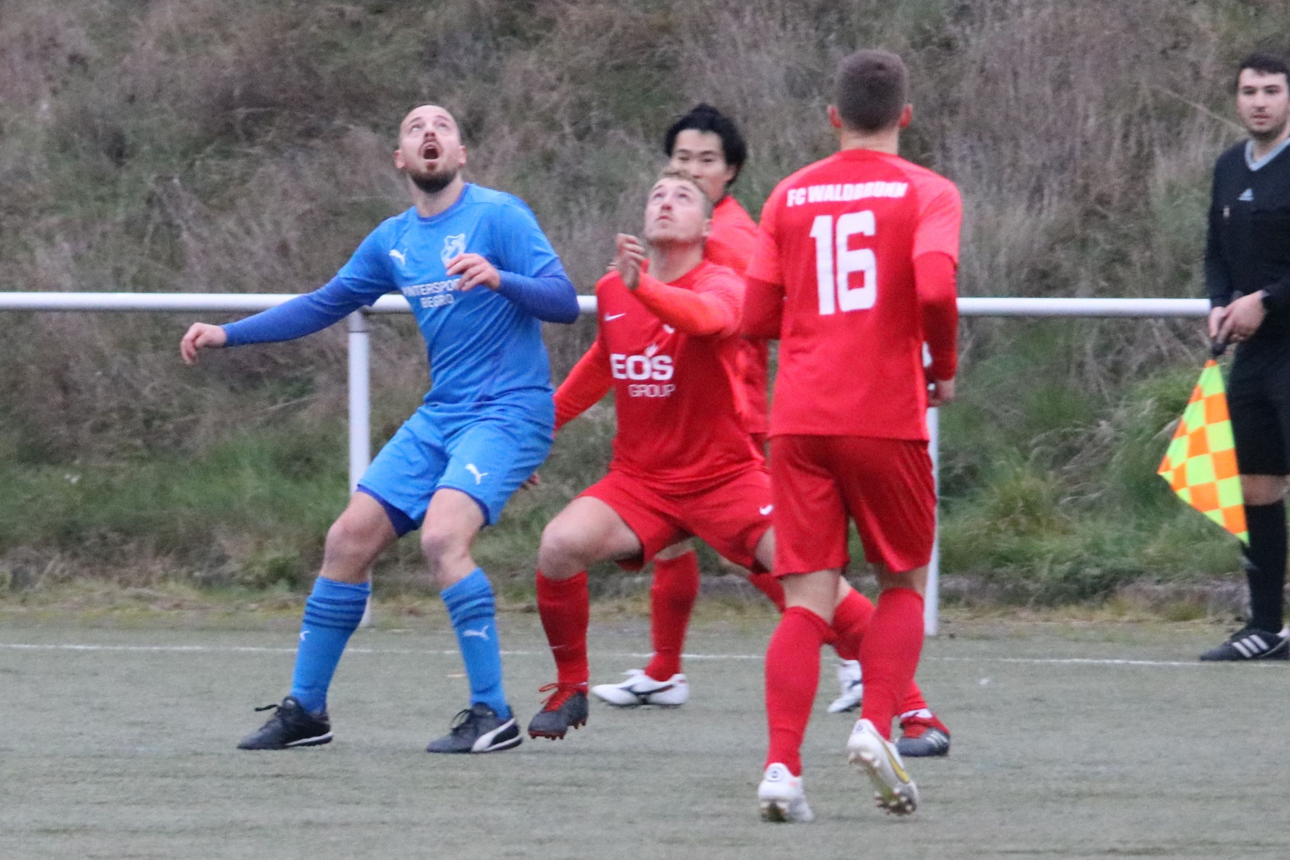 Begonnen hatte die Partie mit einer spielbestimmenden Gästeelf, die ihre bekannten Stärken als körperlich robuste und laufstarke Kämpfermannschaft ins Zeug warf. In der Folge erzielten der FC Waldbrunn nach 9 Minuten die Führung durch Silas Henrich, der gegen eine zu passive FV-Defensive deren Unentschlossenheit nutzte. Der Wachrüttler sollte Breidenbach dann besser ins Spiel bringen. Als in der 22. Minute Cord Beumer aus 25 Metern zum Freistoß ansetzte, sollte der Jubel im FV-Lager nicht lange auf sich warten lassen. Sein Ball schlug im FC-Netz ein und der Ausgleich war geschafft. Pech hatte Breidenbach dann nach einer guten halben Stunde, als ein Gästeakteur aus 20 Metern zum Torschuss ansetzte, der Ball von FV-Innenverteidiger Marius Kamm unglücklich abgefälscht wurde, sodass Tobis Ochs im FV-Tor chancenlos war. Und als dann die Gäste 1 Minute vor der Halbzeit das 1:3 erzielten, ahnten viele FV-Fans nichts Gutes für ihr Team. Der quirlige Yoshiki Watai hatte in Halbzeit 1 Breidenbachs rechte Abwehrseite mehrfach durchgewirbelt und im Konter die Linksflanke eiskalt ins FV-Netz gesetzt. Die Gäste waren offensichtlich im Feiermodus, als Felix Baum im Gegenzug am Strafraum freigespielt wurde und er mit einem Schlenzer in den Torwinkel sein Team wieder heranbrachte. So gings in die Pause und nahezu alle Zuschauer waren sich einig, dass auch an diesem Spieltag das Torspektakel mit dem FV Breidenbach noch nicht zu Ende sein sollte.