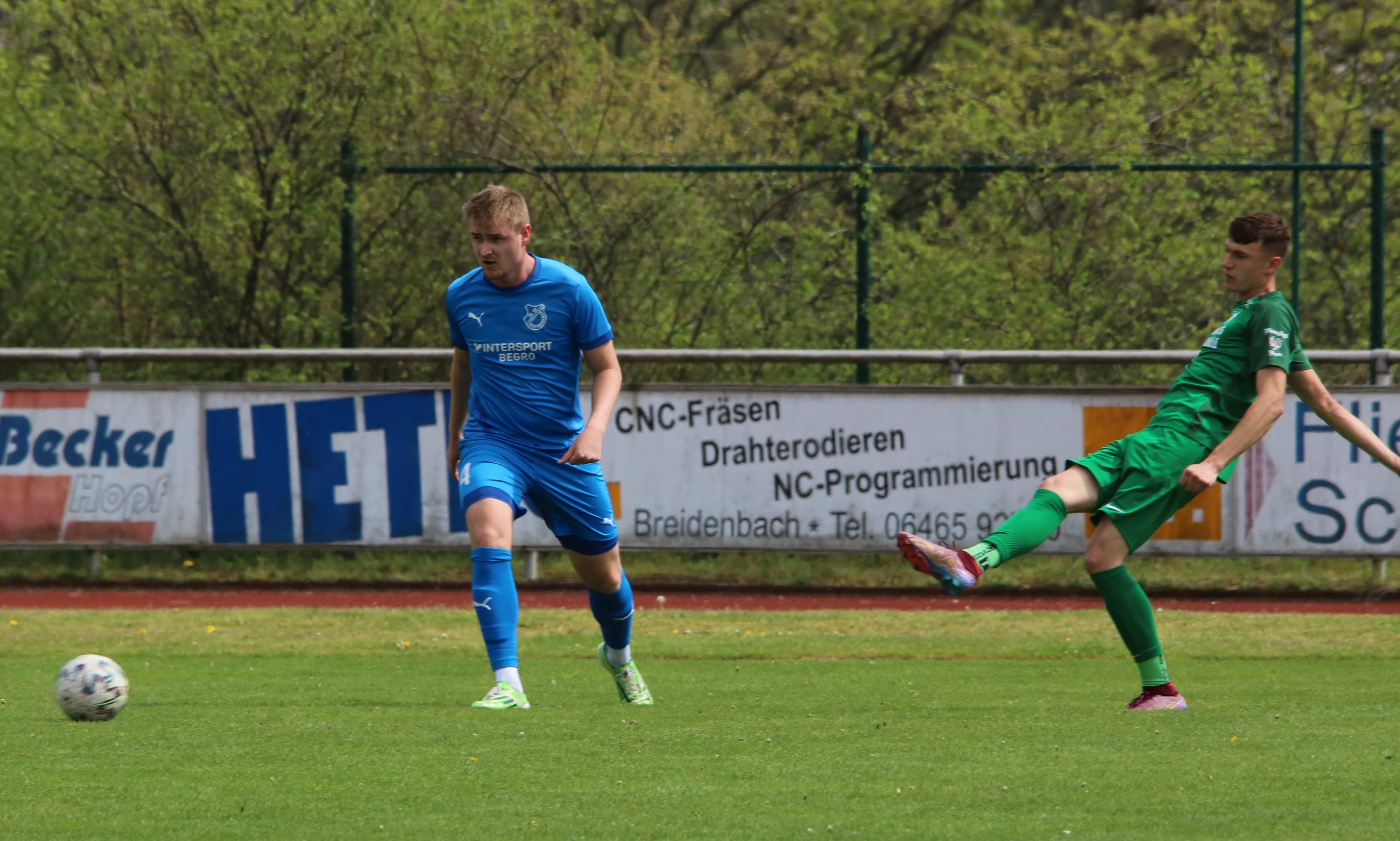 (FS/07.05.2023) 93 Minuten alles versucht und fasst nichts so gelungen, wie es sich die beiden Trainer des FV 09 und zweifelsfrei auch die heimischen Zuschauer im Breidenbacher Gunterstal vorgestellt hatten. Felix Baum hatte vom 6 - Punktespiel gesprochen und er hatte Recht mit der Klarmachung der Bedeutung in der aktuellen Saison. Keinem der Akteure aus dem FV-Kader kann man den Willen absprechen und alle haben alles versucht. Aber es war am heutigen Nachmittag so ein Tag, wo 11 Akteure im blauen Trikot mit Blei in den Beinen ganz einfach nicht so ins Spiel kamen, wie es nötig gewesen wäre, um eine wirklich gute Mannschaft aus Weyer in die Schranken zu weisen. Das Schiedsrichter Nico Konrad auch nicht wirklich einen guten Nachmittag erwischt hatte, tat sein Übriges dazu, war aber in keinem Fall entscheidend für das, was Breidenbach auf dem Feld ablieferte.