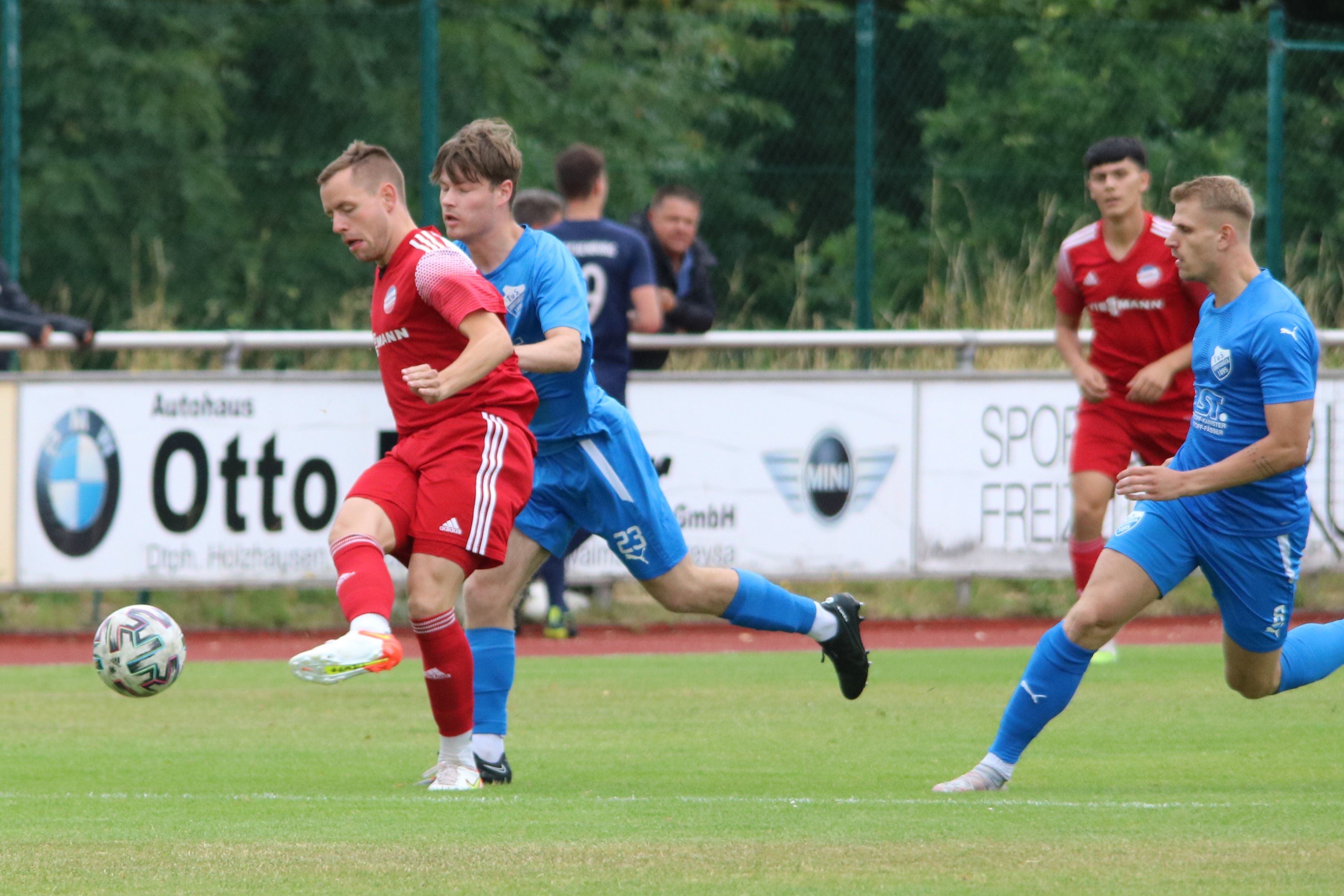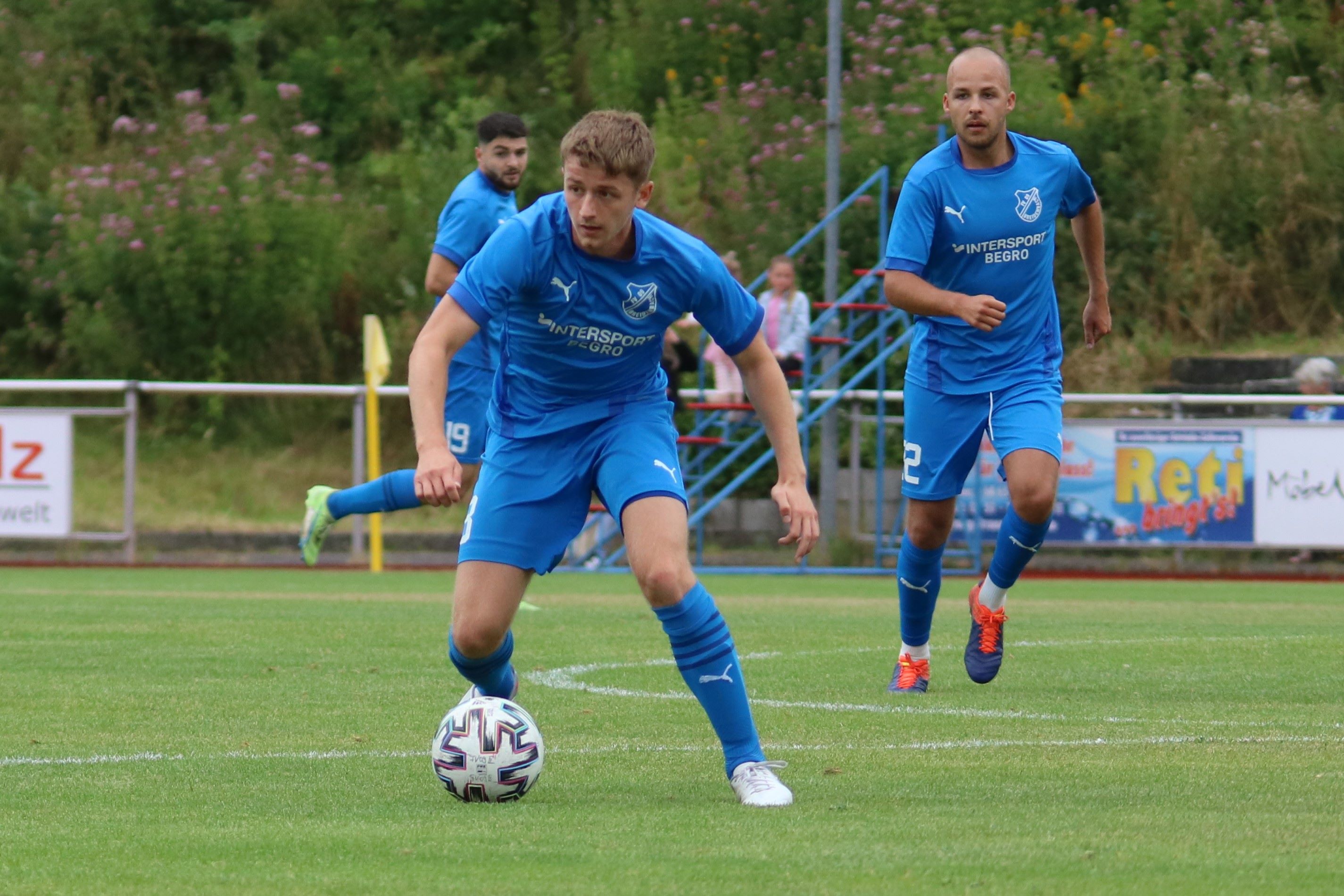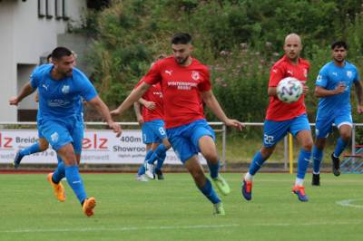 (23.07.2023/FS) In einem gut besetzten Viererturnier präsentierte der FV 09 Breidenbach am Sonntagnachmittag seinen Zuschauern die Elf, die in der Saison 23/24 in der Verbandsliga Mitte die blau-weißen Farben vertreten wird. Mit dem letztjährigen Turniersieger FC Ederbergland stand der Verbandsligavizemeister der vergangenen Saison ebenso wie die SG Eschenburg als letztjähriger Turnierzweiter im Teilnehmerfeld. Neu dabei präsentierte der NRW-Oberligaabsteiger TuS Erndtebrück mit seinem neuen Team die Elf, die den Wiederaufstieg in die Oberliga Westfalen schaffen soll.