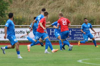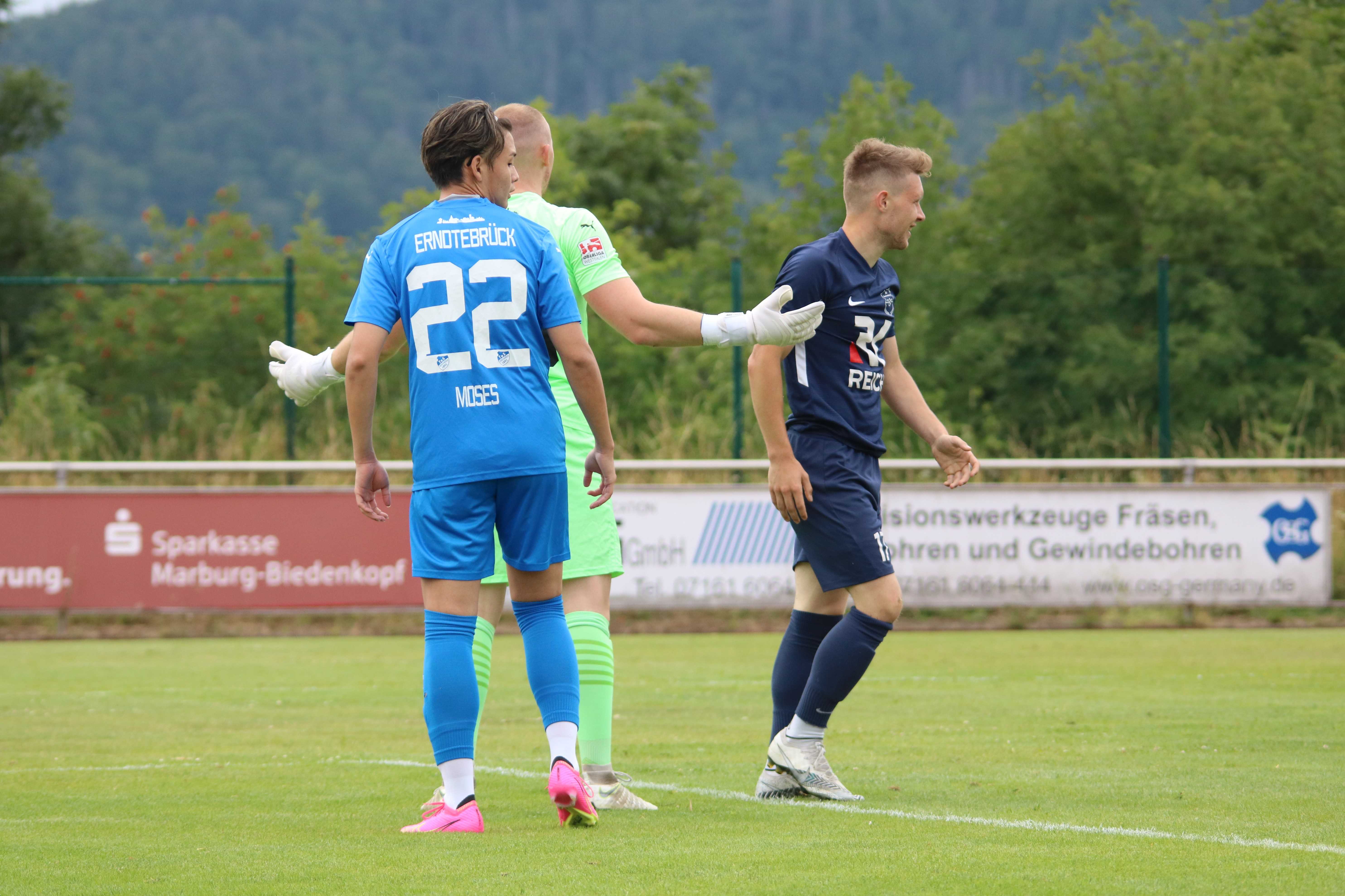Die vermeindlich spielstärksten Mannschaften der Turnierrunde zeigten von Beginn an ihre Qualitäten auf dem Platz. Zu Beginn präsentierte sich dabei Erndtebrück etwas stärker und ging folgerichtig auch verdientermaßen durch den Ex-Steinbacher El Euch in der 5. Minute mit 1:0 in Führung. Der FCE antwortete jedoch prompt und erzielte durch Felix Nolte in der 14. Minute mit einem klasse Treffer ins lange Toreck das 1:1. Pech hatte Ederbergland dann noch kurz vor Spielende, als Justin Six bei einem Abseitstreffer vom Unparteiischen am Torjubel gehindert wurde. Am Ende sicherte Erndtebrück etwas glücklich den Punkt zum 1:1.