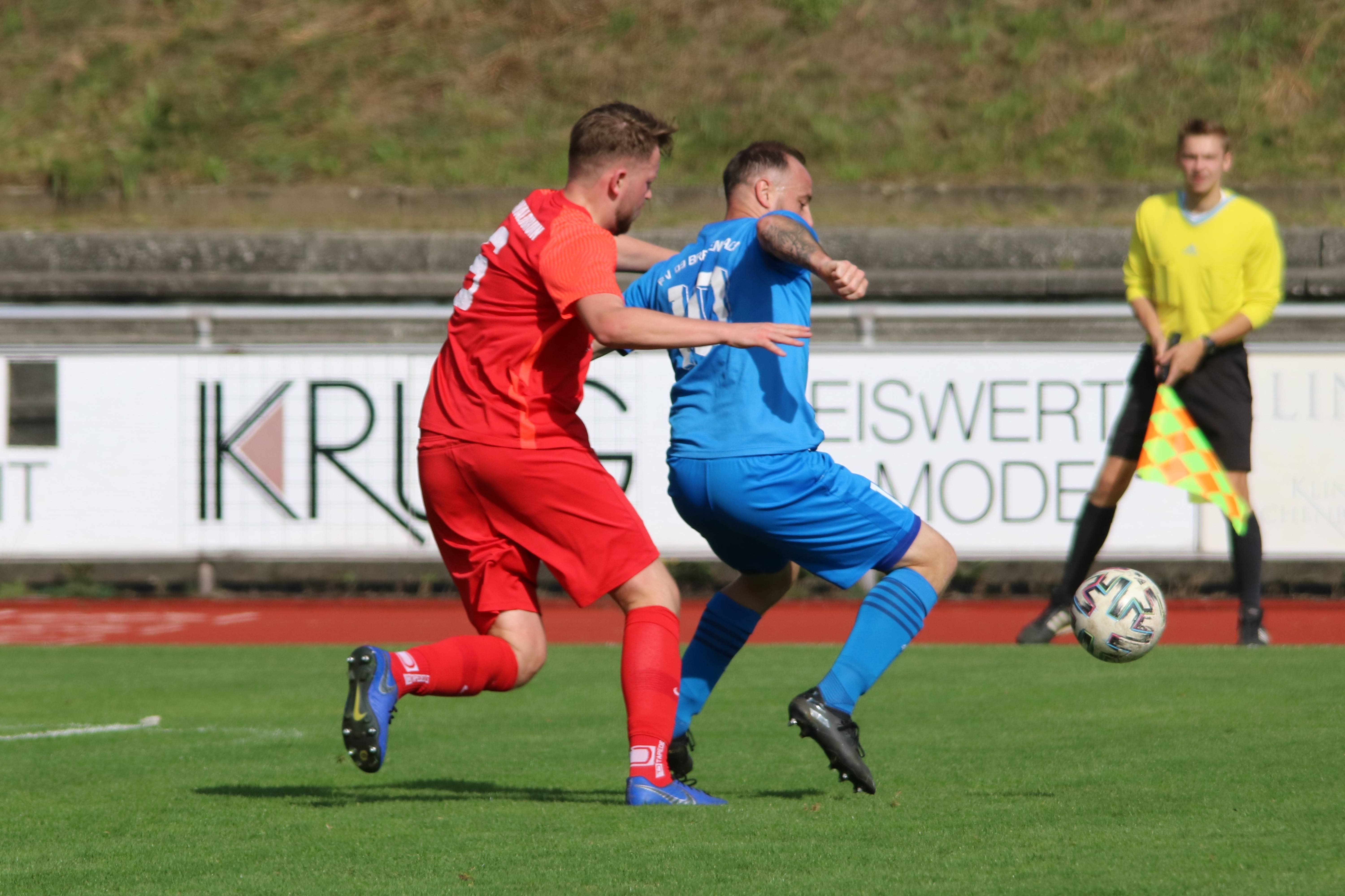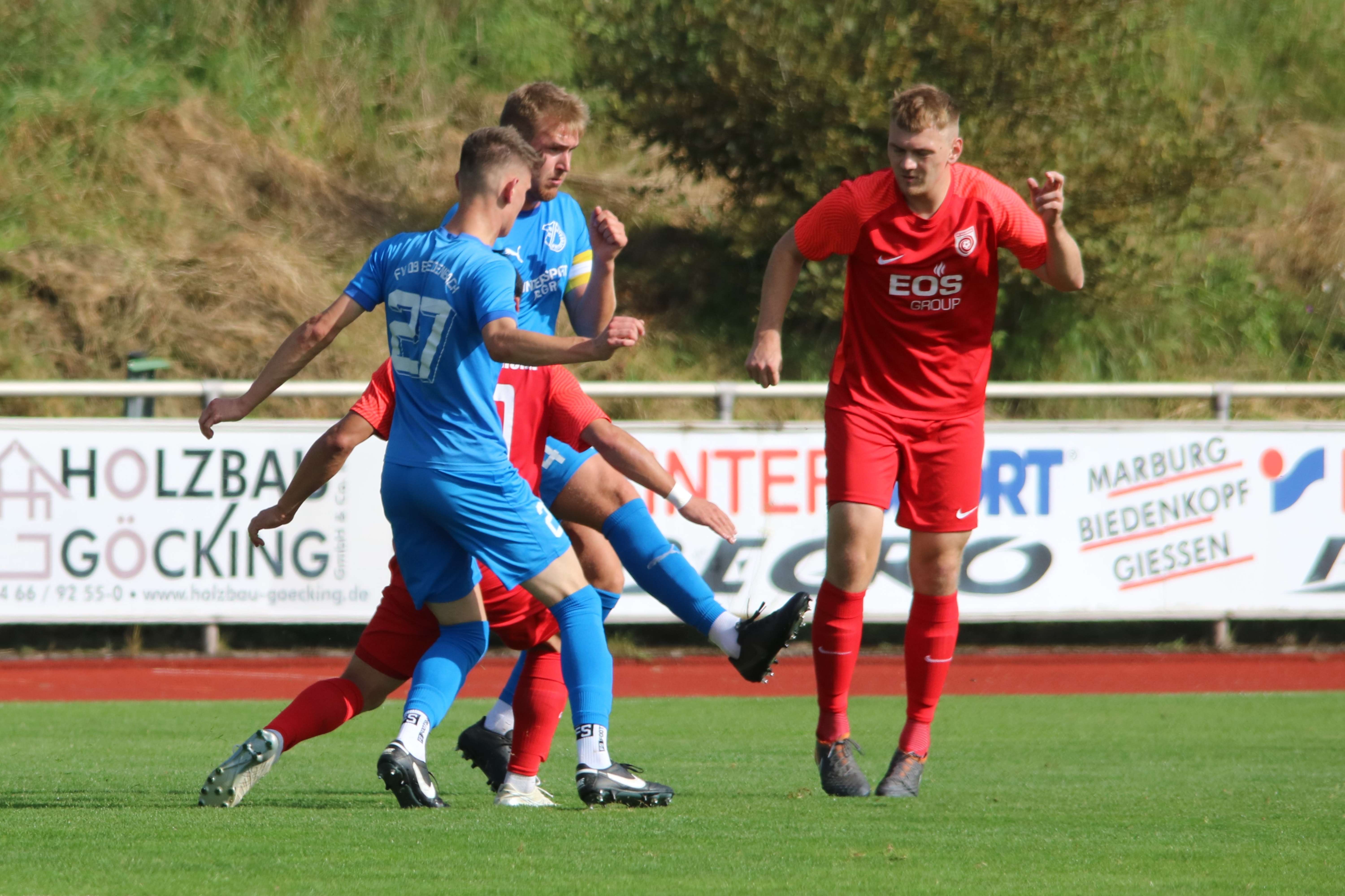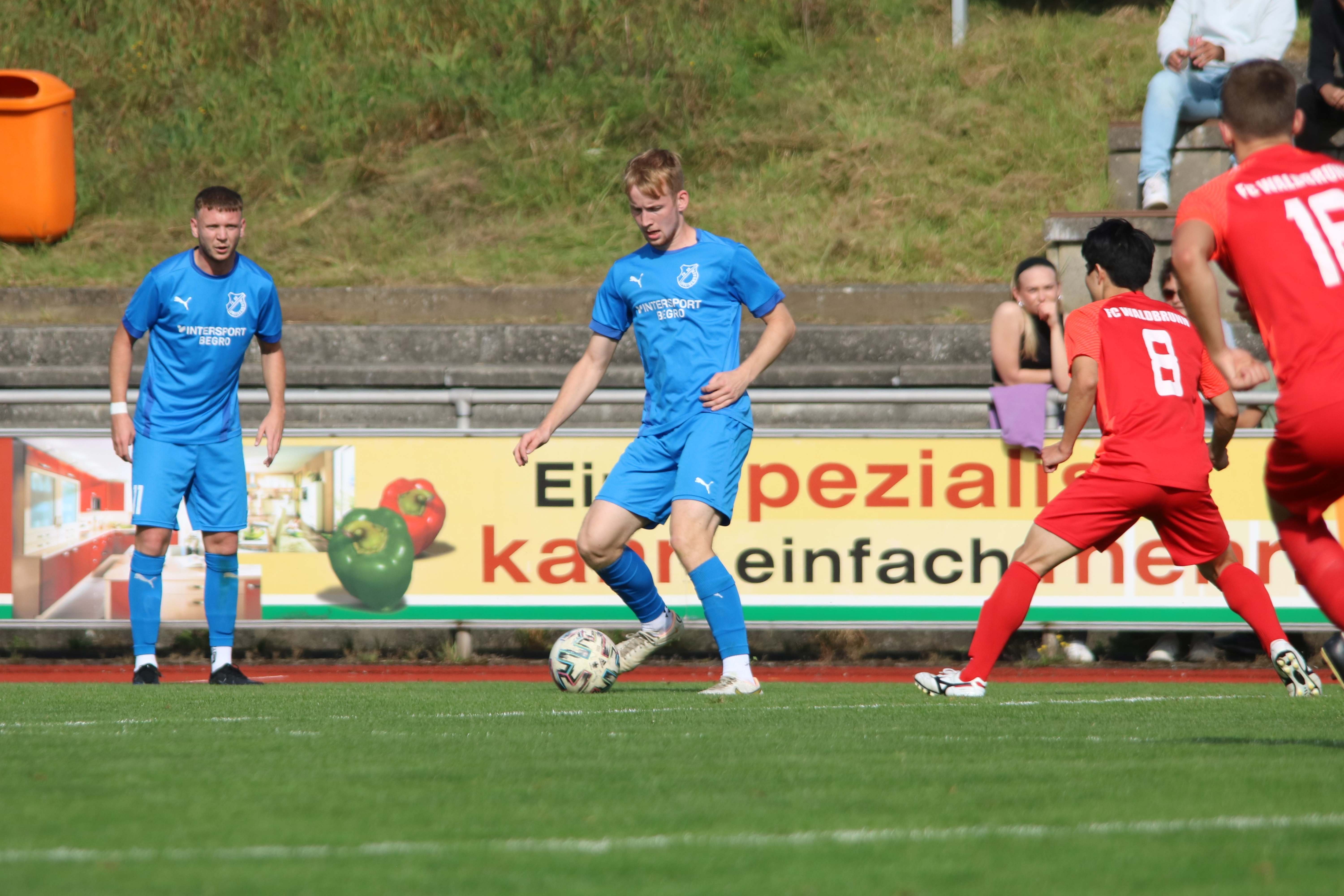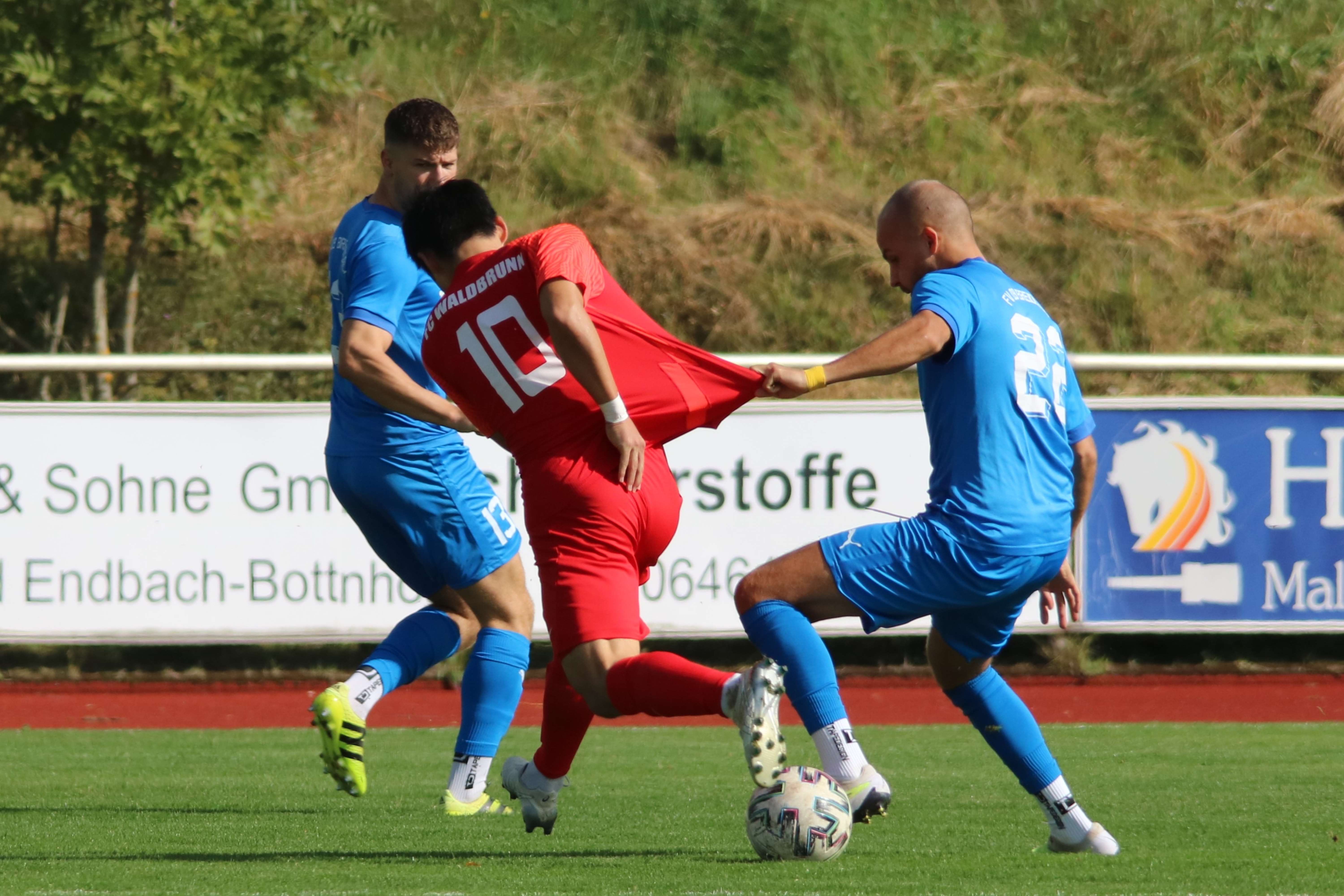 (30.09.2023/FS) Am Ende des Tages wird unsere Mannschaft nach einem intensiven Heimspiel und dem 1:1 Unentschieden gegen den FC Waldbrunn gut mit diesem Ergebnis leben können. Die Gäste aus Waldbrunn zeigten sich von Beginn an griffig auf dem Platz und erspielten sich optisch eine erkennbare Feldüberlegenheit. Der Unmut und die Unzufriedenheit einiger heimischer Edelfans war nicht zu überhören und der Wunsch nach mehr Offensive, mehr Mut nach vorne und weniger leichter Fehler beinhaltete alles, was über weite Strecken der Partie bei unserem FV 09 nicht so richtig funktionieren sollte. Das unsere Elf jedoch immer mit einer guten Einstellung und großem Engagement auf dem Platz agiert, spricht für sie und sollte schlussendlich auch zu recht mit dem späten Ausgleichstreffer durch Sebastian Wanke in der 82. Minute belohnt werden. Selbiger Spieler hätte bereits in der 11. Minute mit seinem Torabschluss die FV-Führung erzielen können, als er über die linke Angriffsseite nach einem gewonnen Zweikampf im Mittelfeld auf die Reise geschickt wurde. Gästekeeper Daniel Erbse reagierte jedoch prächtig und lenke das Leder nach dem Linksschuss auf das lange Toreck gerade noch am Pfosten vorbei. Vor den Toren passierte verhältnismäßig wenig, was der guten Abwehrarbeit beider Hintermannschaften geschuldet war. Die optische Überlegenheit der Gäste sollte sich dann in der 37. Minute auszahlen, als zunächst auf Breidenbacher Seite mit einem leichten Ballverlust FC-Kapitän Lukas Scholl das Leder in die Füße gespielt wurde und der sich dann artig bedankte und das Leder aus 20 Metern unhaltbar unten links ins Netz beförderte. Damit ging es in die Pause und die Gäste hatten sich die Führung insgesamt verdient, weil sie aktiver und mit weniger Fehlern auf dem Feld agiert hatten.
