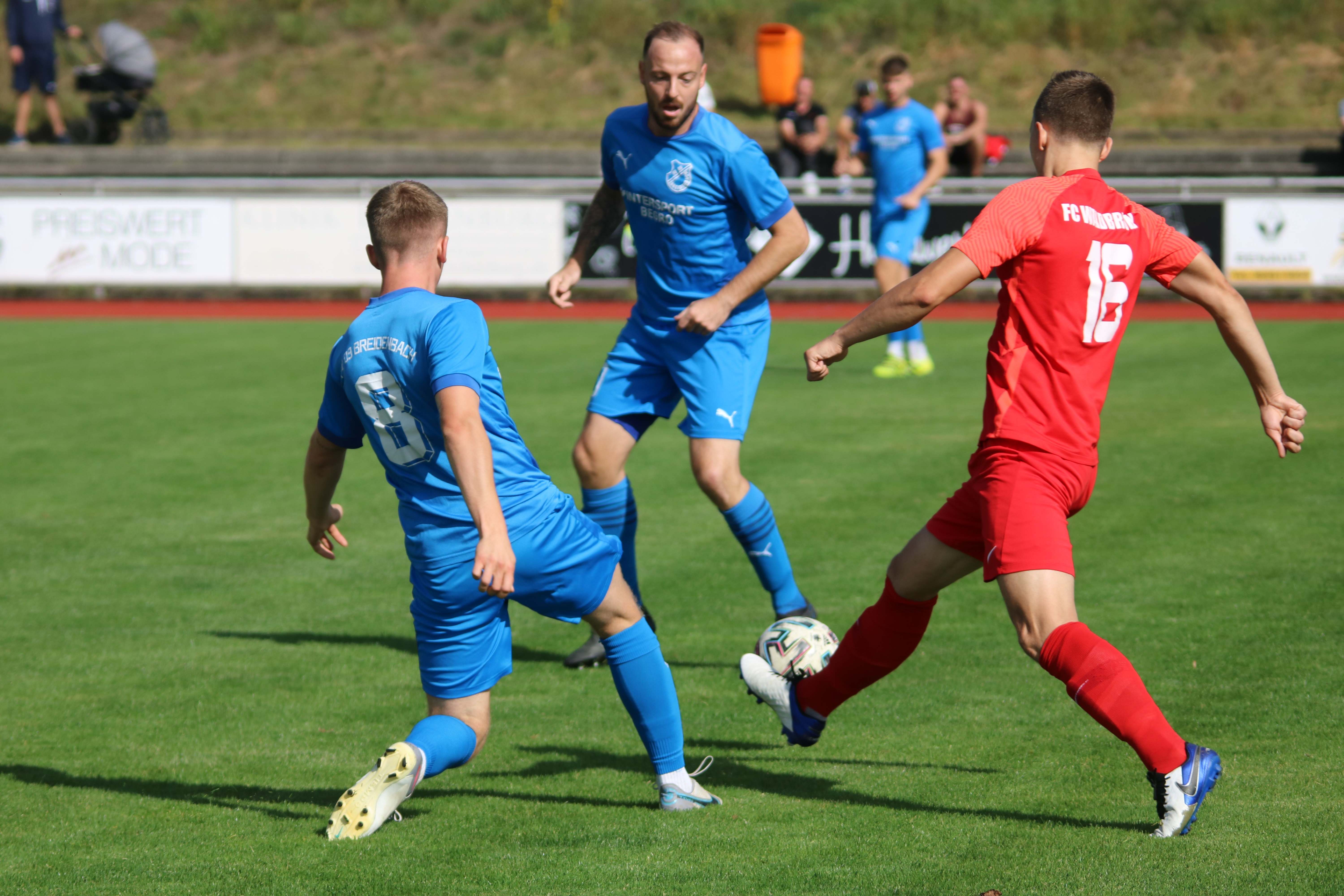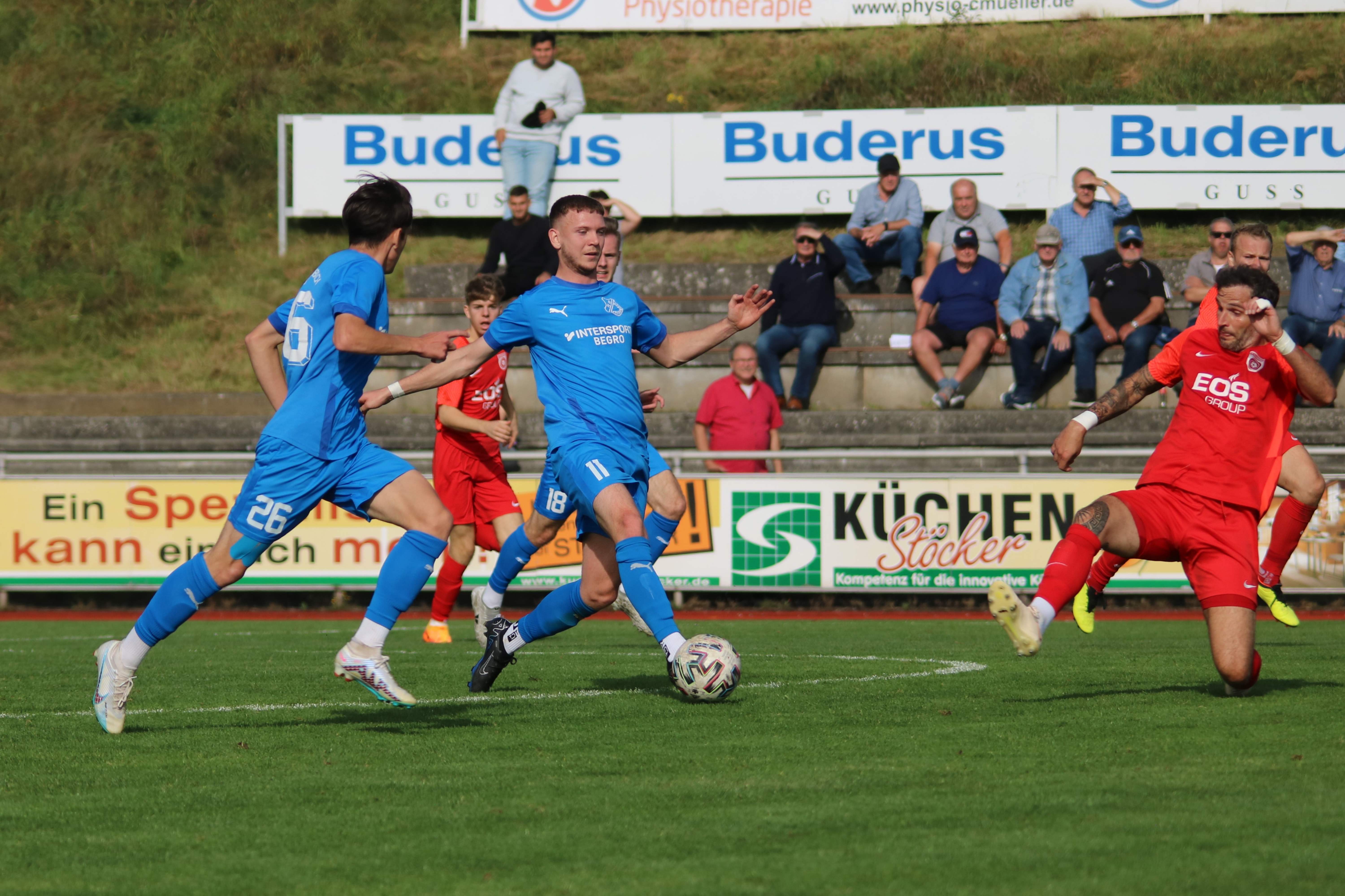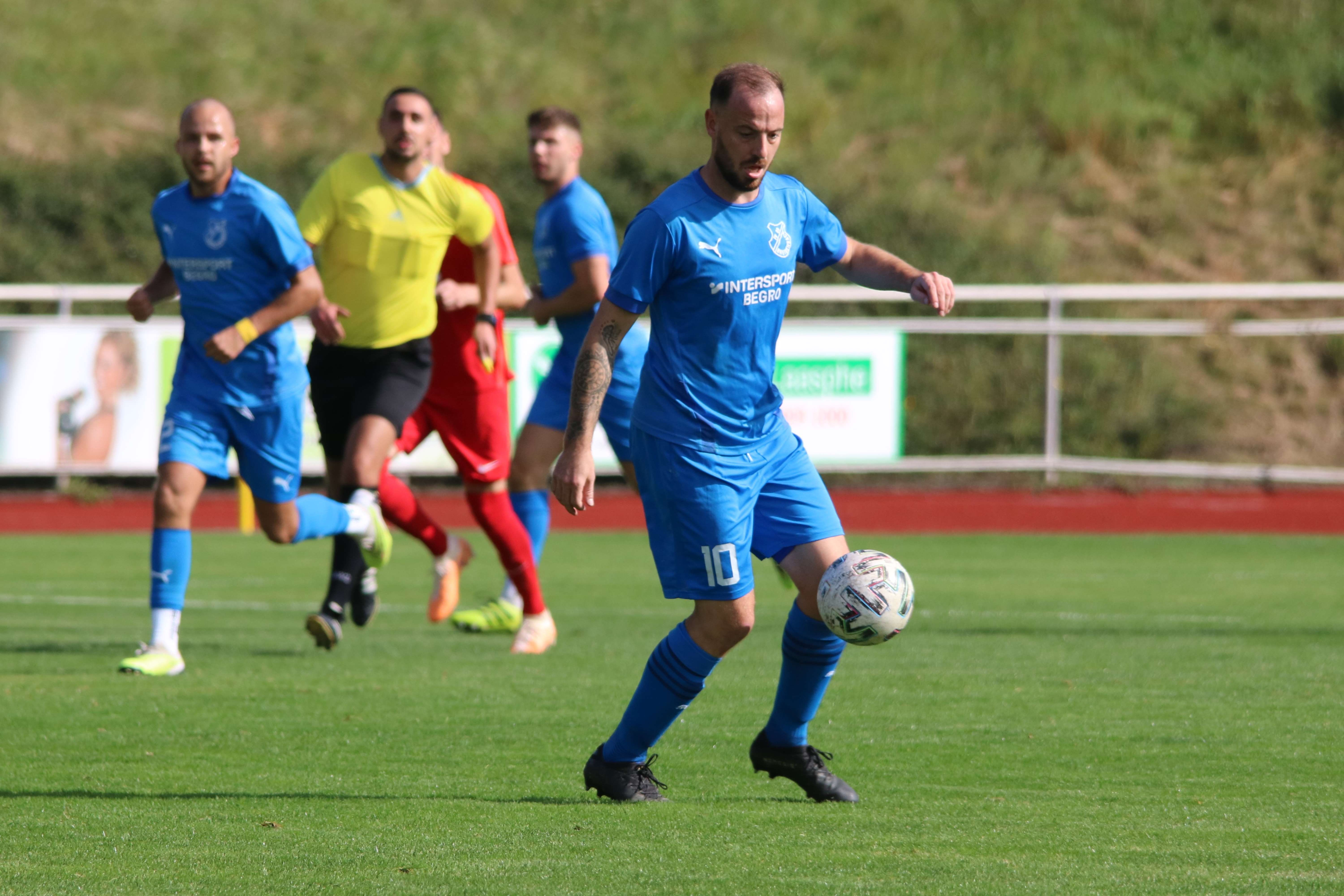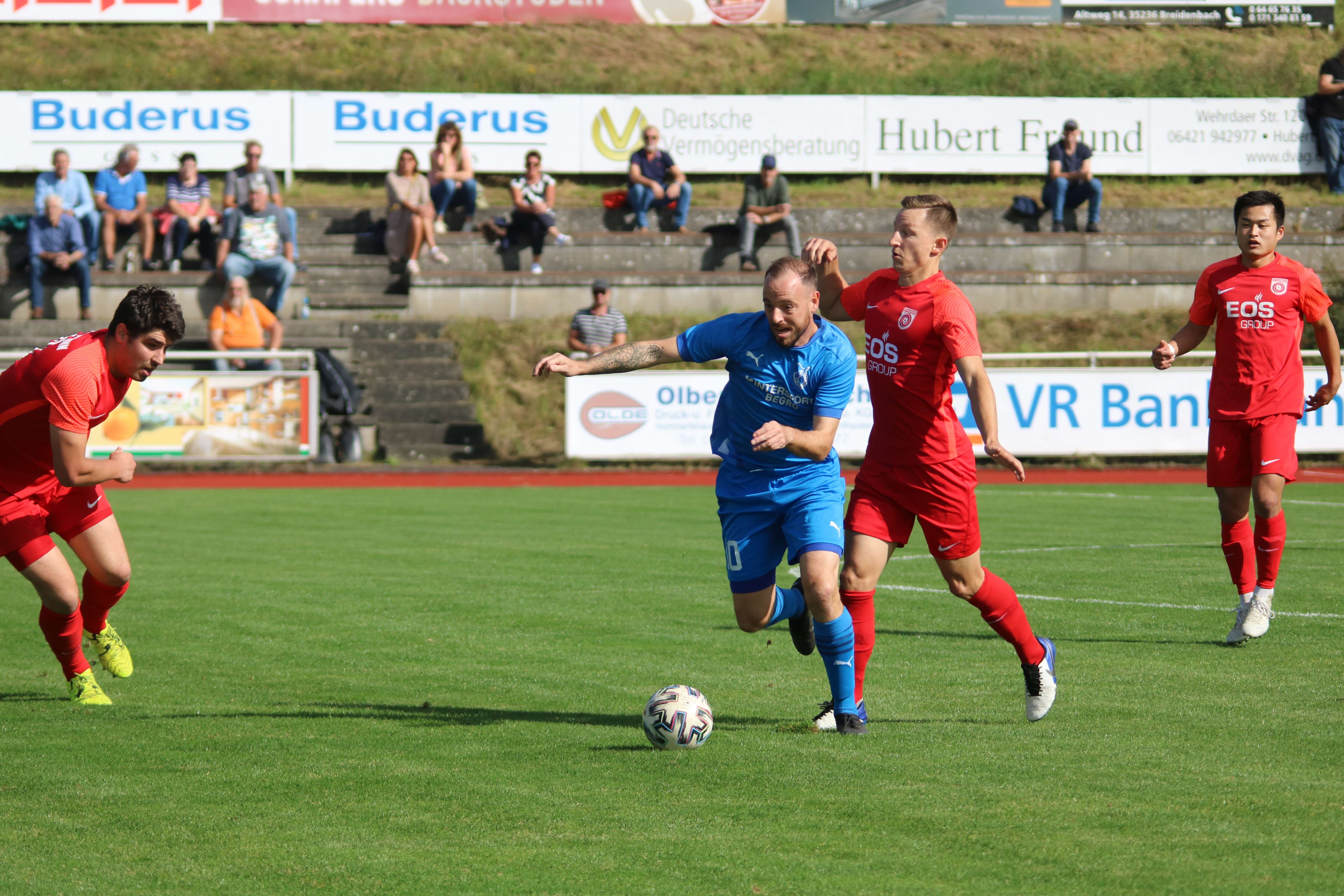 (30.09.2023/FS) Am Ende des Tages wird unsere Mannschaft nach einem intensiven Heimspiel und dem 1:1 Unentschieden gegen den FC Waldbrunn gut mit diesem Ergebnis leben können. Die Gäste aus Waldbrunn zeigten sich von Beginn an griffig auf dem Platz und erspielten sich optisch eine erkennbare Feldüberlegenheit. Der Unmut und die Unzufriedenheit einiger heimischer Edelfans war nicht zu überhören und der Wunsch nach mehr Offensive, mehr Mut nach vorne und weniger leichter Fehler beinhaltete alles, was über weite Strecken der Partie bei unserem FV 09 nicht so richtig funktionieren sollte. Das unsere Elf jedoch immer mit einer guten Einstellung und großem Engagement auf dem Platz agiert, spricht für sie und sollte schlussendlich auch zu recht mit dem späten Ausgleichstreffer durch Sebastian Wanke in der 82. Minute belohnt werden. Selbiger Spieler hätte bereits in der 11. Minute mit seinem Torabschluss die FV-Führung erzielen können, als er über die linke Angriffsseite nach einem gewonnen Zweikampf im Mittelfeld auf die Reise geschickt wurde. Gästekeeper Daniel Erbse reagierte jedoch prächtig und lenke das Leder nach dem Linksschuss auf das lange Toreck gerade noch am Pfosten vorbei. Vor den Toren passierte verhältnismäßig wenig, was der guten Abwehrarbeit beider Hintermannschaften geschuldet war. Die optische Überlegenheit der Gäste sollte sich dann in der 37. Minute auszahlen, als zunächst auf Breidenbacher Seite mit einem leichten Ballverlust FC-Kapitän Lukas Scholl das Leder in die Füße gespielt wurde und der sich dann artig bedankte und das Leder aus 20 Metern unhaltbar unten links ins Netz beförderte. Damit ging es in die Pause und die Gäste hatten sich die Führung insgesamt verdient, weil sie aktiver und mit weniger Fehlern auf dem Feld agiert hatten.