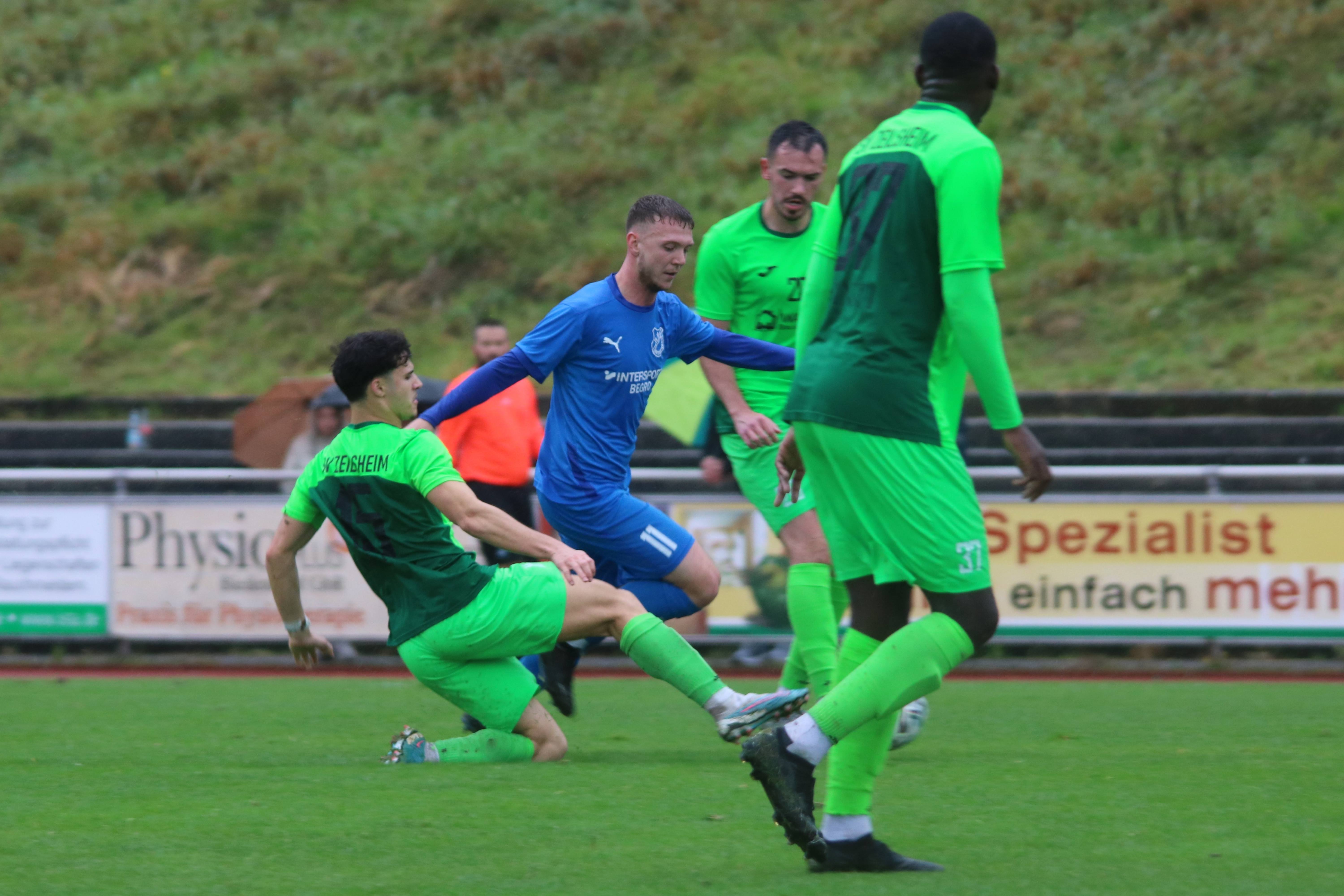 (03.10.2023/FS) Es ist wie verhext! Breidenbachs Verbandsligakicker liefern intensive und aufwendige 90 Minuten ab und hätten sich eigentlich den 1 Punkt auch verdient gehabt, aber am Ende bleibt nach dem 1:2 eine Niederlage stehen, die genauso wie die vorherigen Punktverluste überaus unnötig war. Das der SV Zeilsheim punktuell mit einigen Akteuren sicherlich stärker besetzt war und dies im Spiel nach vorne auch zu sehen war, muss man schon auch anerkennen. Aber unser Team hat auch heute das Spiel angenommen und über 90 Minuten gut dagegen gehalten. Den Gästen spielte der frühe Elfmeterpfiff von Schiedsrichter Colin Diehl in die Karten, der zweifelsfrei zu recht nach einer ungeschickten Abwehraktion von Aaron Künkel auf der linken Breidenbacher Abwehrseite passierte. SV-Spielmacher und Kapitän Gürsoy war im Dribbling in den Strafraum eingedrungen und nutzte mit all seiner Cleverness den Körperkontakt, um zu Boden zu gehen. Leonardo Bianco war dann zur Stelle und verwandelte sicher zum 0:1 (2.). Breidenbach zeigte sich unbeeindruckt und forcierte das eigene Spiel in Folgeminuten in Richtung Gästestrafraum. Das dies in der aktuellen Phase im FV-Spiel nicht immer so leichtfüßig von statten geht, war auch heute zu sehen. Trotzdem war es dann Felix Baum in der 15. Minute, der den Flankenball von der rechten Angriffsseite per Kopf in die Torecke setzte. SV-Keeper Paul Siegers war jedoch zur Stelle und hielt sein Team im Spiel. Zeilsheim agierte spielerisch gekonnt, jedoch in vorderster Front auch nicht stärker wie unser Team, was wiederum auch der guten Defensivleistung unsere Elf geschuldet war. Das, was dann noch auf das Tor des FV 09 kommen sollte, war für FV-Keeper Tobias Ochs sichere Beute. Breidenbach setzte dann mit zunehmender Spieldauer auch offensiv einige gute Aktionen. So auch in Minute 30, als Luca Vogel von Felix Baum mit einem Klassepass in die Schnittstelle der Zeilsheimer Abwehr geschickt wurde. Vogels 18 m-Schuss strich haarscharf am linken Torpfosten vorbei und so blieb es beim 0:1. Wenig später war es Aaron Künkel, der sich auf der halbrechten Seite durchsetzte und Felix Baum mit einem guten Flachpass in Abschlussposition brachte. Dessen Torabschluss ging ebenfalls nur knapp am langen Pfosten des Zeilsheimer Tors vorbei. Noch vor der Pause hatte Luca Vogel mit seinem 2. Versuch Pech, als sein Kopfball nur knapp am Tor vorbei strich.