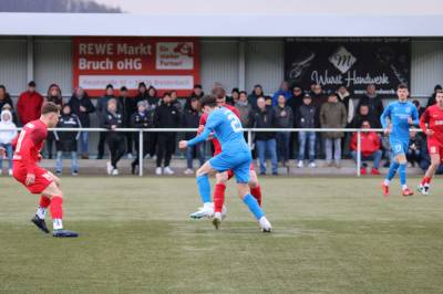 In einem gutklassigen Verbandsligaspiel siegte der TSV Steinbach II am Samstagnachmittag bei wechselhaftem und kaltem Frühlingswetter im Breidenbacher Gunterstal gegen eine tapfer kämpfende FV-Elf mit 2:0, die letztendlich die spielerische und auch abgezocktere Spielweise der Tabellenersten anerkennen musste. Trotz der am Ende zwar vermeidbaren, aber insgesamt verdienten Niederlage zeigte die Breidenbacher Elf eine gute Leistung gegen einen Gegner, der ebenso wie die Gastgeber mit einigen personellen Ausfällen leben musste. Das beim TSV trotzdem aus einem reichlich gefüllten Spielerkader dann immer noch eine Topmannschaft auf dem Feld steht, spiegelte sich von Beginn an im Spielverlauf wieder. Der TSV bestimmte die Partie und sah sich von Beginn an einer Breidenbacher Mannschaft gegenüber, die hochkonzentriert ihre Aufgaben auf dem Feld erfüllte und in der Defensivarbeit sehr gut funktionierte. Der Ausfall von Moritz Filipzik konnte Breidenbachs Trainerteam mit Johannes Burk und Felix Baum mit der Personalie Jannik Lehnert in der Innenverteidigung an der Seite von FV-Kapitän Marius Kamm besetzen, der seine klasse Form der letzten Wochen auch gegen Steinbachs Toptorjäger Sebastian Schneider auf dem Feld zeigen konnte. Schneider kam so gut wie nicht zum Zug und wurde nach 70 Minuten in Halbzeit 2 von seinem Trainer Hüsni Tahiri vom Feld geholt. Das sollte aber nichts am Spiel der Gäste ändern, die vornehmlich in der 2. Halbzeit mit druckvollem Spiel ihre pfeilschnellen Offensivleute wiederholt in Szene setzen konnten. Zunächst war es Steinbach, das mit den Torabschlüssen vom Ex-Breidenbacher Noriega (2.) sowie mit dem Abschluss von Busik (17.) am FV-Keeper Tobias Ochs scheiterten. Ochs war es dann auch in der 33. Minute, der zunächst einen Ball aus halbrechter Position kurz abprallen ließ und dann im 2. Zupacken mutig und mit einer Klasseaktion gegen Sebastian Schneider rettete. Auf FV-Seite war zu diesem Zeitpunkt lediglich ein 30 m-Freistoß von Luca Vogel zu verzeichnen, der von TSV-Keeper Chris Schubert jedoch sicher entschärft wurde. Steinbachs Kim Bellinghausen war derjenige, der in Minute 50 mit dem 1:0 für sein Team den Spitzenreiter auf die Siegerstraße brachte. Es war die berühmte Zehntelsekunde, die er gedankenschneller wie sein Gegenspieler Nils Cakar am Ball war und selbigen aus kurzer Distanz ins FV-Netz beförderte. Breidenbach versuchte in der Folgezeit, seine Offensivkräfte Aaron Künkel und Felix Baum besser ins Spiel zu bringen, scheiterte jedoch immer wieder an der robusten und spielstarken Gästeabwehr. Unser FV-Team schaffte es auch in der Folgezeit trotz eines sehr ordentlichen Auftritts letztendlich nicht, wirklich klare und hochkarätige Torchancen herauszuspielen. Sebastian Wankes 20 m-Schuss (52.) war da noch die beste Gelegenheit zum Torerfolg, jedoch verfehlte sein Schuss das Steinbacher Gehäuse. Als dann wiederum Kim Bellinghausen in der 88. Minute nach einem weiteren schnellen Konter der Gäste den Flachpass von der rechten Außenseite per Direktabnahme ins FV-Netz beförderte, war die Messe gelesen und Steinbach konnte einen weiteren Auswärtssieg verbuchen. Für unser Team bleibt trotz der Niederlage am Ende eine ordentlich Leistung stehen, die es gilt zu bestätigen, wenn das Team am nächsten Spieltag am 07.04.24 um 15:30 Uhr bei der 2. Mannschaft des SC Waldgirmes antritt. Da sollte mit einer gleichlautenden Leistung eine gute Chance bestehen, weiter Punkte zu holen, um den weitere Punkte für den Klassenerhalt zu sichern.