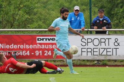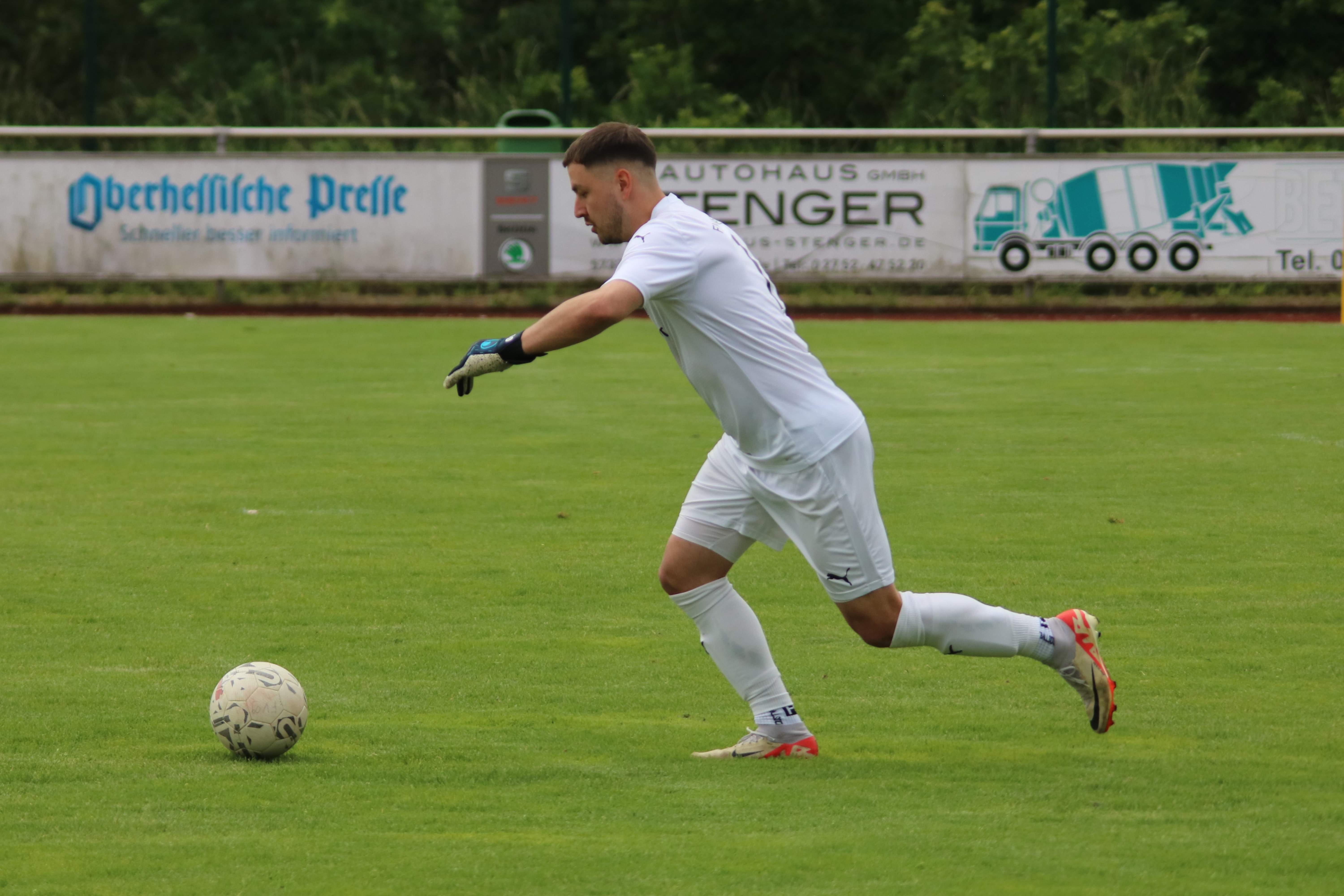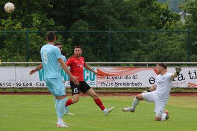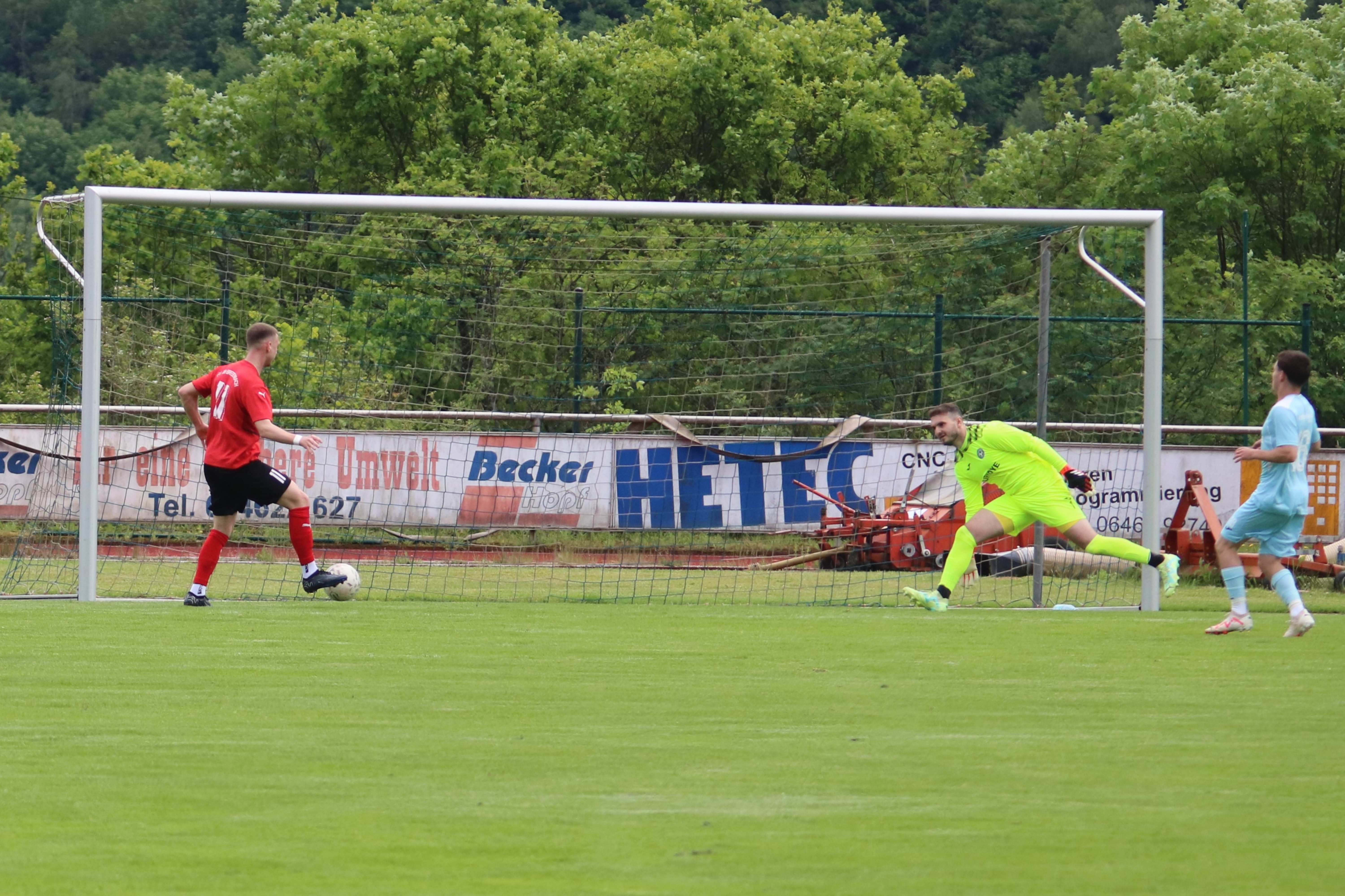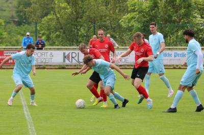(FS/30.05.2024) Der FV 09 Breidenbach hatte zum Saisonabschluss bei gutem Fußballwetter und herrlichen Rasenplatz nochmals ein Spektakel anvisiert. Von Beginn an merkte man beiden Teams auf dem Feld an, dass der Druck des Siegens müssen nicht mehr da war und so entwickelte sich eine offene Partie, die bei den Gästen ihre zweifelsfrei guten technischen Fähigkeiten zu Tage brachte, bei unserem Team jedoch auch schnell zeigte, dass aus dem fußballerischen Können am letzten Spieltag ein Sieg her sollte. Da die Gästeakteure im Defensivverhalten nicht alle an die notwendigen Grenzen gingen, ergaben sich immer wieder Kontersituationen, die unsere Elf dankend annahm. Es dauert bis zur 17. Spielminute, als Luca Vogel mit großen Schritten über die rechte Angriffsseite davonzog und per Flachpass Aaron Künkel in seinem letzten Spiel für den FV 09 bediente. Der nahm dankend an und staubte zum 1:0 ab. Pohlheim spielte mit viel Offensivwillen weiter munter nach vorne und erspielte sich eine Reihe von besten Chancen, die jedoch allesamt nicht verwertet wurden. Tobi Ochs rettete einige Male und auch das Glück des Tüchtigen sollte sich am letzten Spieltag wieder auf FV-Seite zurückmelden. Als in der 31. Minute Breidenbach wieder im schnellen Umschaltspiel seine Verbandsligaqualitäten zeigte und Felix Baum mit Basti Wanke dabei im Direktspiel glänzte, war es Letzterer, der zur 2:0 Führung vollstreckte. Bis zur Pause konnte Breidenbach den Vorsprung mit Glück und Geschick über die Zeit retten.