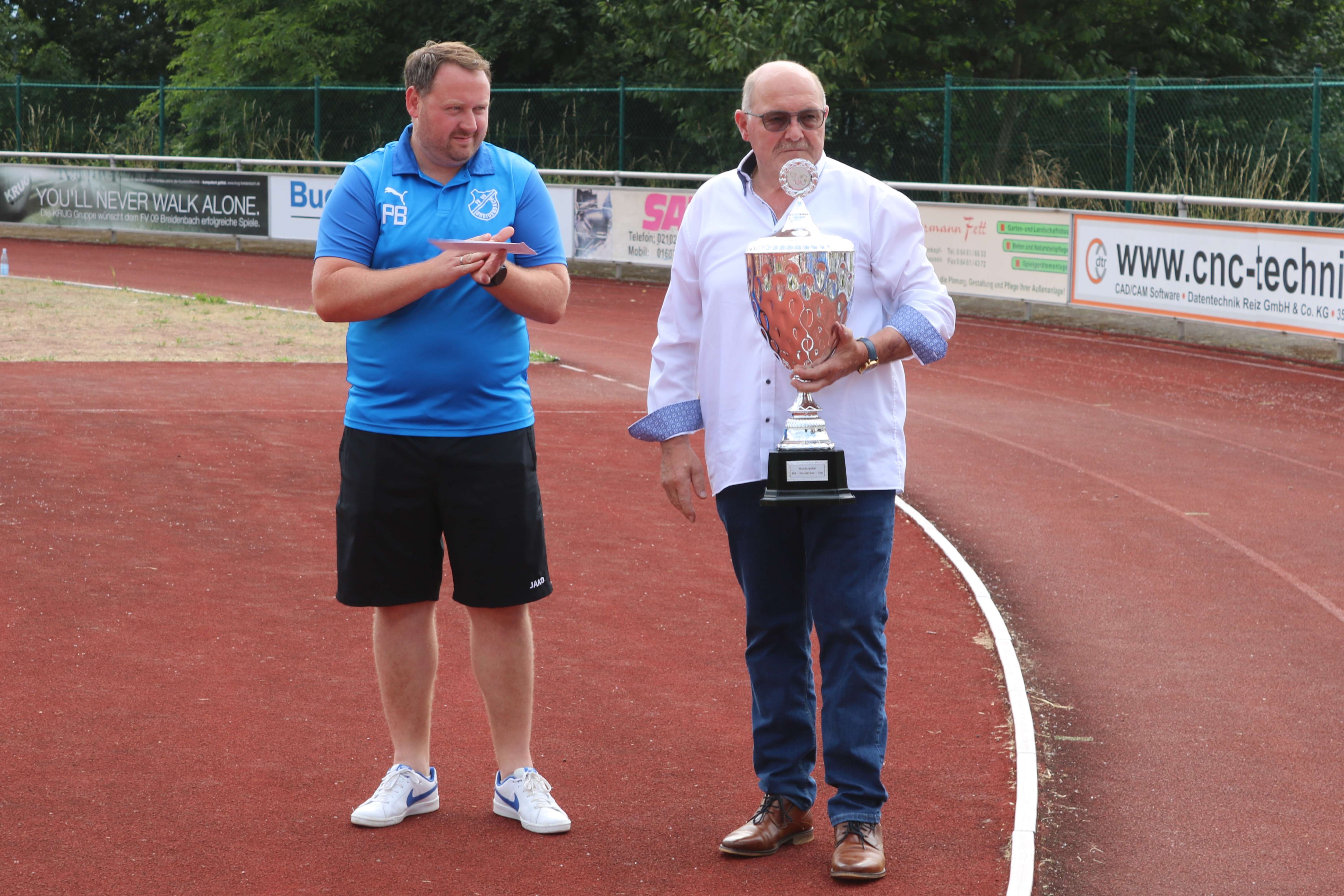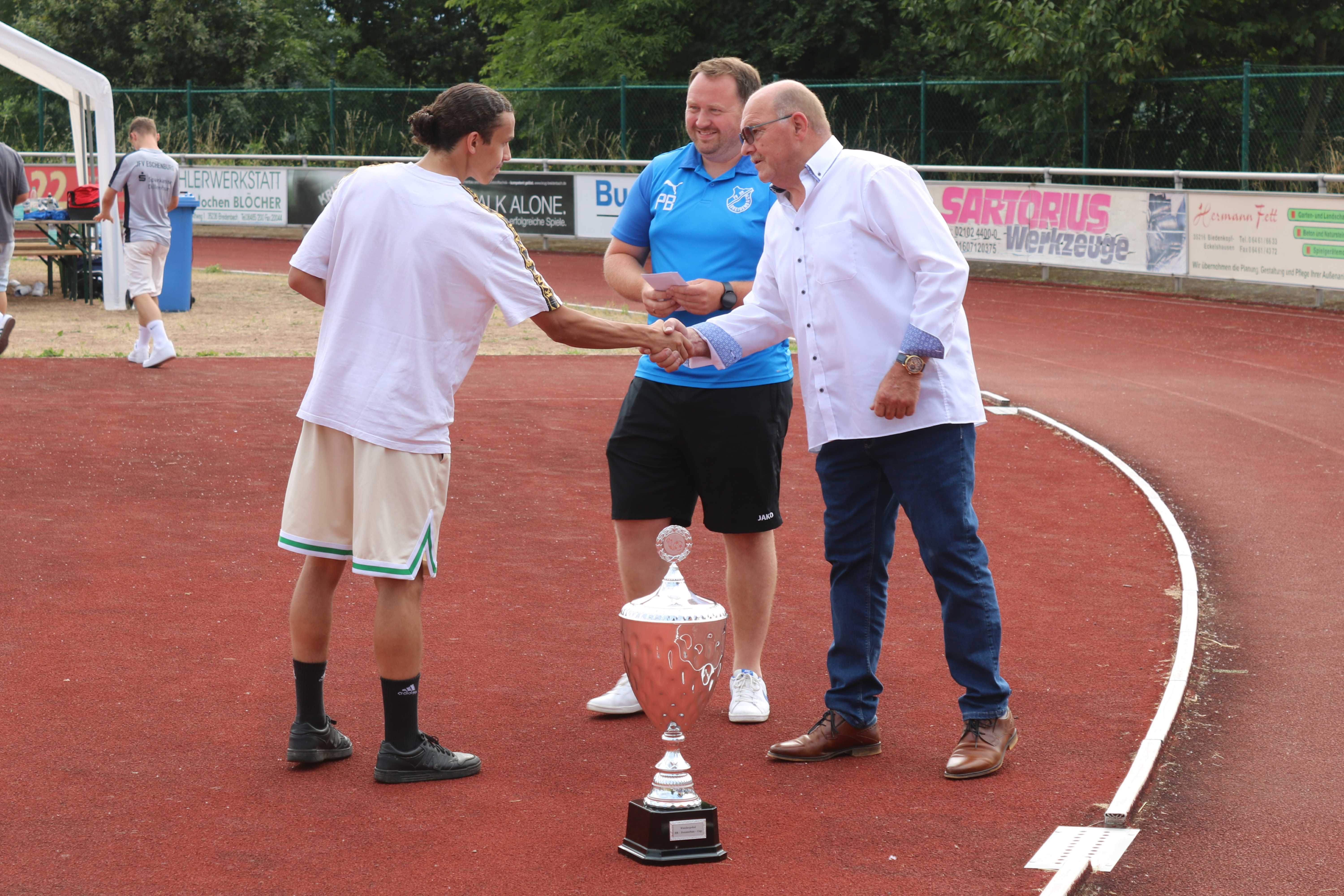 FV-Trainer Felix Baum zeigte sich zufrieden mit der Leistung und mit dem Gewinn des Pokals. Turniersponsor und Namensgeber Horst Rein überreichte zusammen mit FV-Vorstandssprecher Philipp Bösser die Preisgelder an die Vereine und den Siegerpokal an FV-Spielführer Marius Kamm. Allen Teams gilt ein großes Kompliment für die gezeigten Leistungen bei großer Hitze. Zweifelsfrei konnten auch die Trainer weitere Erkenntnisse zu ihren Teams mit nach Hause nehmen, was im Rahmen der aktuellen Saisonvorbereitung auch im Vordergrund zu den Turnierspielen stand.