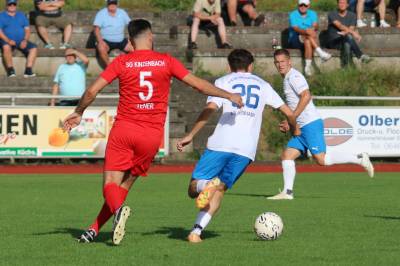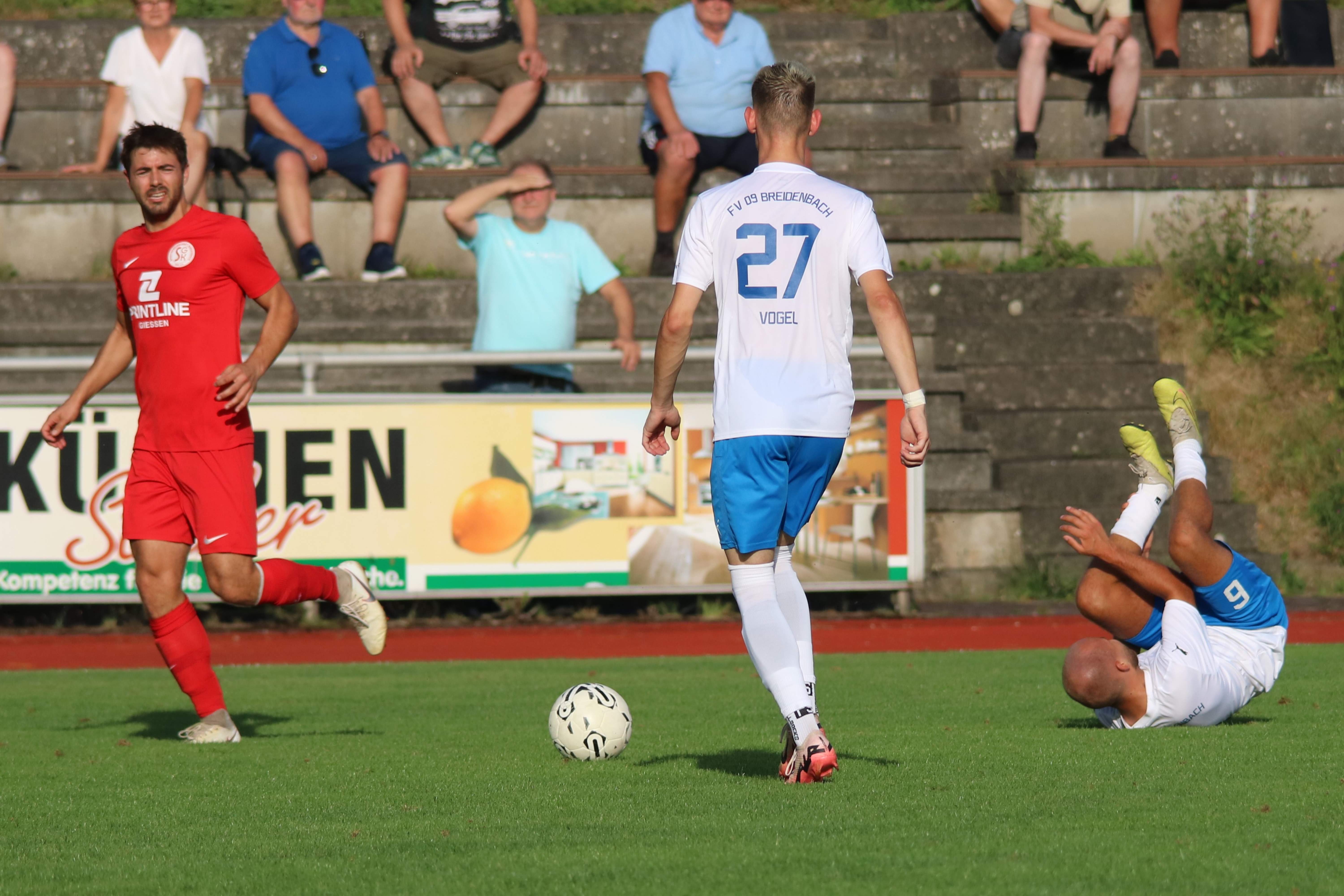 (FS/07.09.2024) War das der Knotenlöser zur Saison 2024/2025? Die Frage stellten sich ein Großteil der Breidenbacher Zuschauer im heimischen Gunterstal zu einem Verbandsligaspiel, das auch auf Grund der hohen Temperaturen für alle Aktiven äußerst kräftezehrend war. Das am Ende unser FV 09 mit einem ersten Saisonsieg den erhofften Befreiungsschlag hat setzen können, bleibt zunächst mal die Hoffnung, wenn der Blick nach vorne geht. In den vorausgegangenen 90 Minuten merkte man unserer Elf die Verunsicherung förmlich an. Viele Ungenauigkeiten im Passspiel und immer einen Schritt zu spät, wenn es um die direkten Zweikämpfe ging. Zudem präsentierte sich die SG Kinzenbach von Beginn an als die präsentere und ballsichere Mannschaft, die im Spiel nach vorne mit 2 - 3 guten Abschlüssen ihre optischen Vorteile auch in Torchancen bestätigte. Das es nach 5 Minuten mit dem ersten gefährlichen Torabschluss der Gäste schon 0:1 stand, war für unsere merklich verunsicherte Elf in der Anfangsphase natürlich mehr als bitter. Was war passiert: Die Gäste nutzen die wieder mal zu großen Abstände in der FV-Abwehr, kombinierten sich im Strafraum in eine perfekte Abschlussposition und markierten dann durch Jarek Herborn die Führung. Breidenbach hatte zu diesem Zeitpukt nur einen Weitschuß durch Felix Baum zu verzeichnen. Das sollte sich auch über weite Strecken von Halbzeit 1 nicht ändern. Die Gäste hatten alles im Griff und profitierten dabei von den vielen Ungenauigkeiten im Breidenbacher Aufbauspiel. Umso überraschender fiel dann der Ausgleich für unseren FV 09. In Minute 25 war es Luca Vogel, der sich ein Herz nahm und das Leder aus 25 Metern mit einem klasse Schuß im Netz der Gäste versenkte. Jetzt hatte Breidenbach mit mehr Mut und Selbstvertrauen plötzlich beide Beine im Spiel und gestaltete die Partie weitestgehend offen. Und auch das Spielglück schien zum FV 09 zurück zu kehren, was sich bei weiteren Gästechancen so darstellte, dass das Spielgerät den Weg ins Breidenbacher Tor nicht finden sollte. David Linneborn im FV-Tor sicherte mit einigen guten Aktionen das Unentschieden und so ging es mit einem zwar schmeichelhaften, aber insgesamt doch hoffnungsvollen 1:1 aus FV-Sicht in die Halbzeitpause.